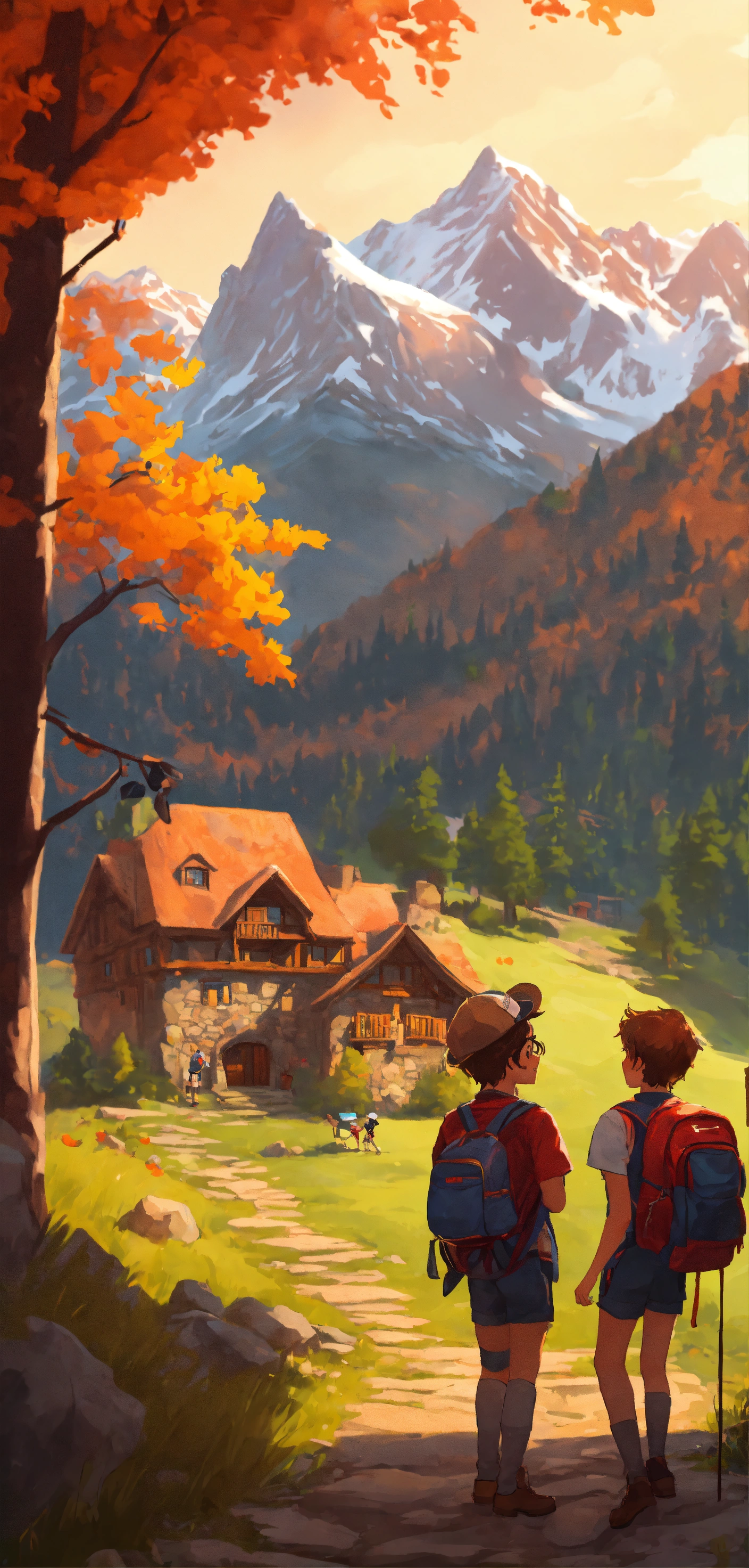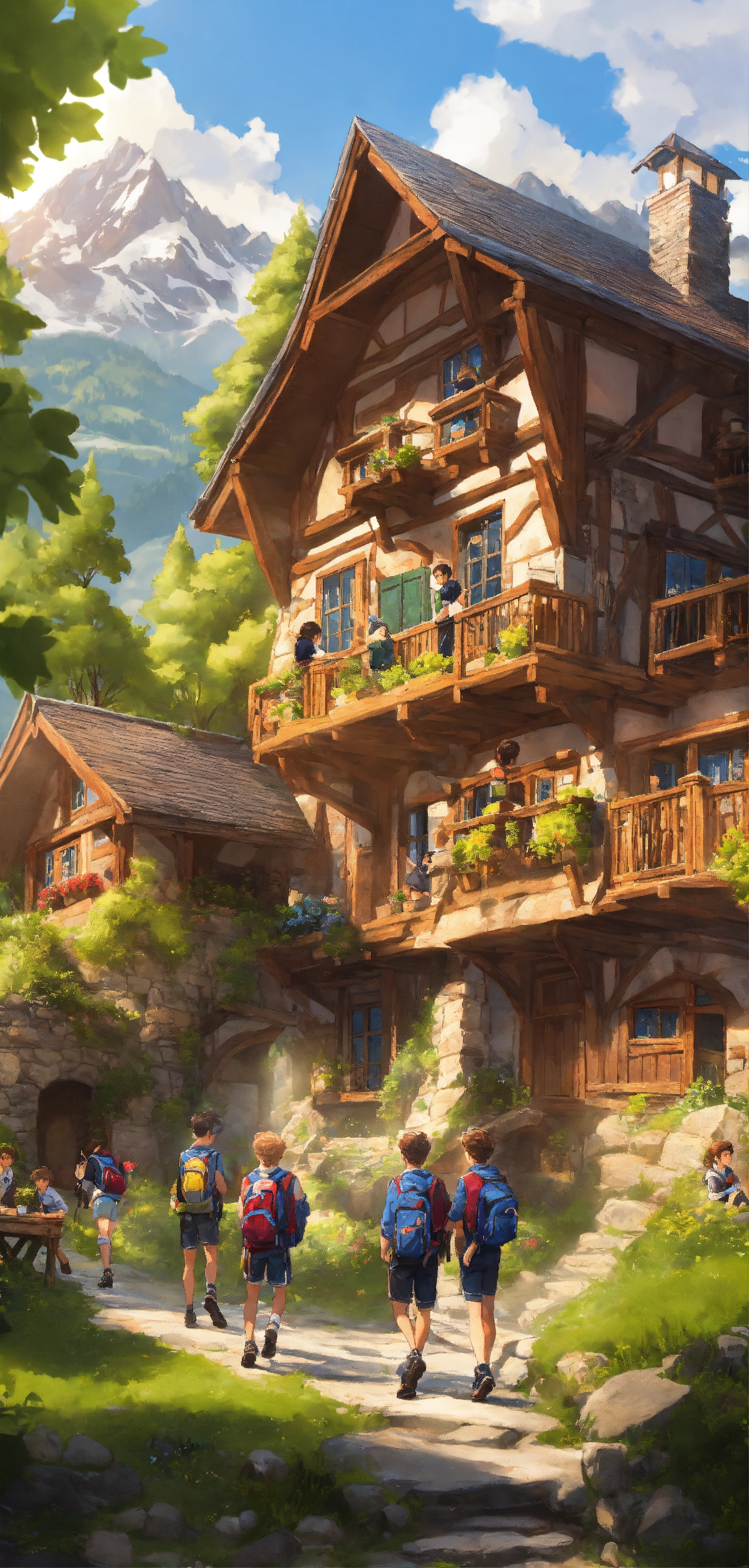 4 jeunes ils sont à l'école élémentaire ils font adventure dans un mountain village