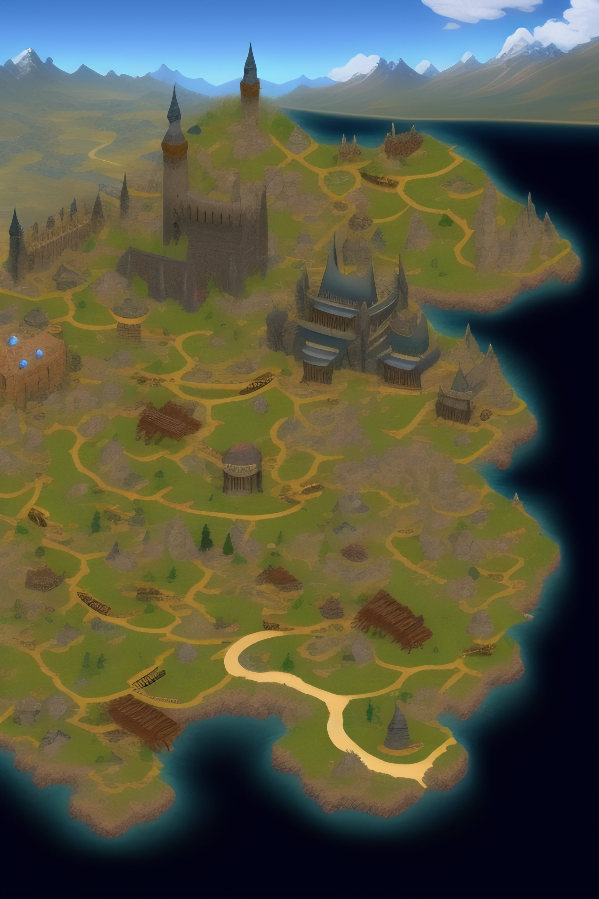 Dungeons and dragons, realm map, fantasy, city, towns, ruins, temples, fortress, medieval, tabletop game.
