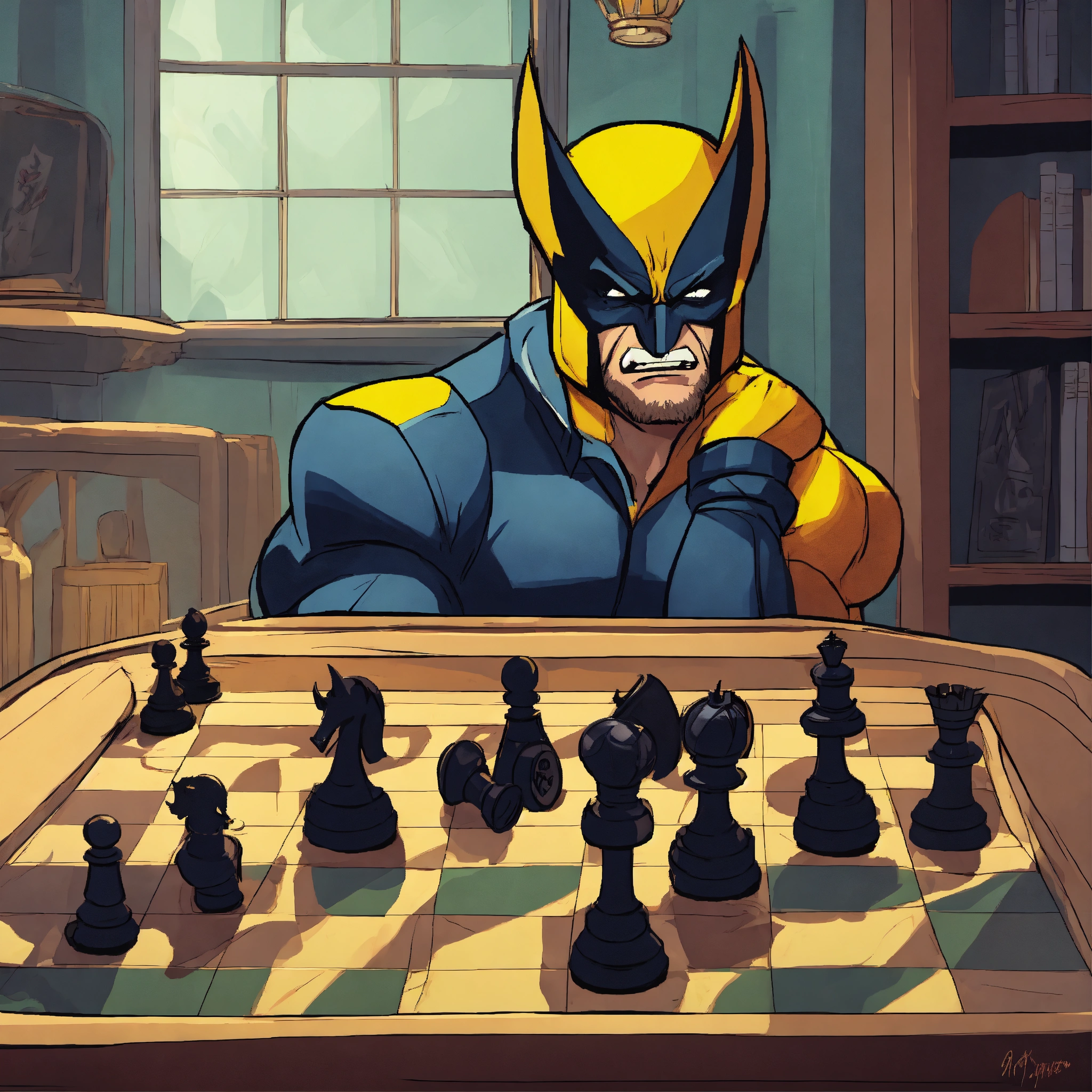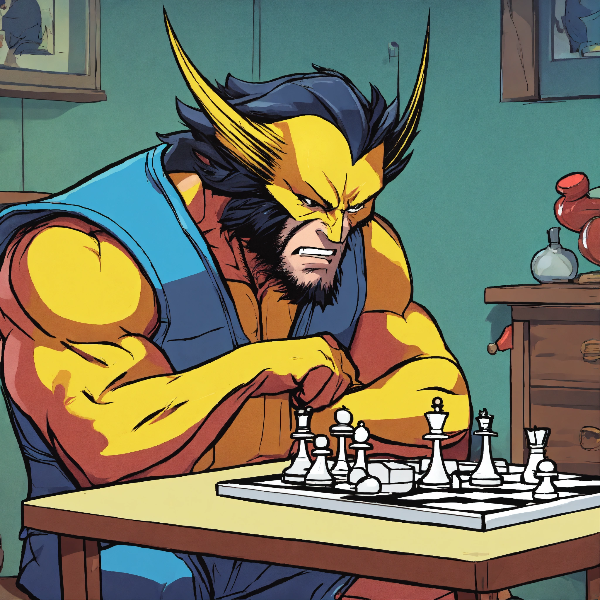 Wolverine playing chess