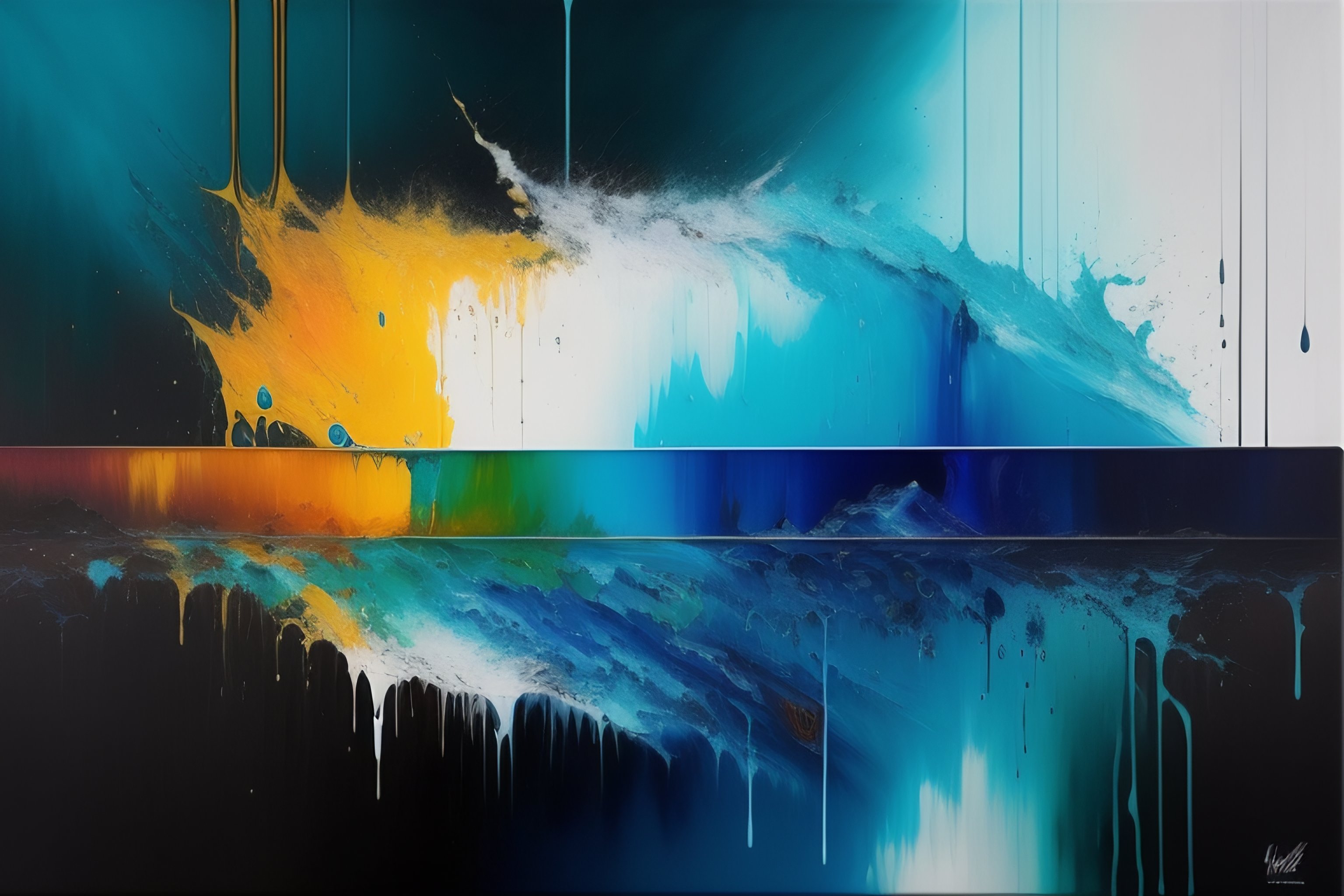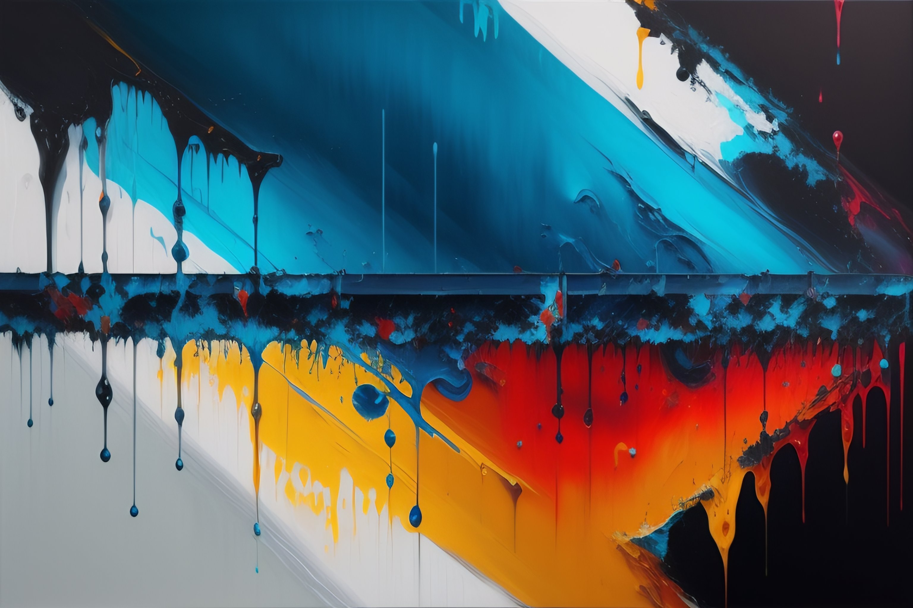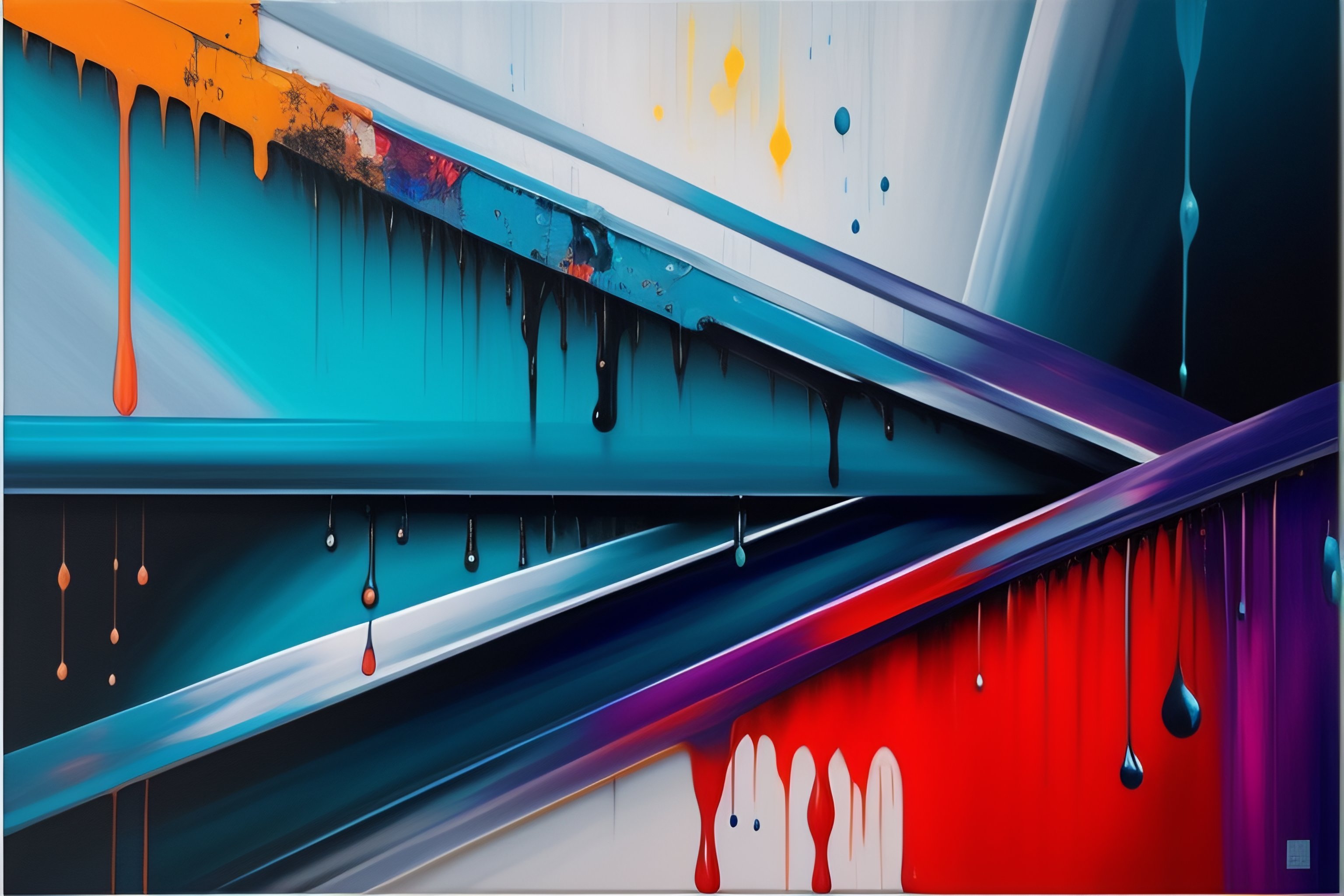 Abstract rectangles colorful with ragged edges perspective oil paint drips infinite inception diffused splatter twisted lines grey blue grey white highlights tones
