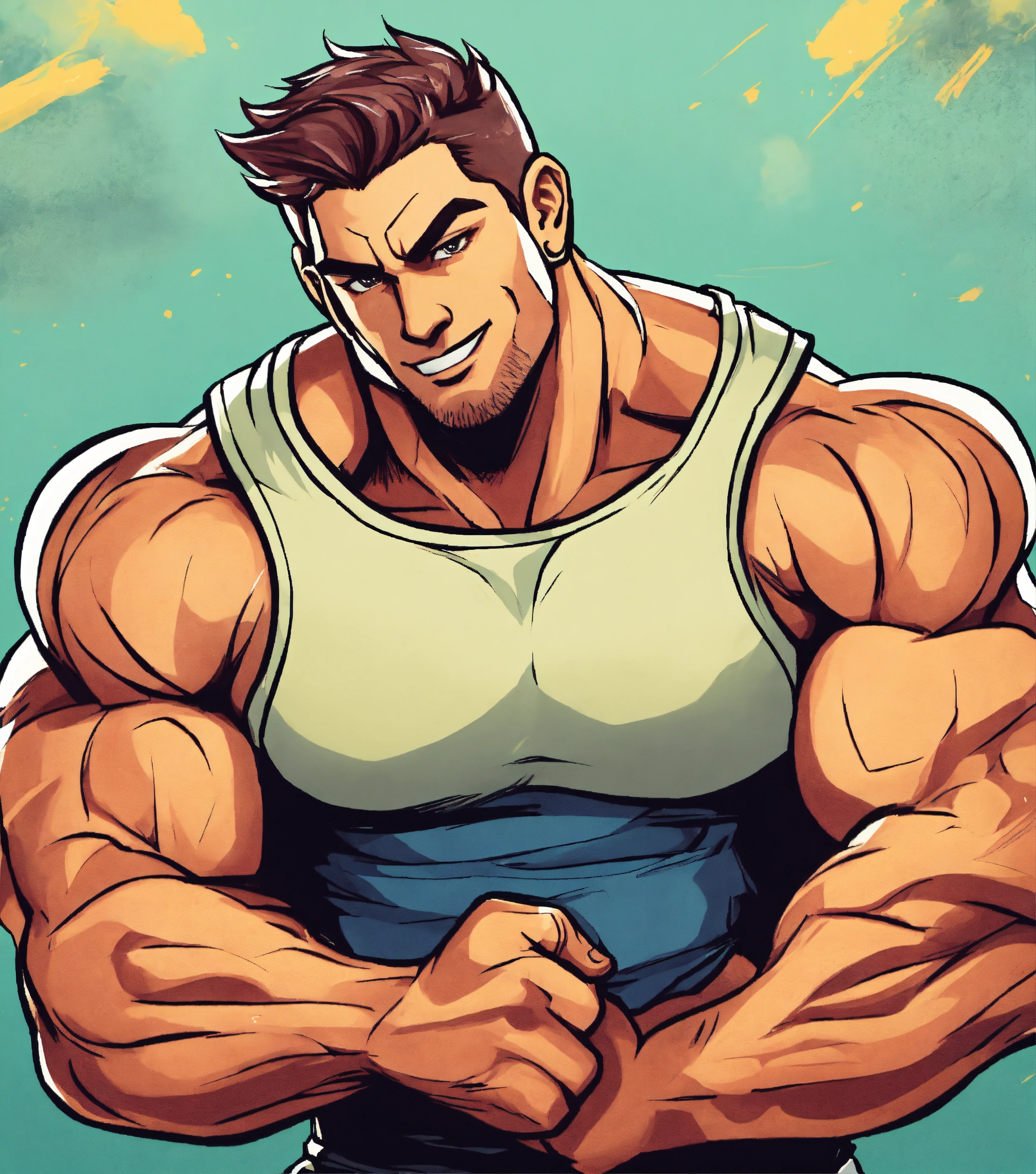 An attractive male athlete flexing