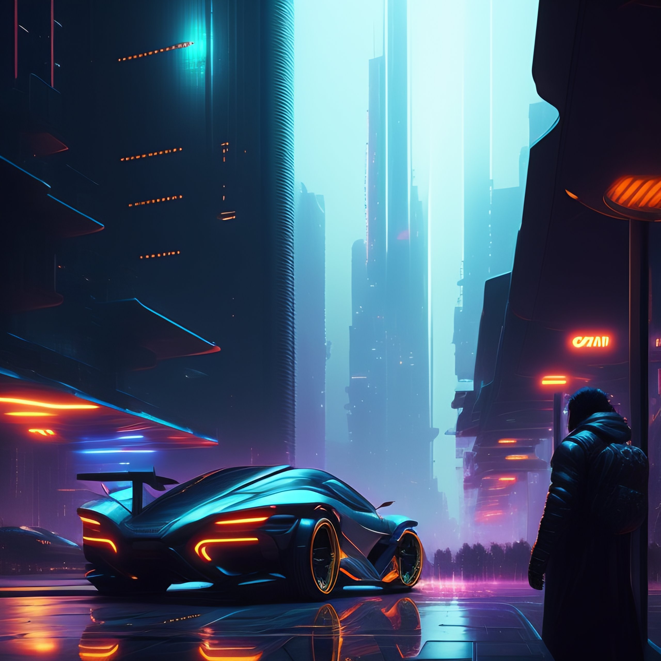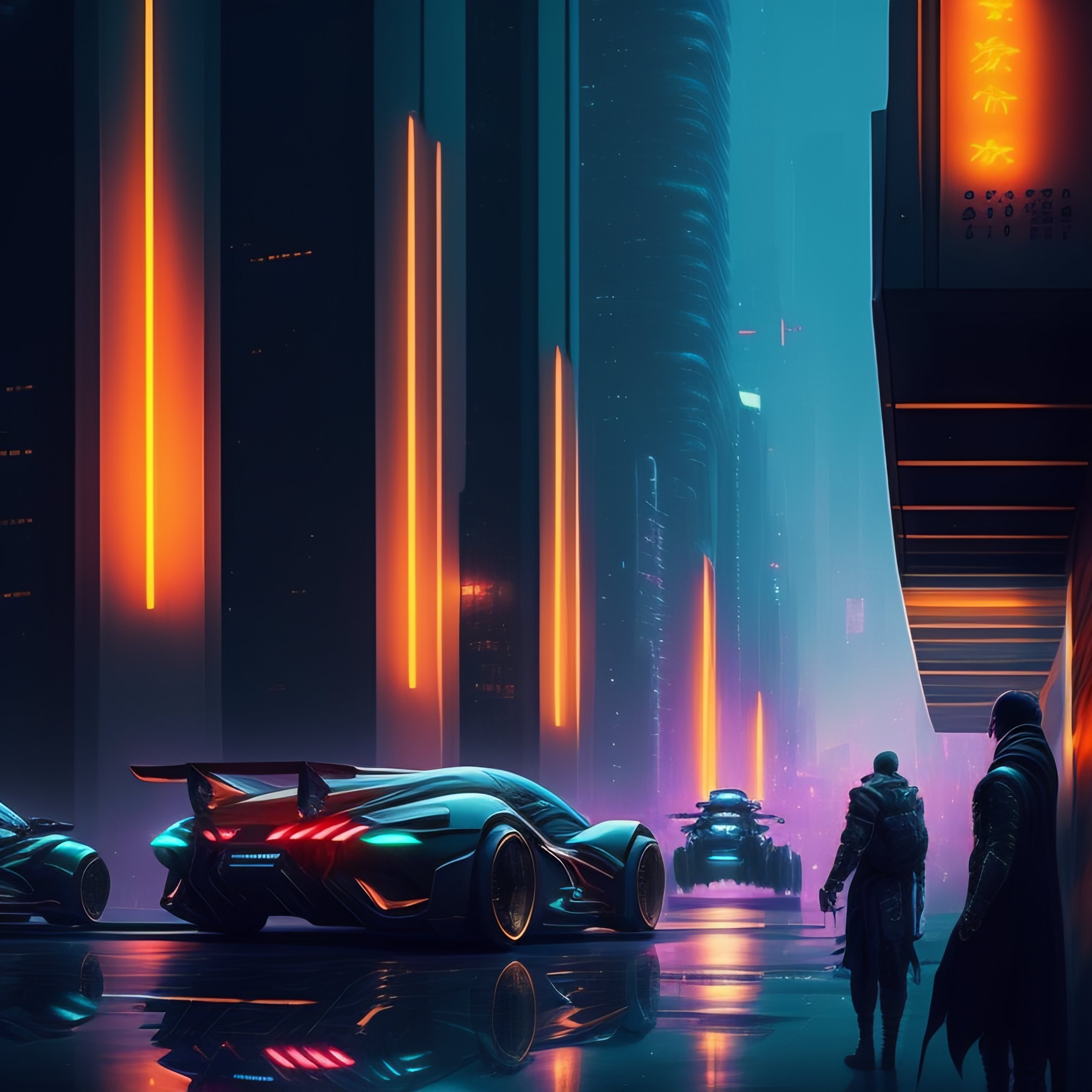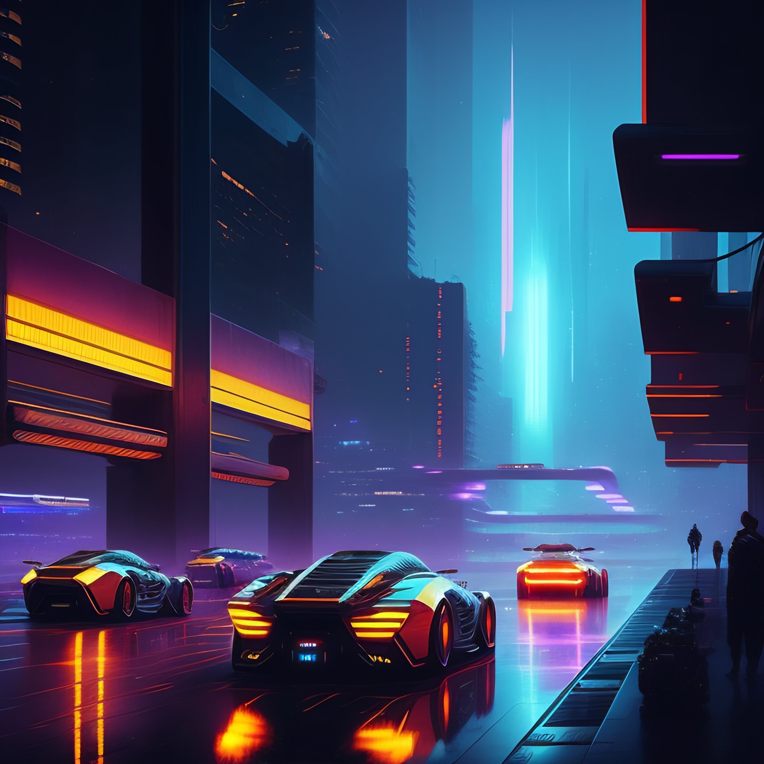 Cityscape of a cyberpunk city at night. flying cars, tron motorcycles. by yoji shinkawa. by greg rutkowski.