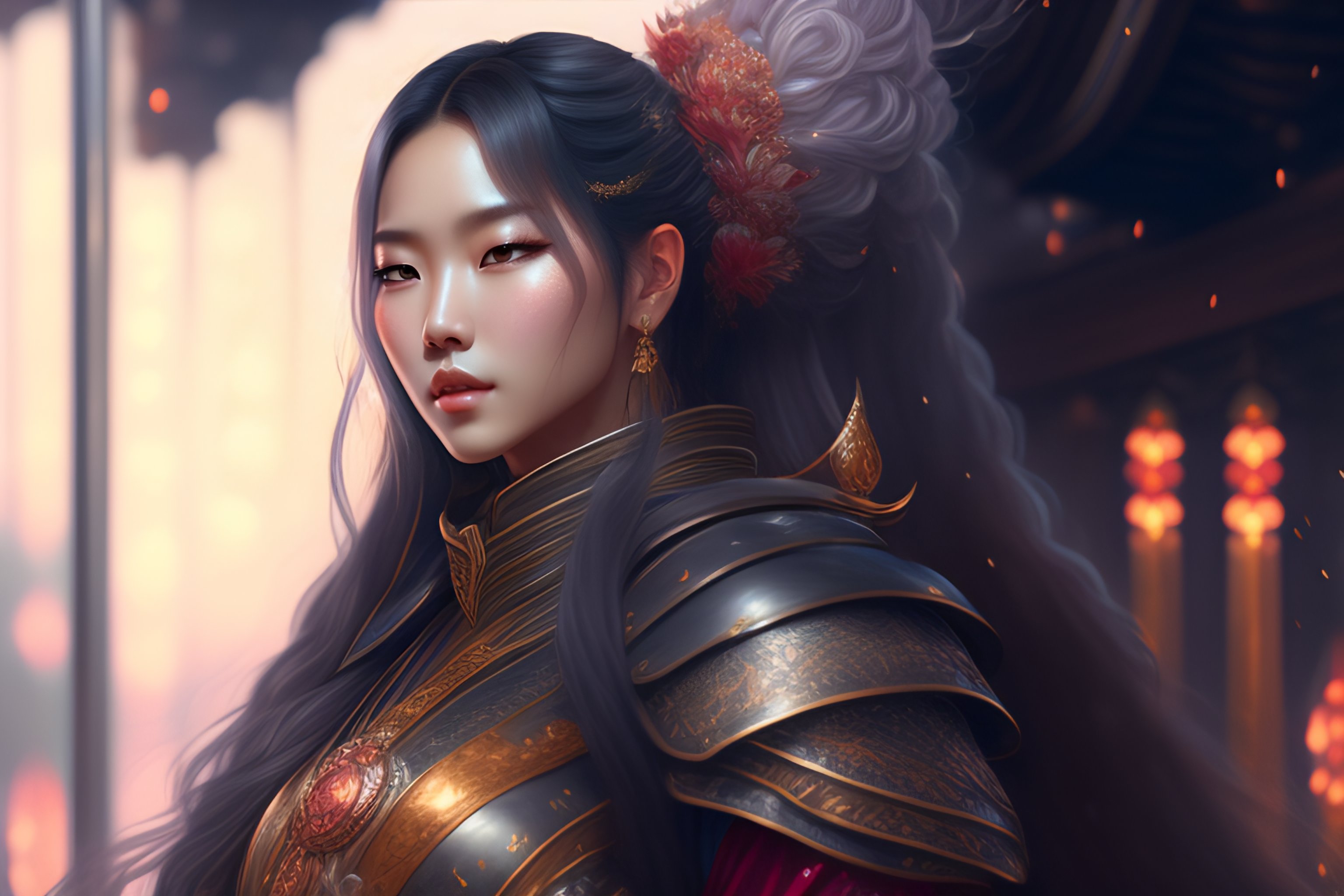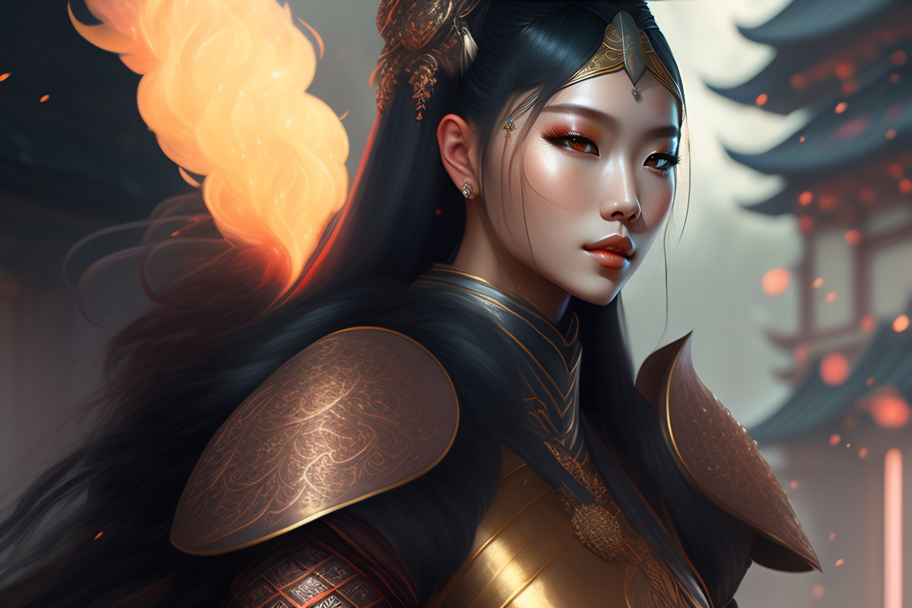 Portrait jisoo blackpink, grey hair armored samurai clothes, in fire japanese temple wet night, ssci - fi and fantasy, intricate and very very beautiful and elegant, highly detailed, digital painting, artstation, concept art, smooth and sharp focus, illustration, art by tian zi and wlop and alphonse mucha