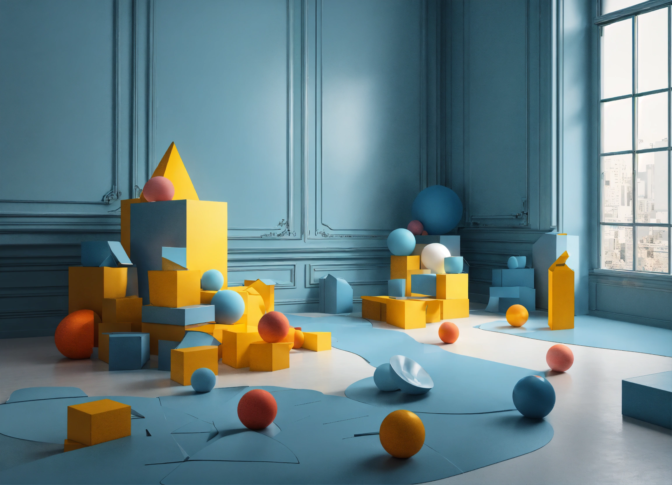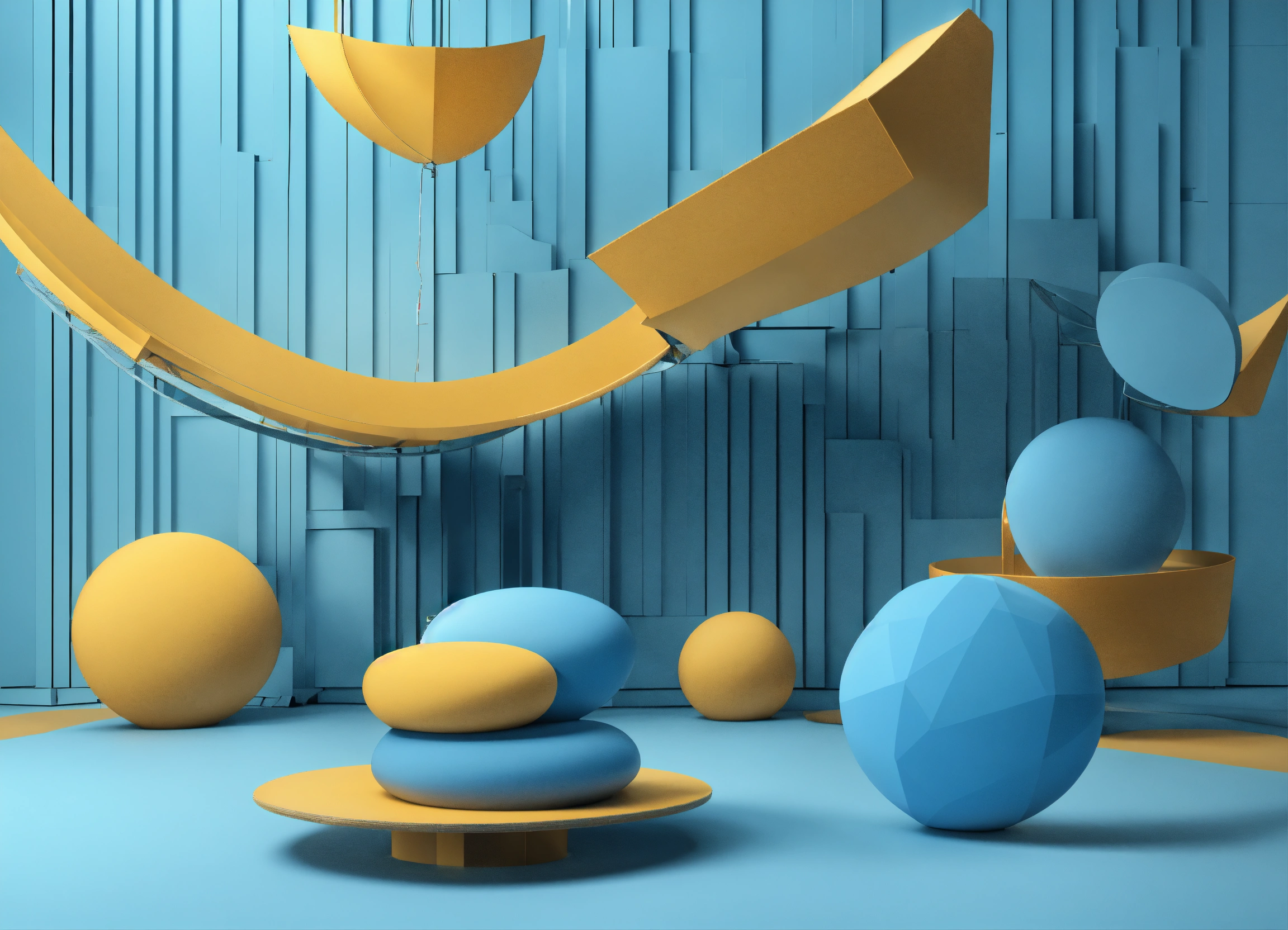A wacky creative image no one has thought of, 3d, cycles, shapes, abstract, sharp, cycles render, corporate, soft blue pallet