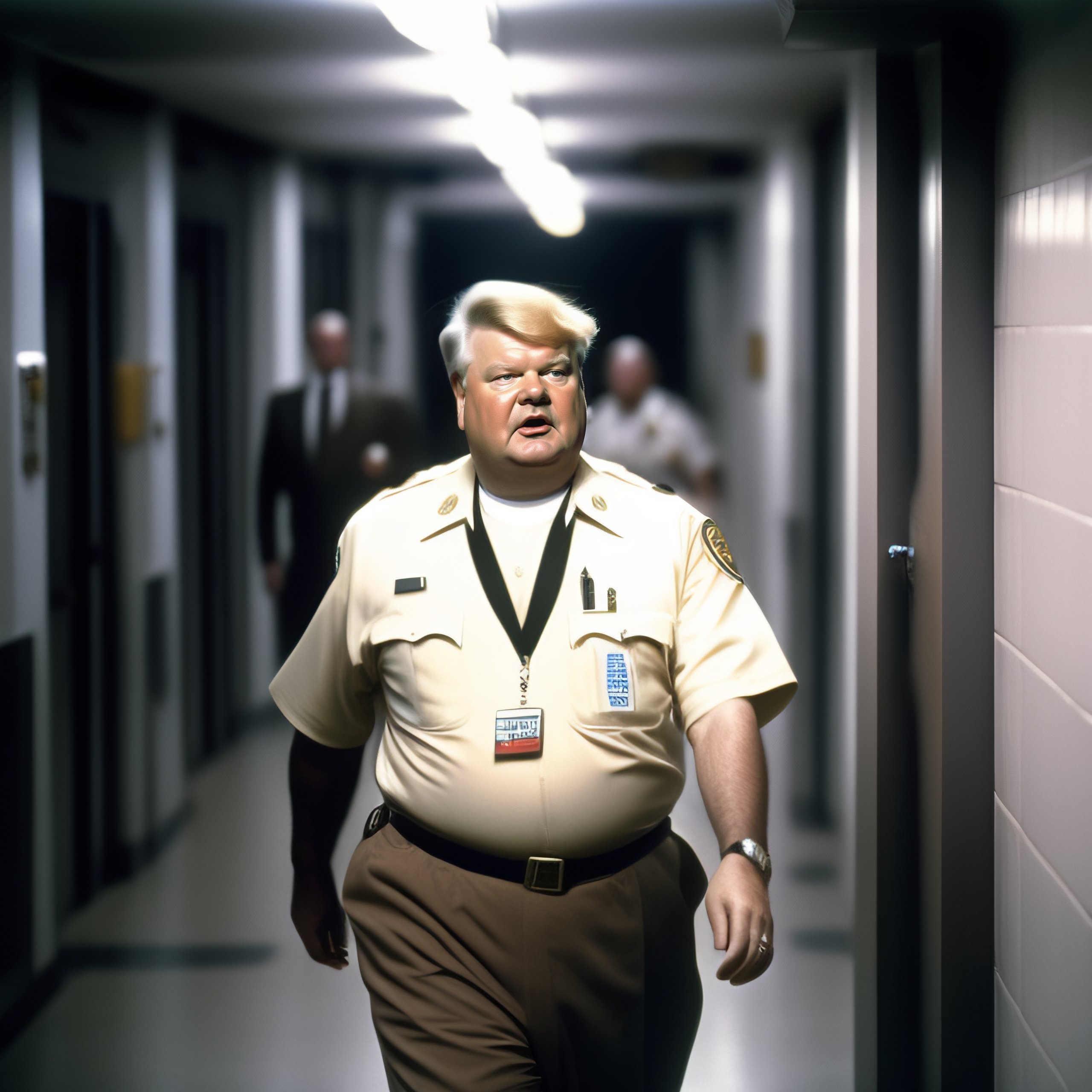 Full body shot of benny hill as an inmate prisoner in jail