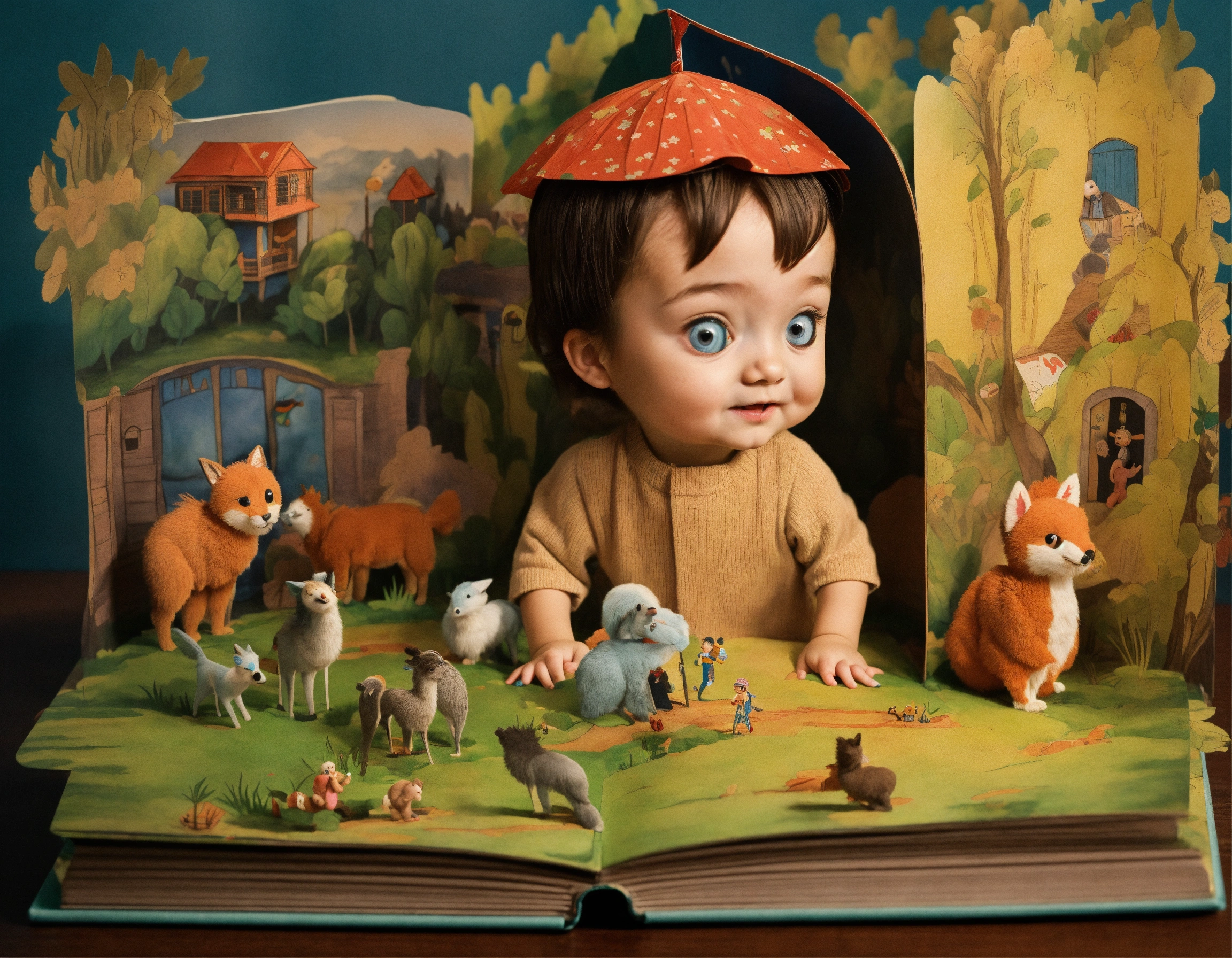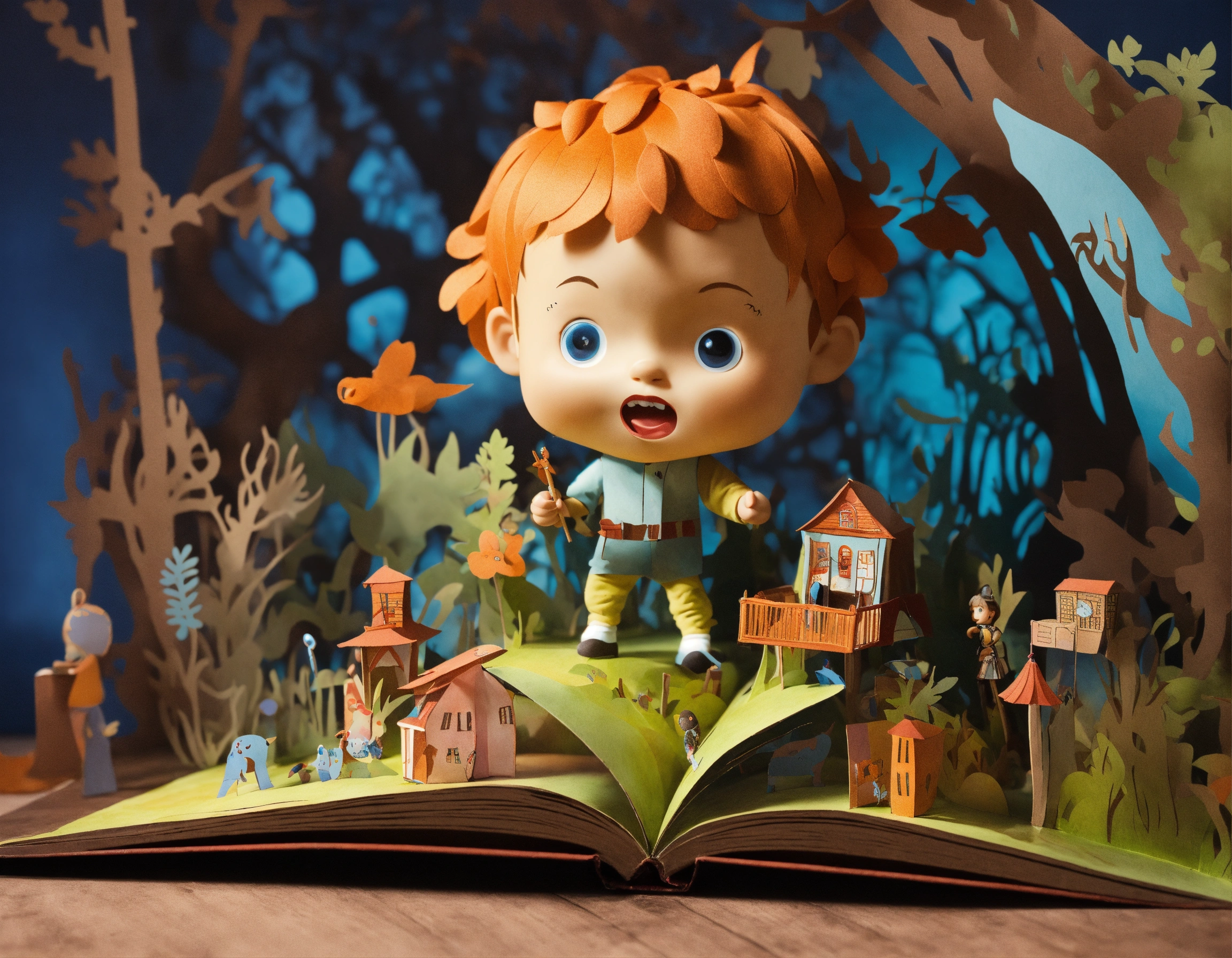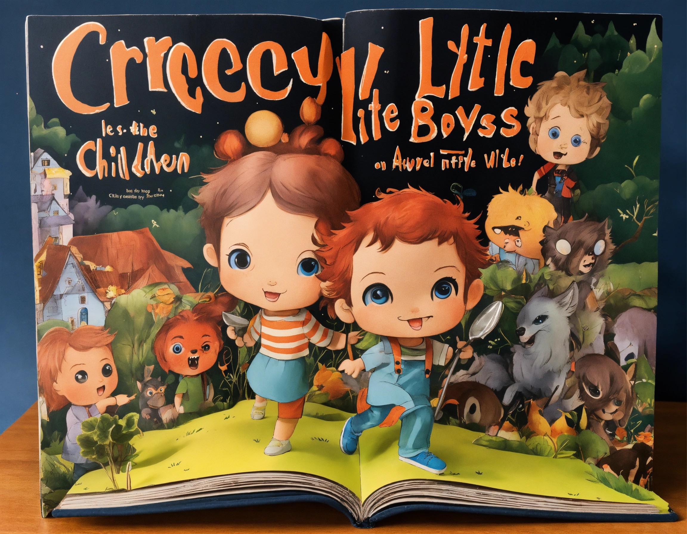 (children's pop-up book), creepy little boys, best quality, pretty women, scared attractive women, detailed