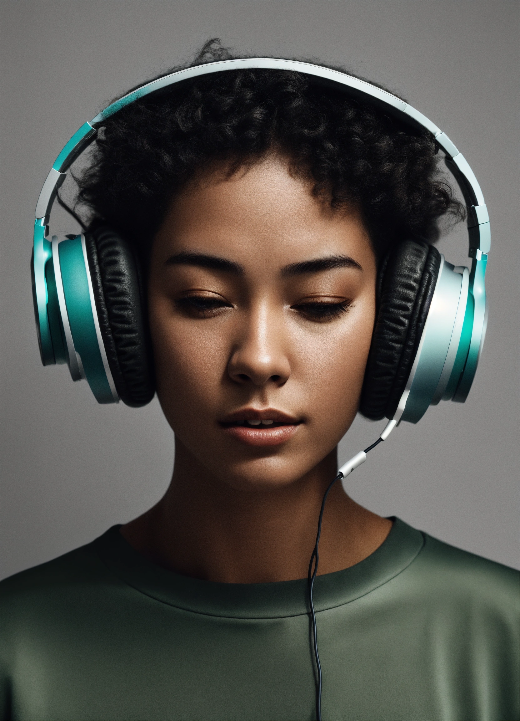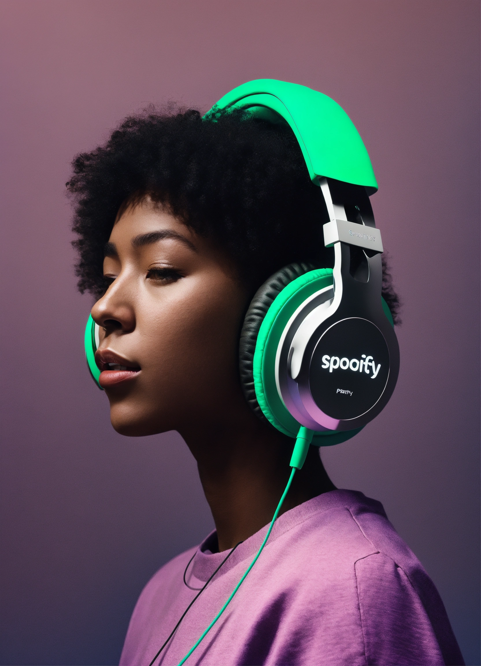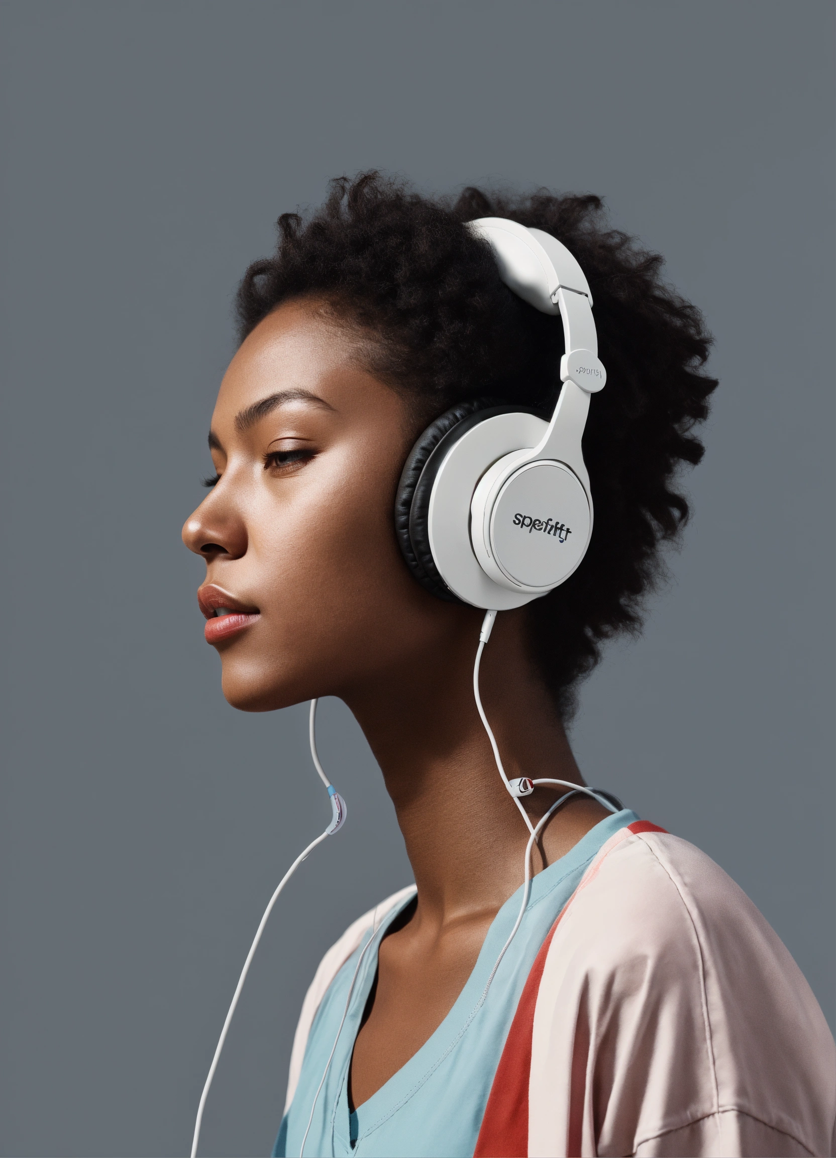 Person with headphones playlist spotify light gray gradient background