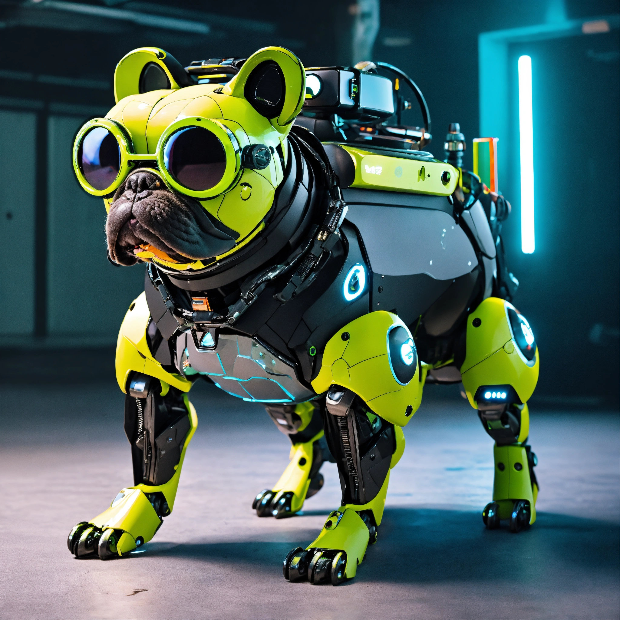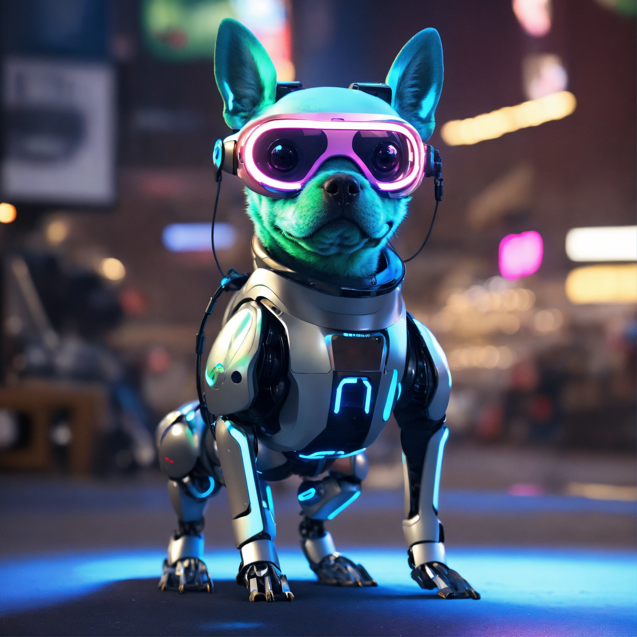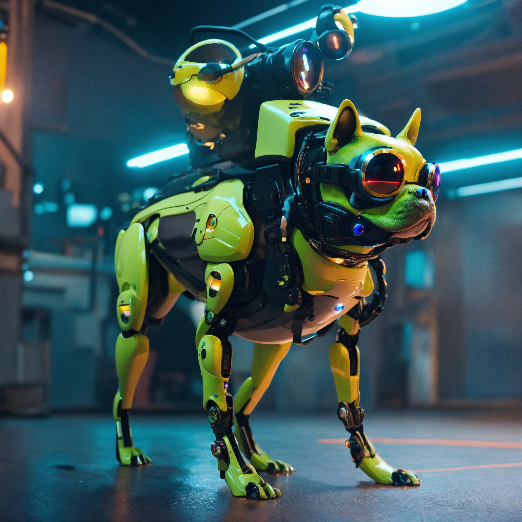 Frog dog inu immaculate full body cyberpunk style robot with virtual reality glasses