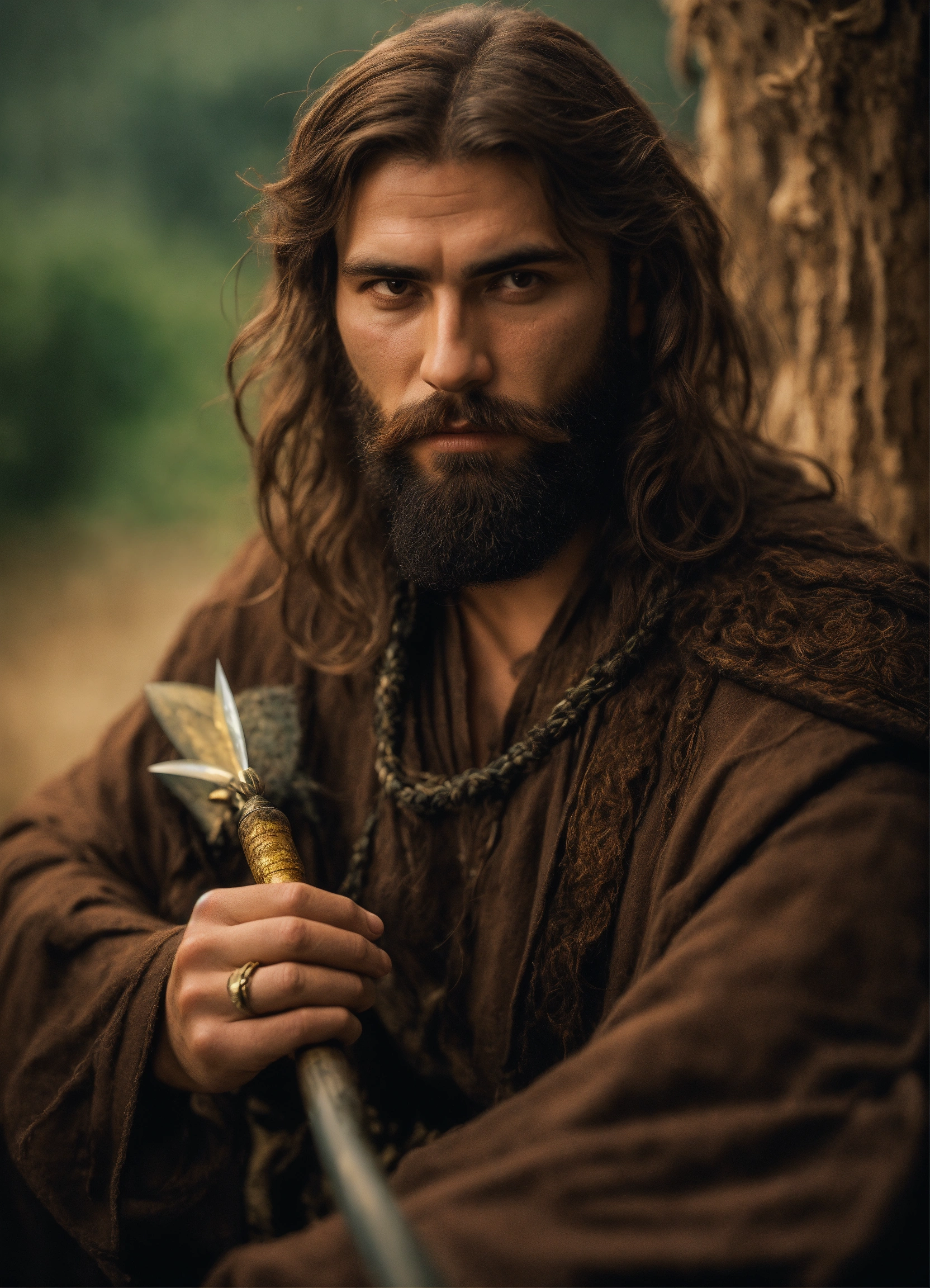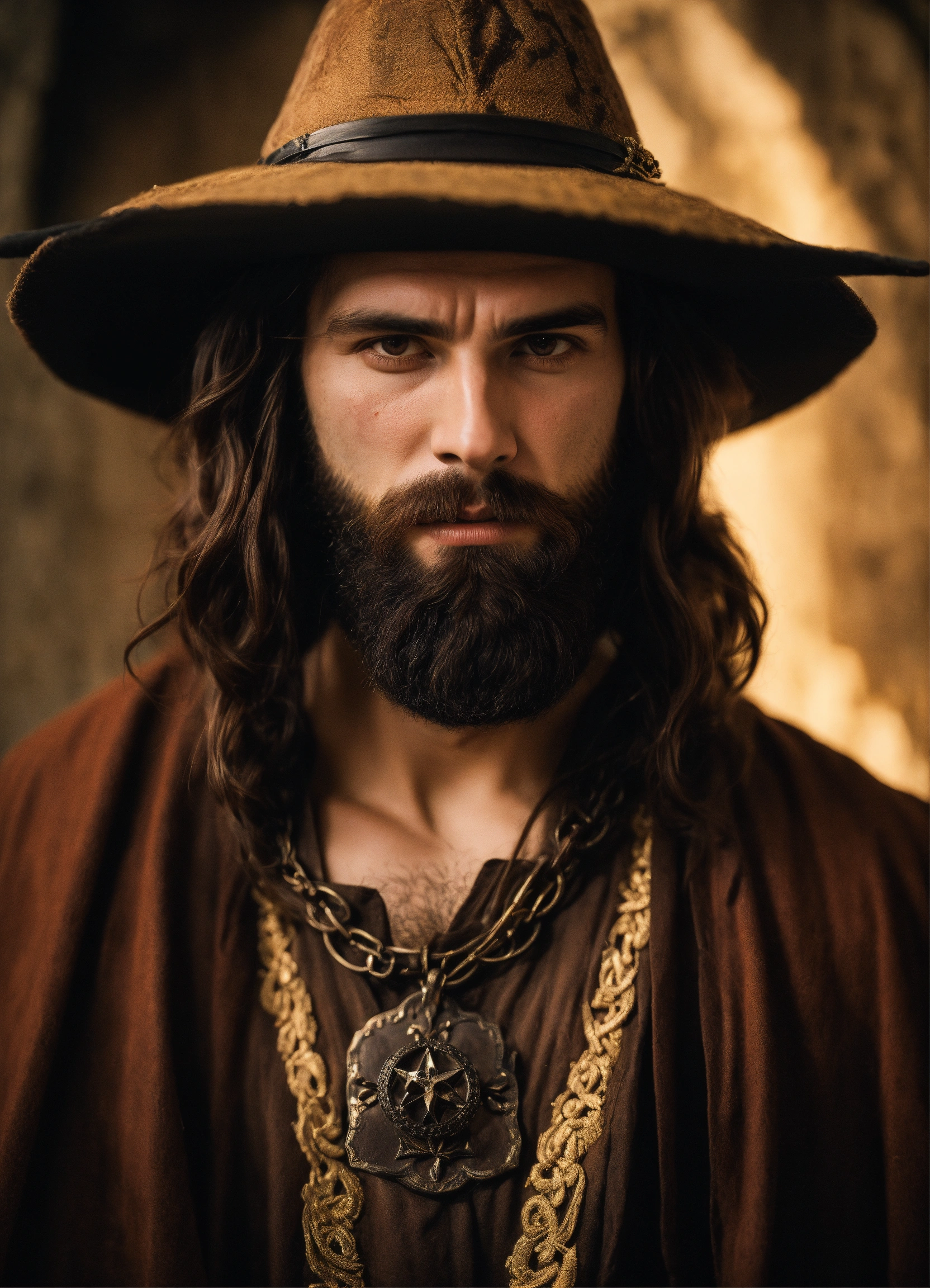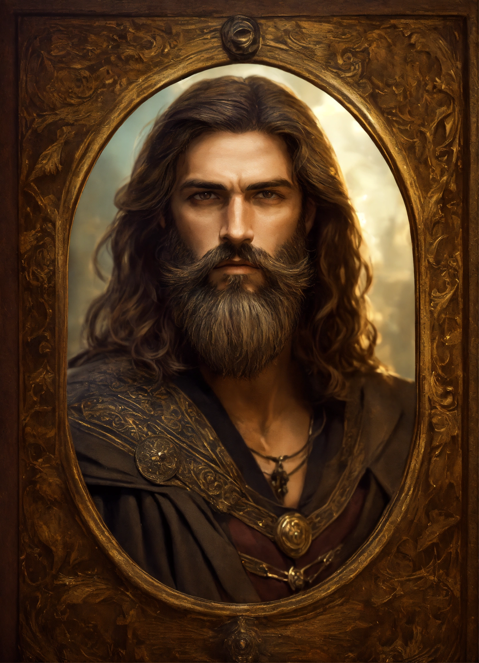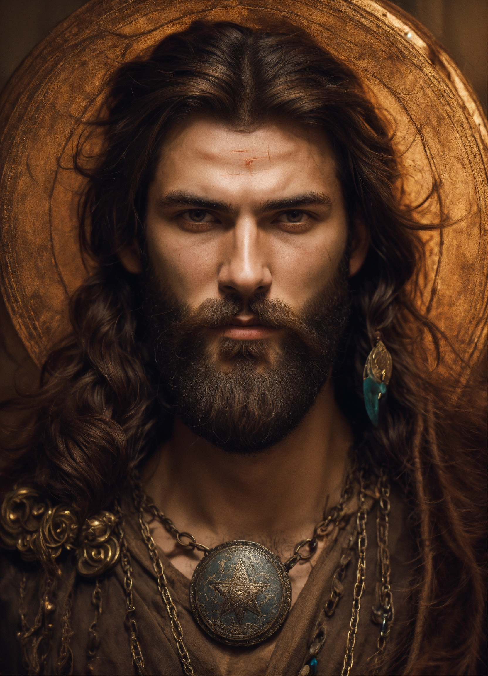 Man witch of antiquity with a beard with a scar
