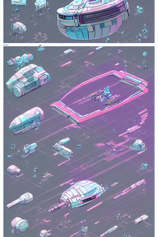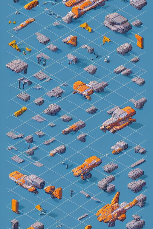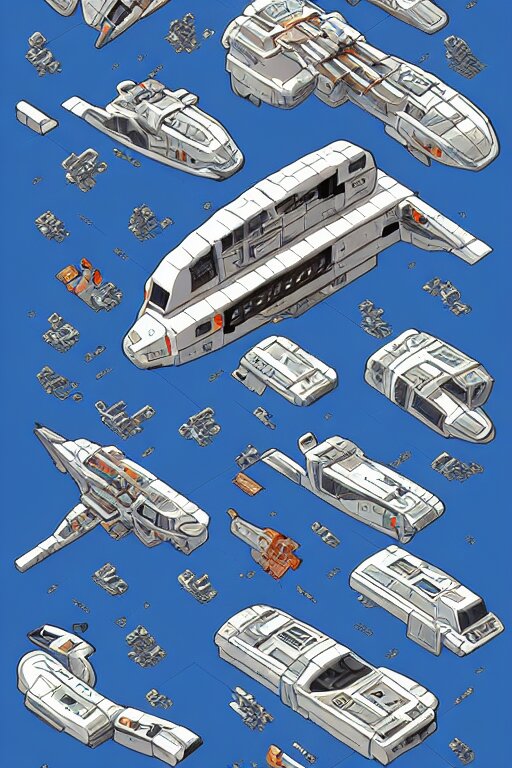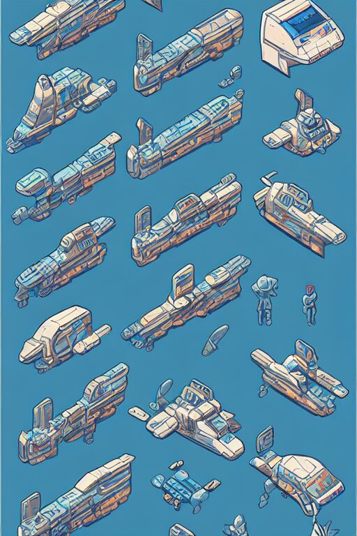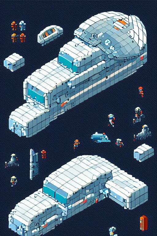 Space ship isometric design, pixel art, sprite sheet, game resources, futuristic van by josan gonzalez, victor calleja