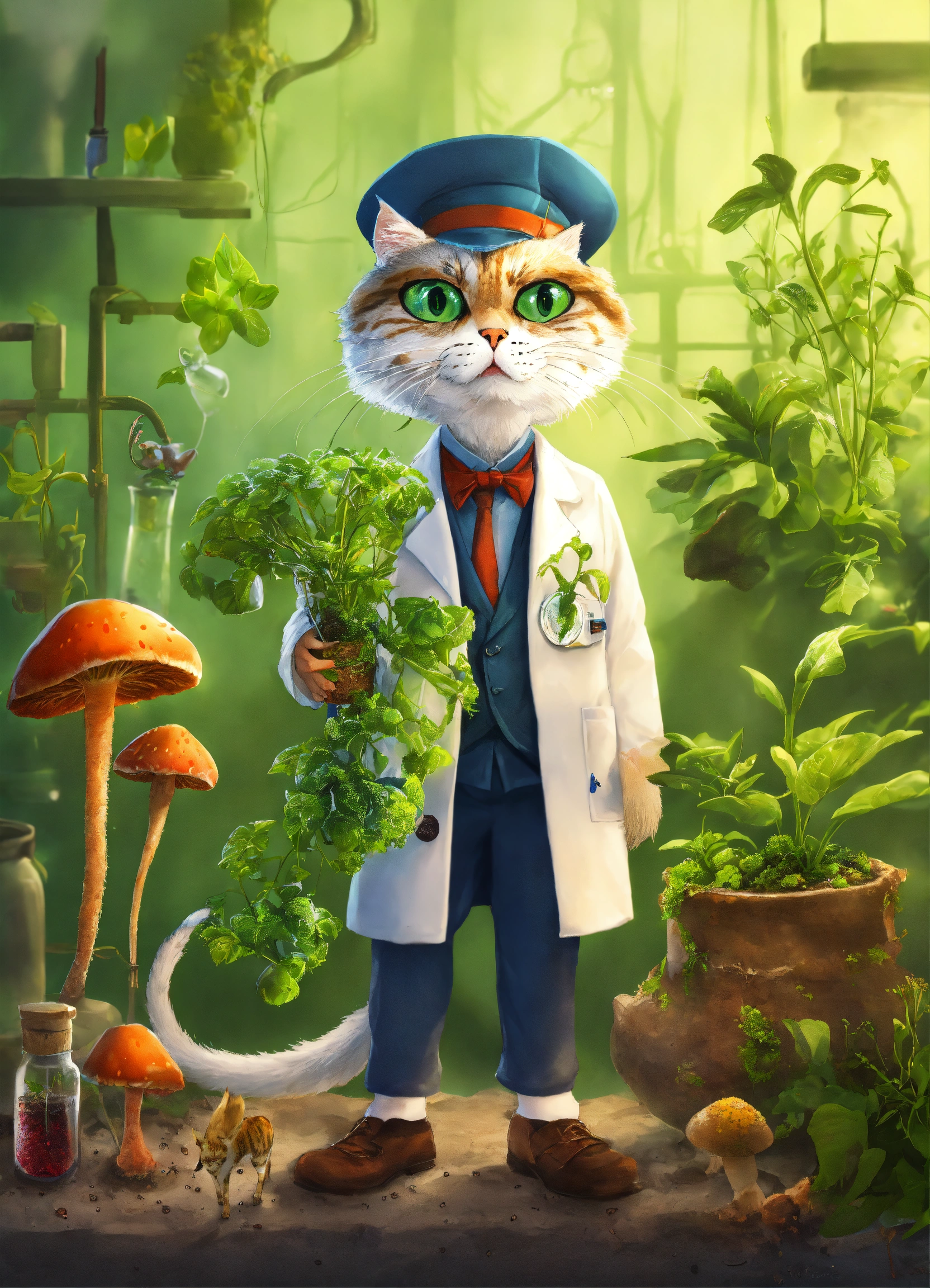 A mad cat scientist with plants
