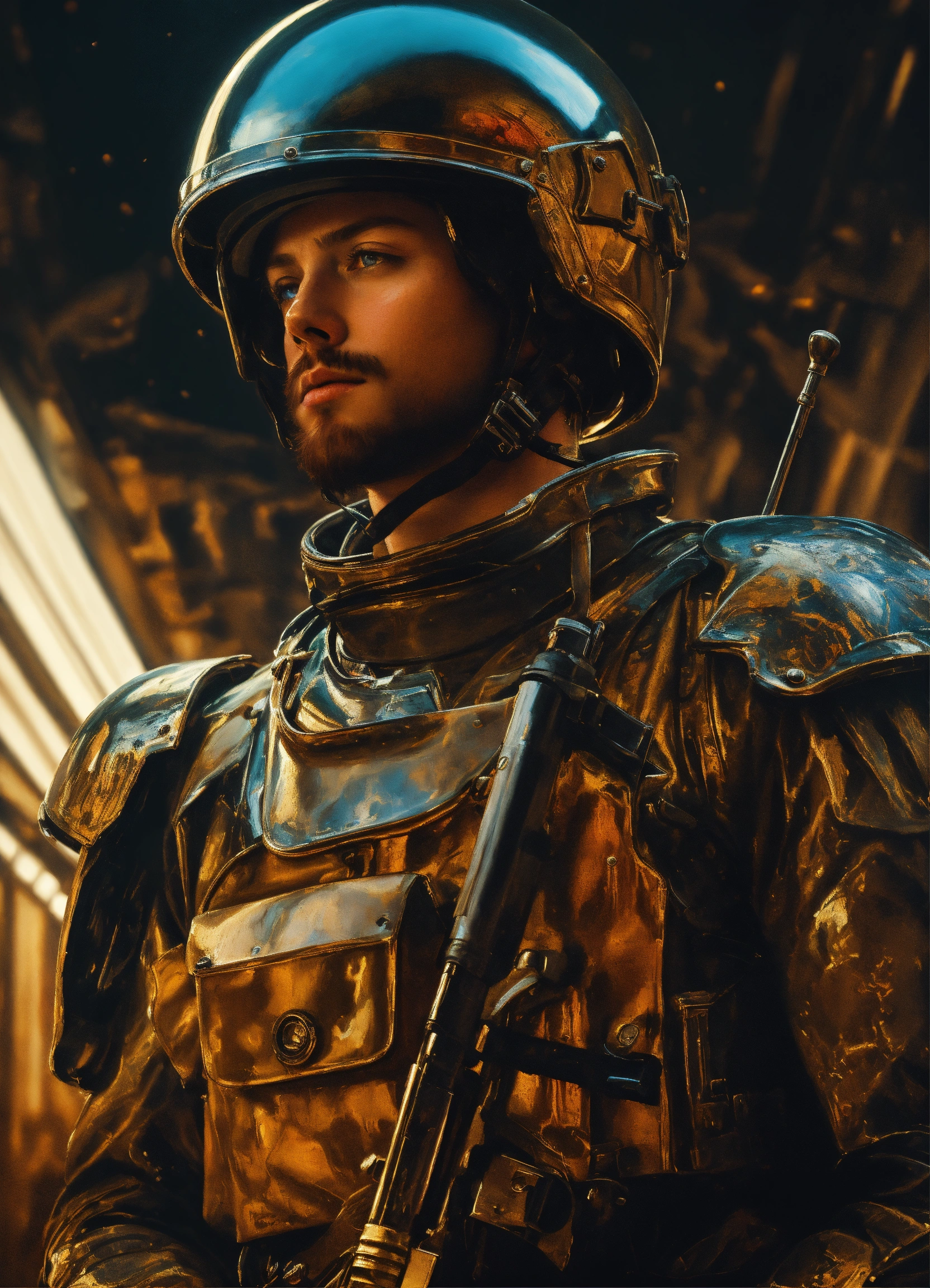 A detailed painting inspired by caravaggio of a soldier, science fiction poster with many details. dramatic cinematic futuristic scene. accurate anatomy. symmetry. a dramatic background. oil painting like intricate artwork by caravaggio. oil painting. oil on canvas. award winning. dramatic. trending on artstation. 8 k