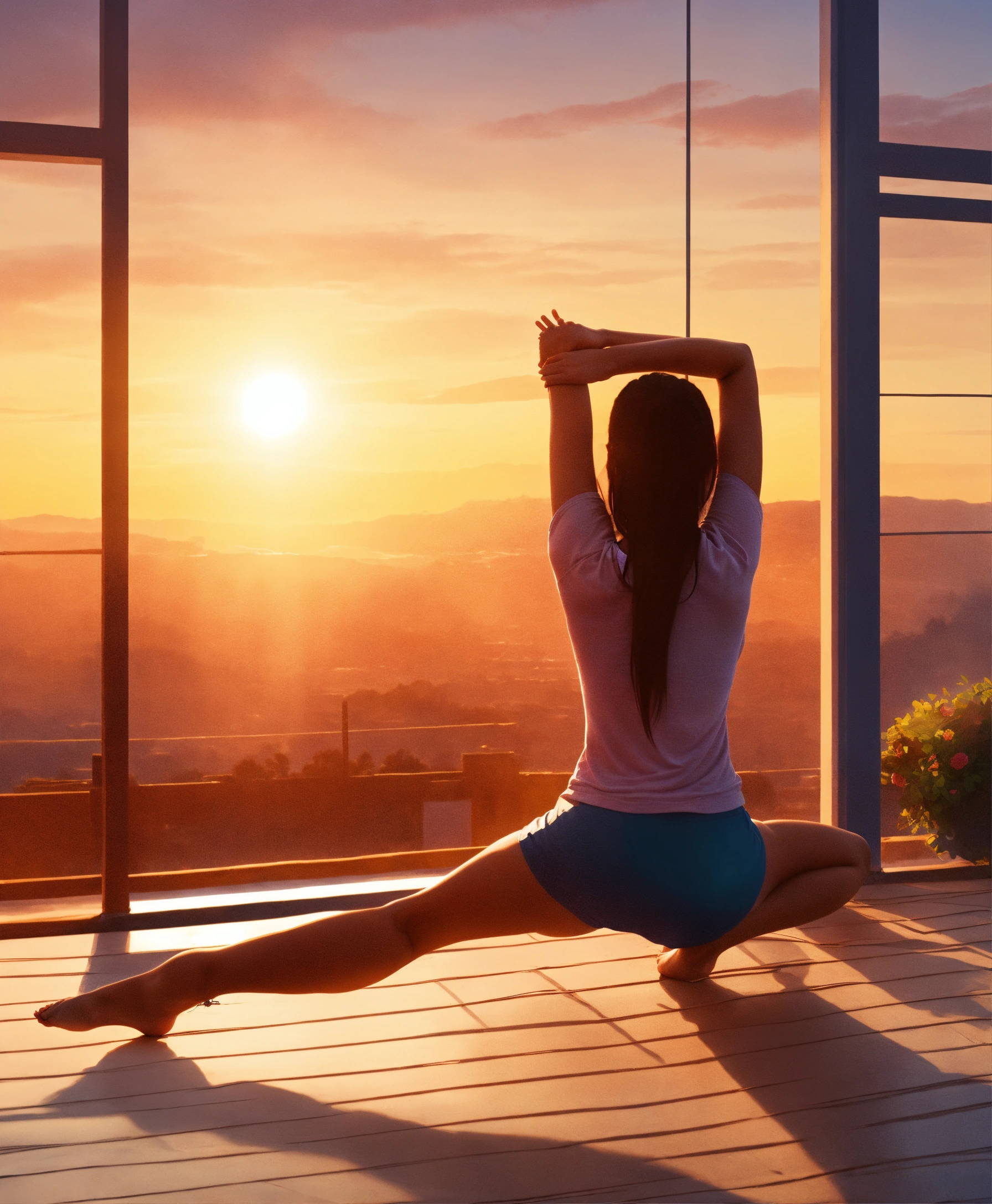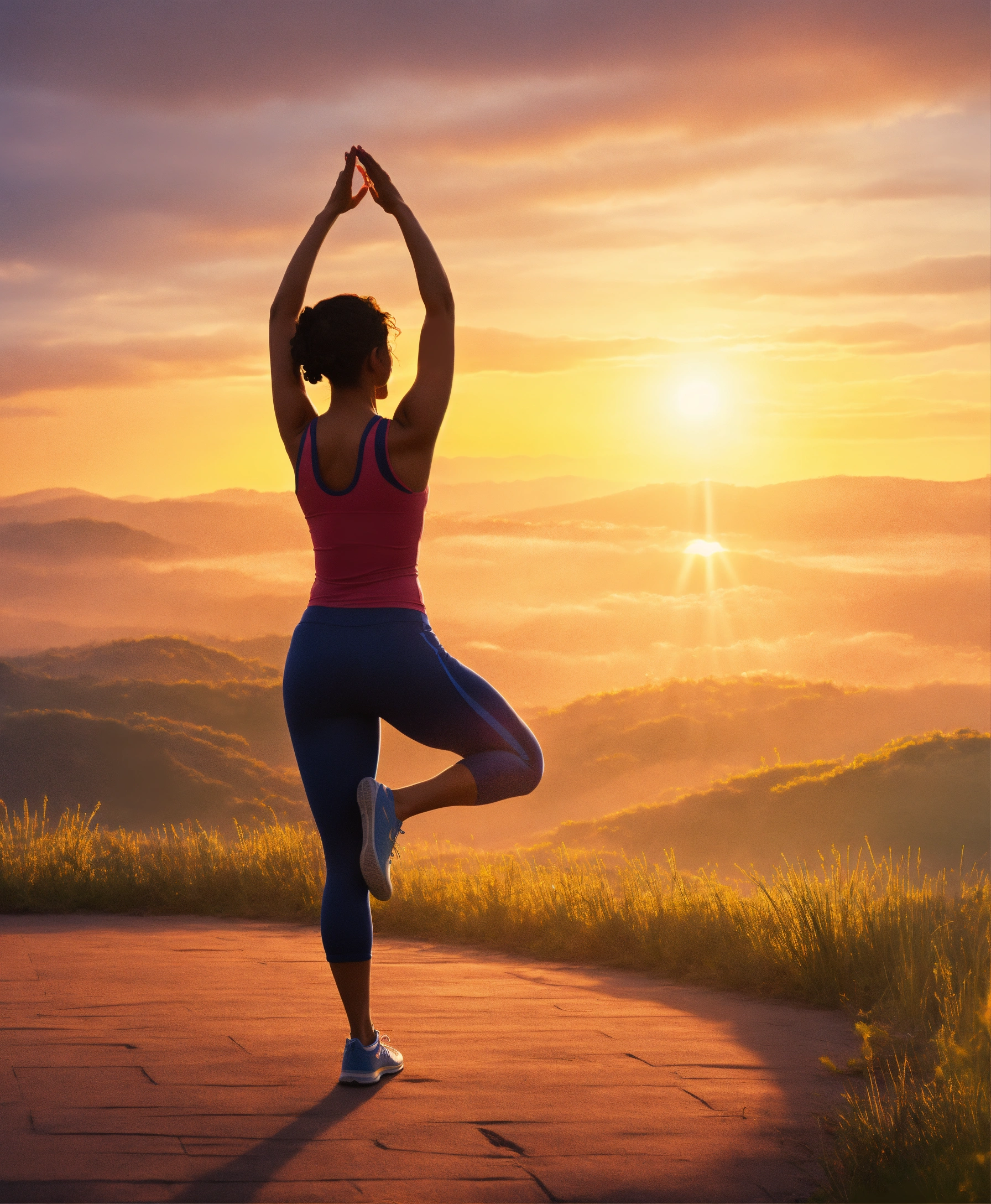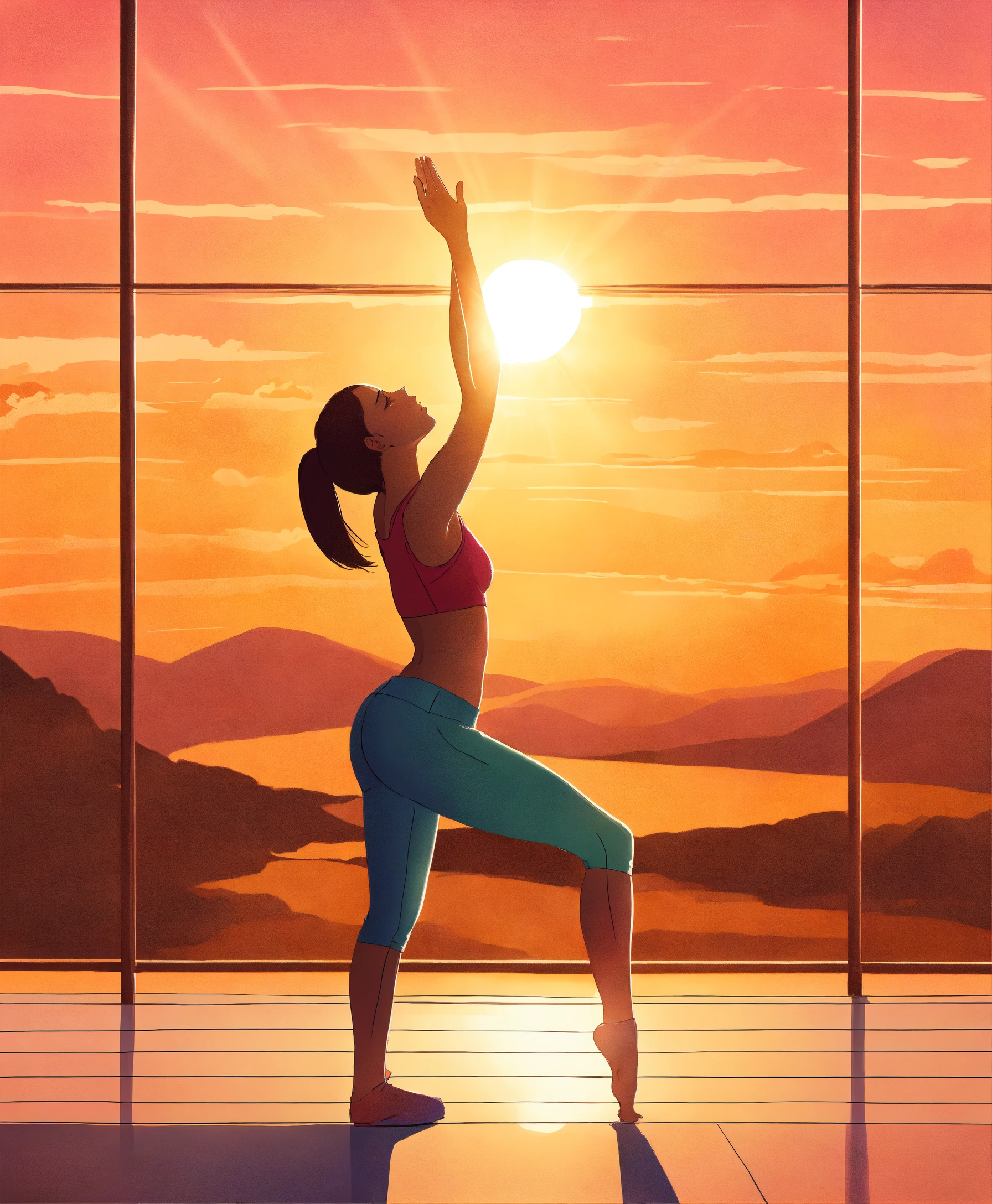 a woman stretching at dawn