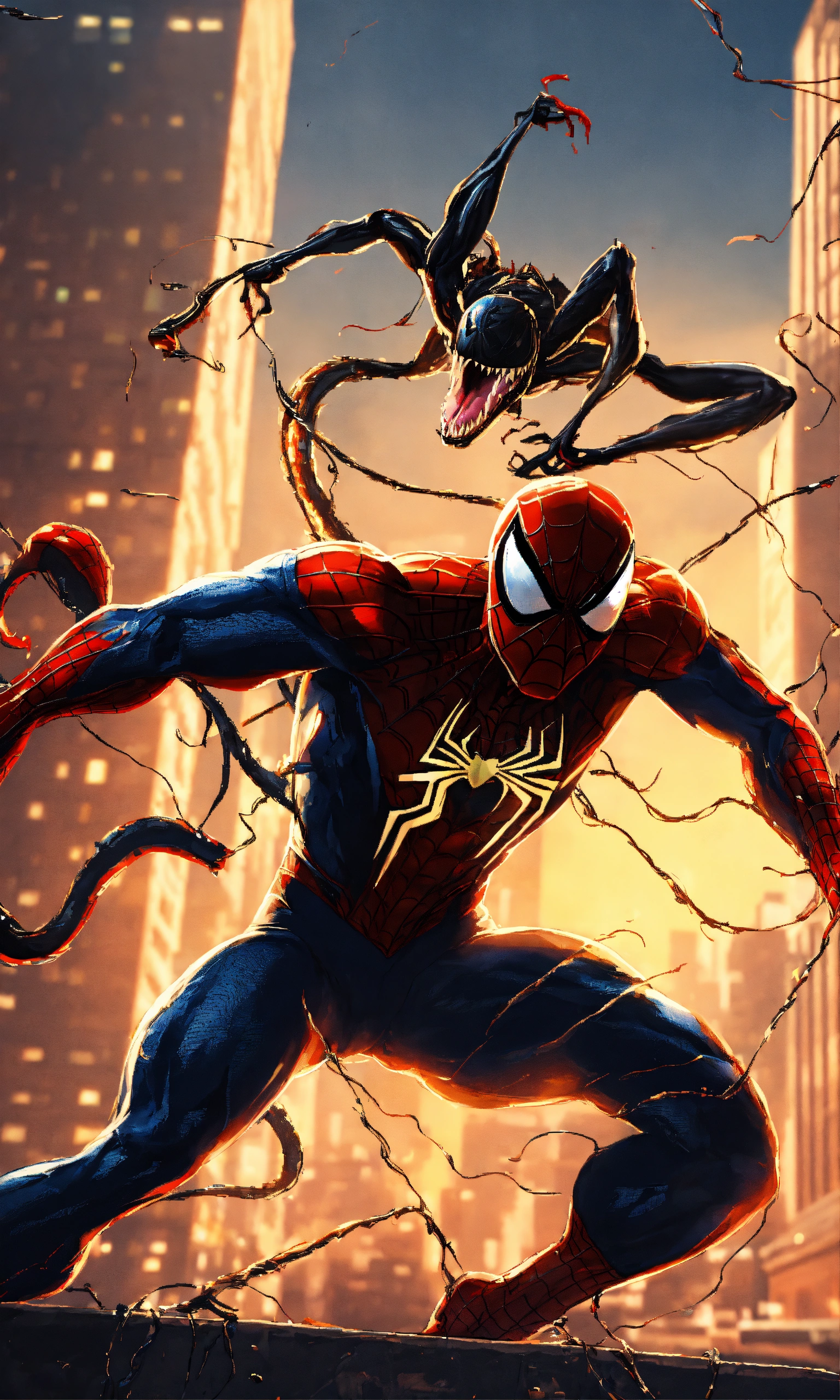 Spiderman fighting with venom