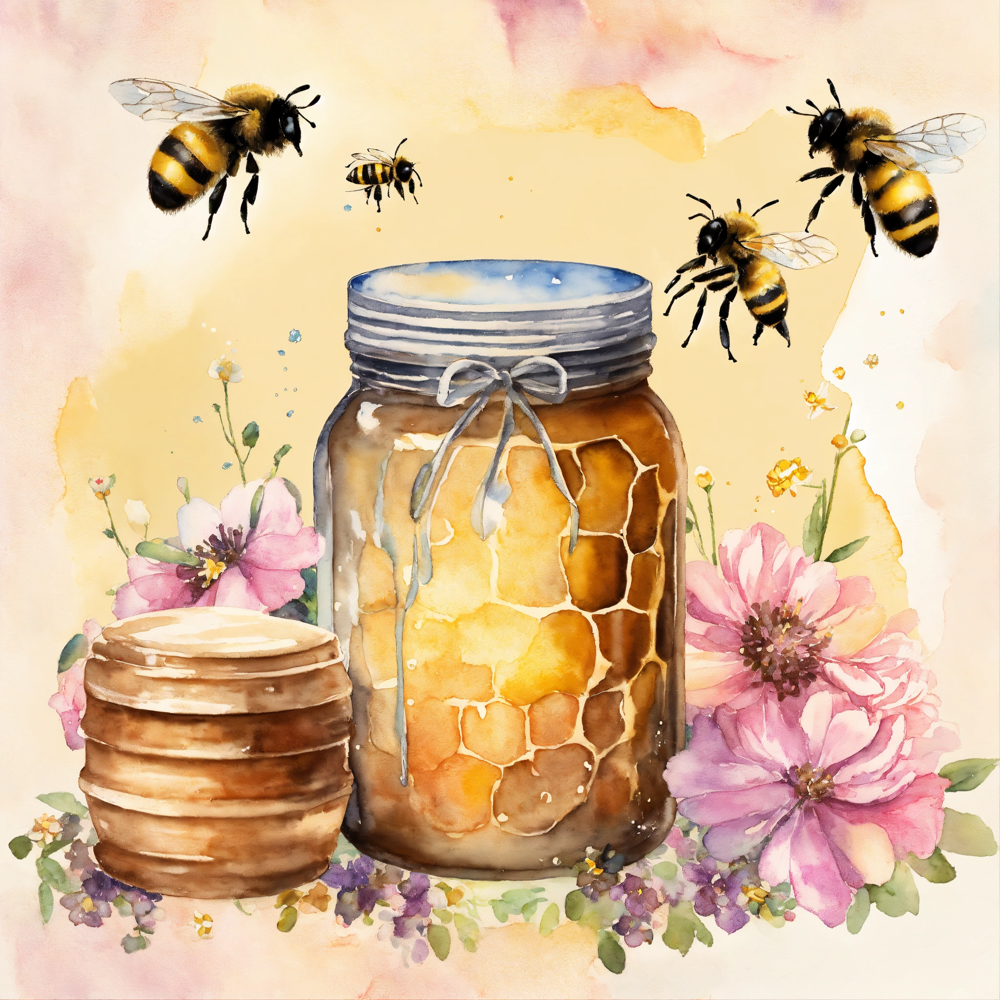 Shabby chic dreamy mist pastel junk journals honey bee watercolor clipart, behive honey spoon drips jar, floral watercolor honeycomb, bee graphic bee and honey, beehive, beekeeper, bumblebee bee hive clipart beehive bees flowers clipart honeycomb honey clipart honeybee swirling magical fairytale abstract art style