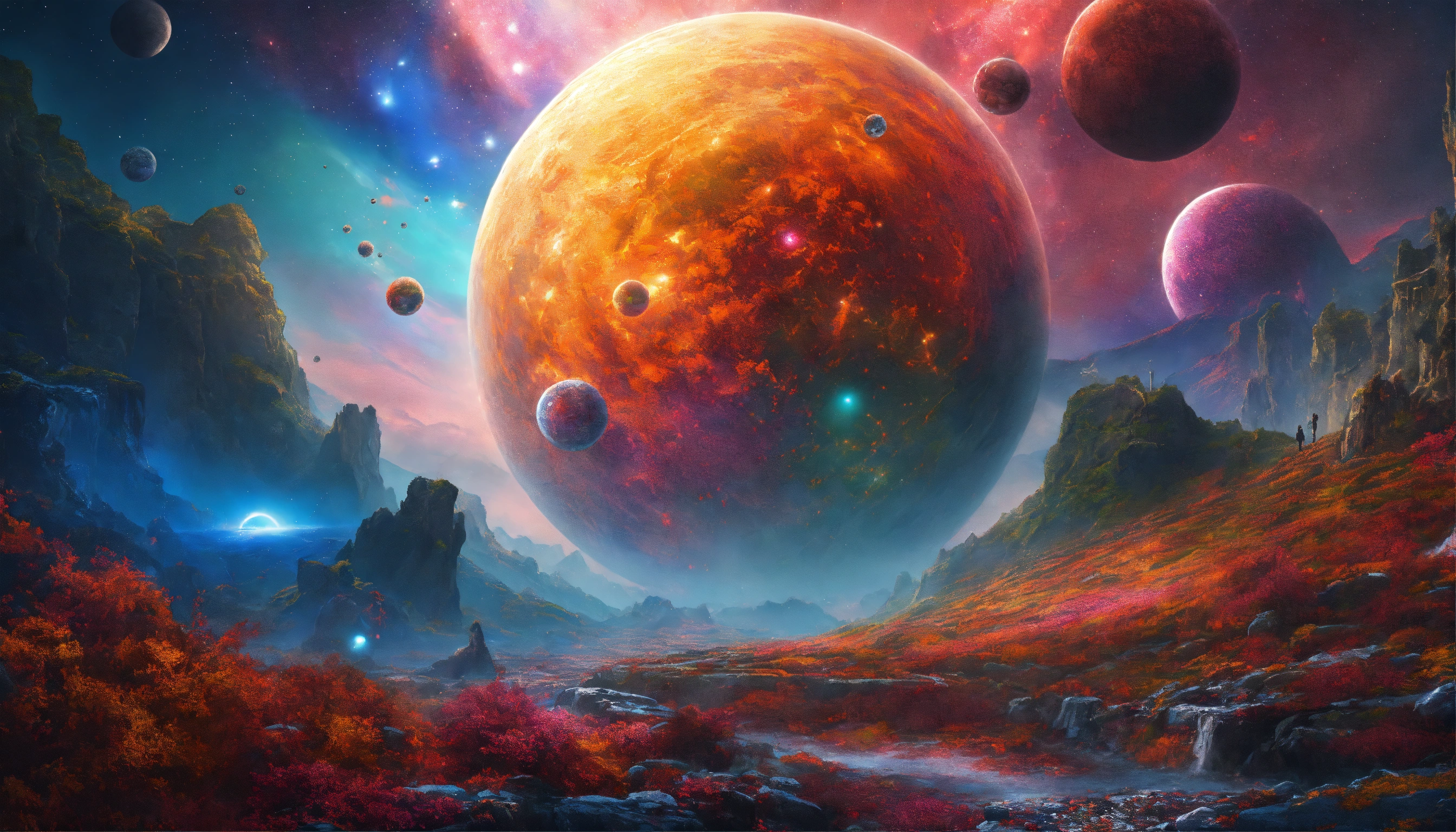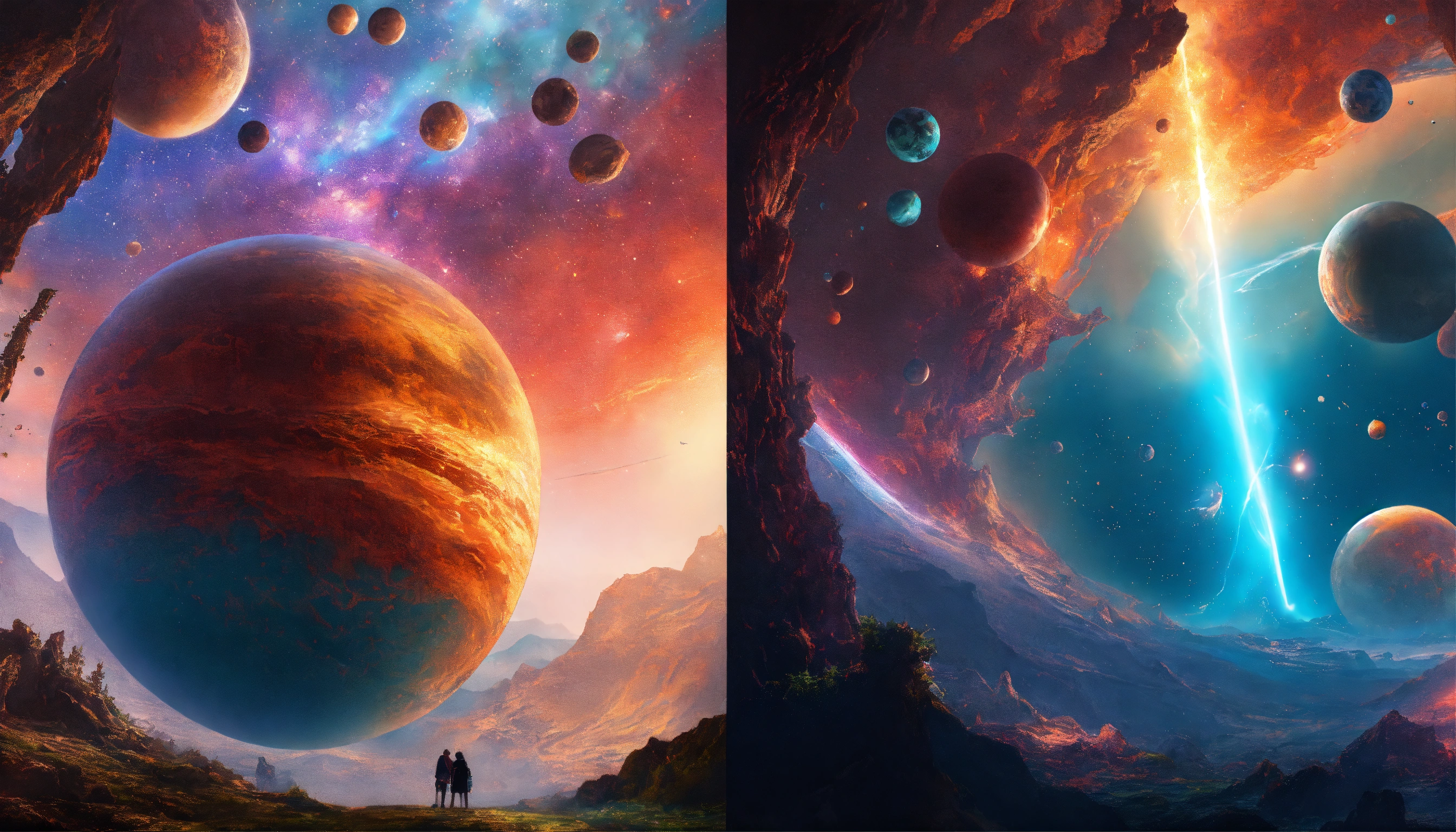 Two universes that are the oposite from one another in the same frame, mysterious, beautiful, magical, edgy art, highly detailed, 8k, hyper realistic, fantastic colors