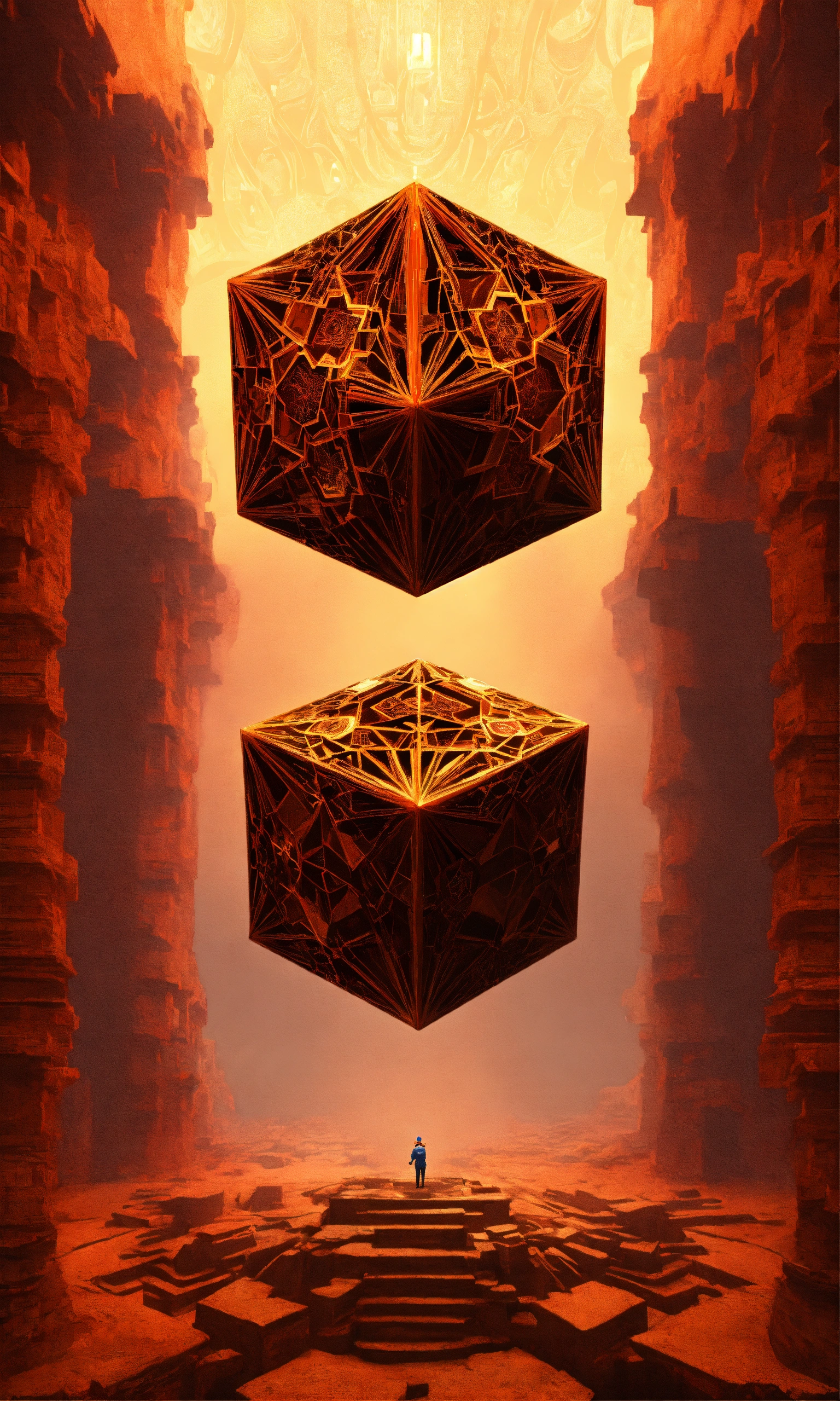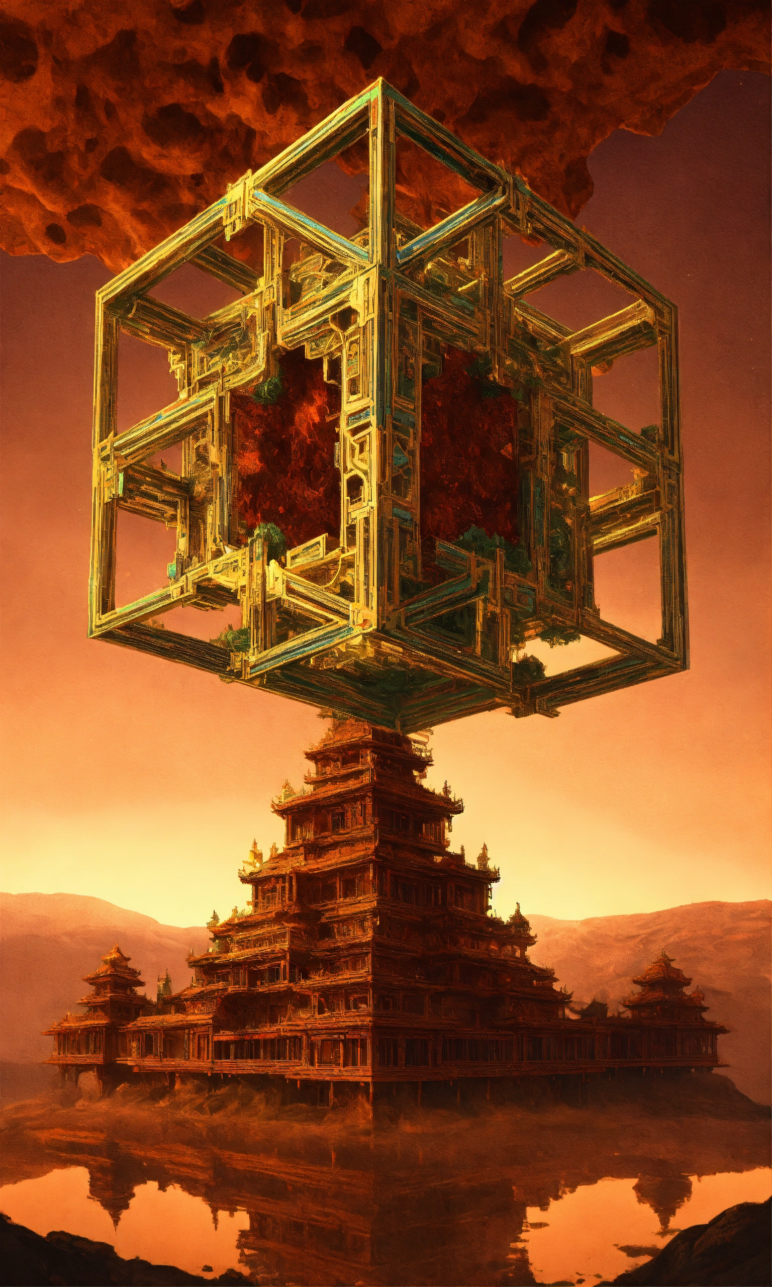 Taoist tesseract body fractal three point perspective hypercube melting mandelbrot hands