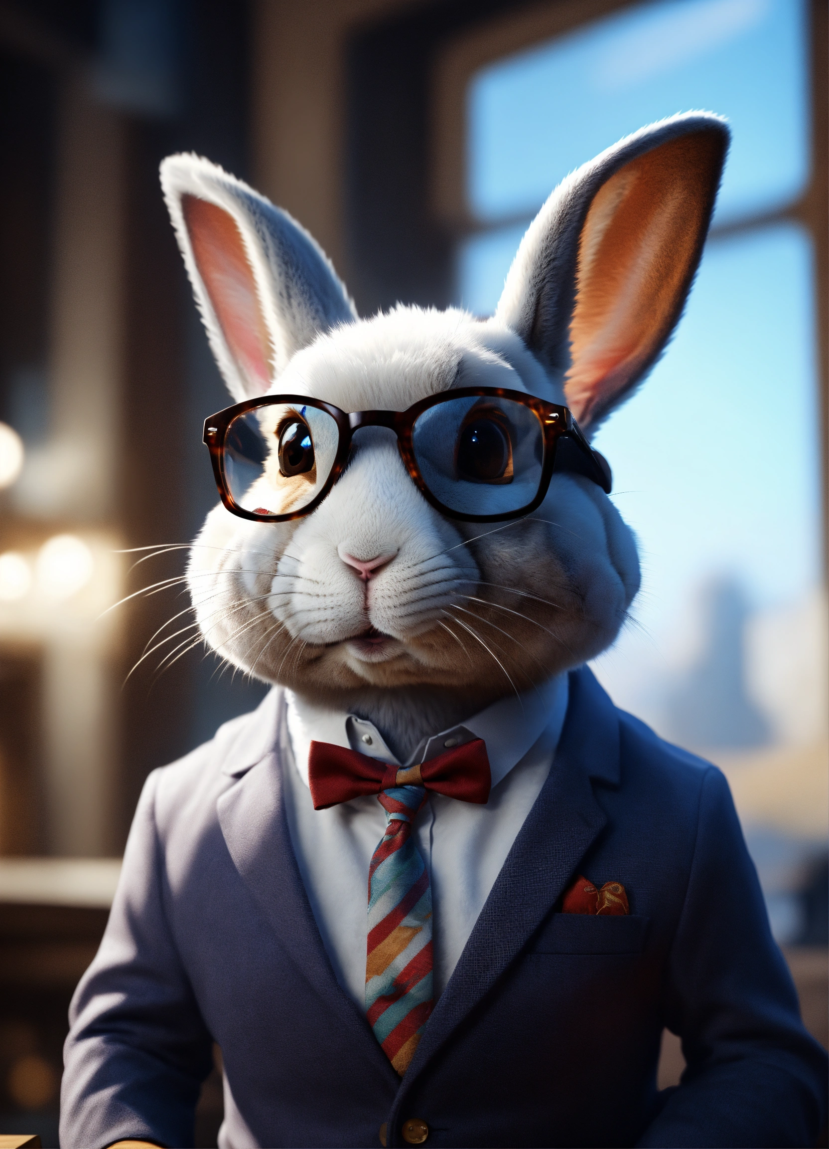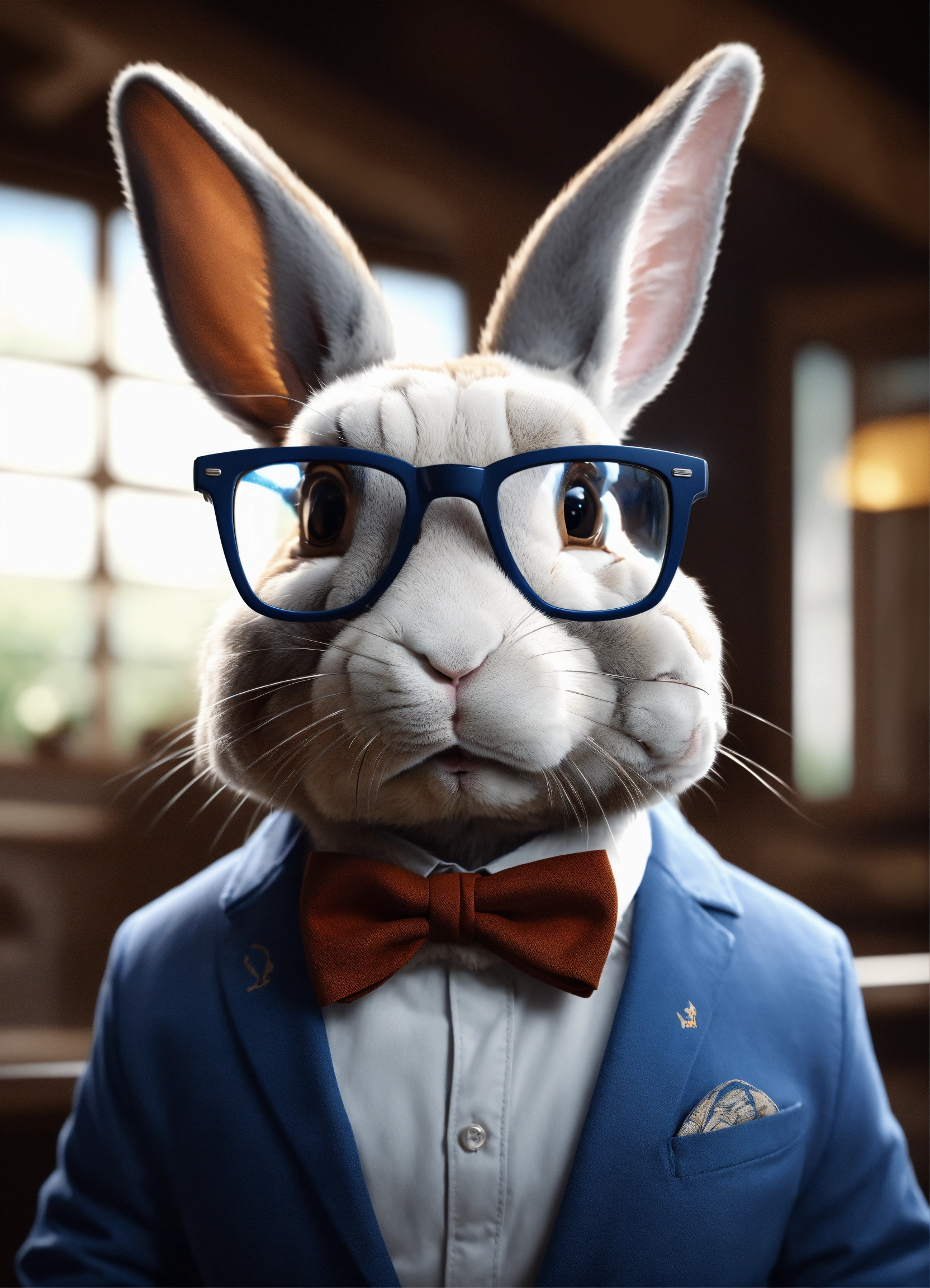 A smart rabbit wearing glasses