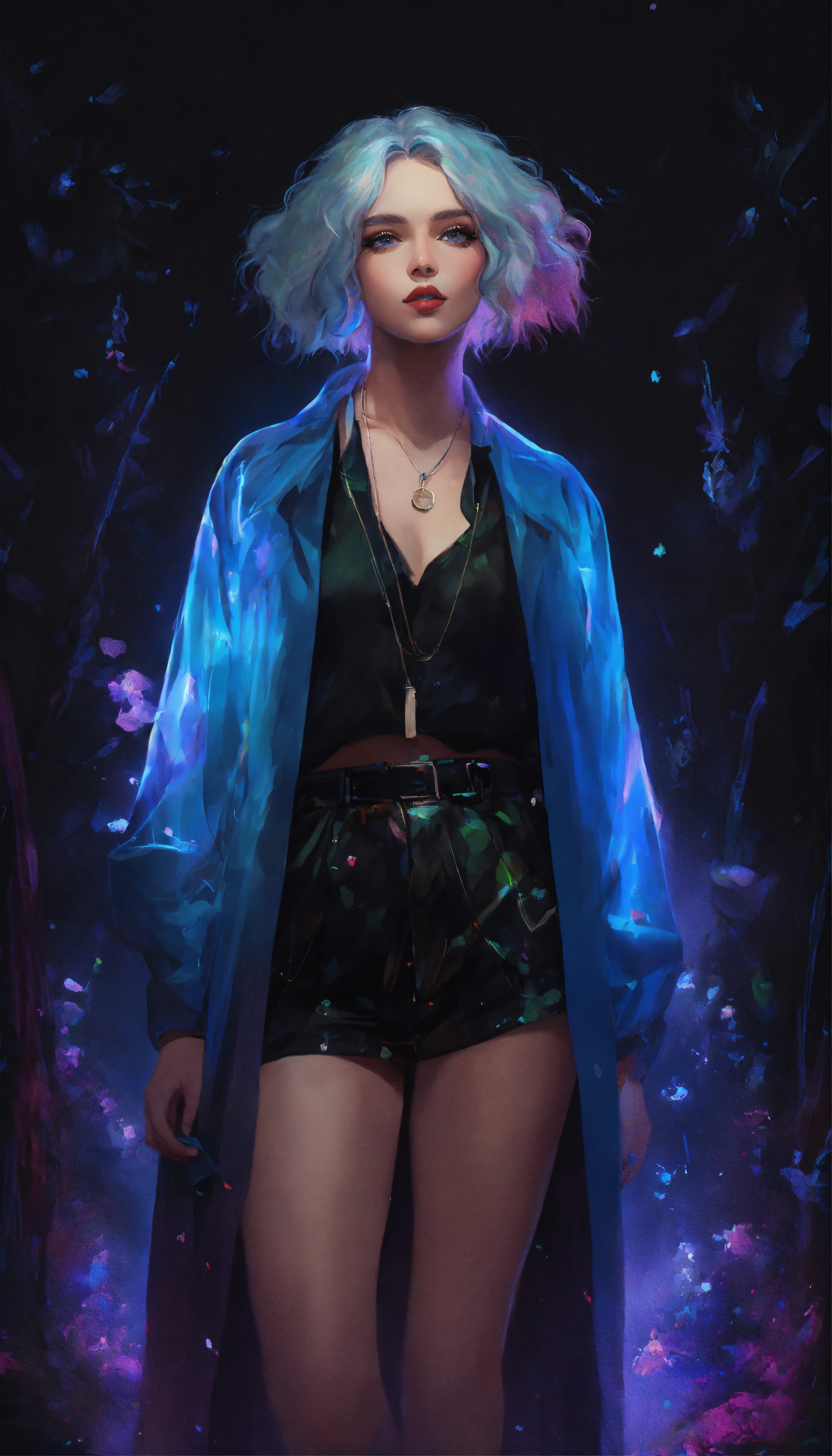 Billie ellish, illustration, 2d, realism, black flat background, flat image, mysterious aura, full body