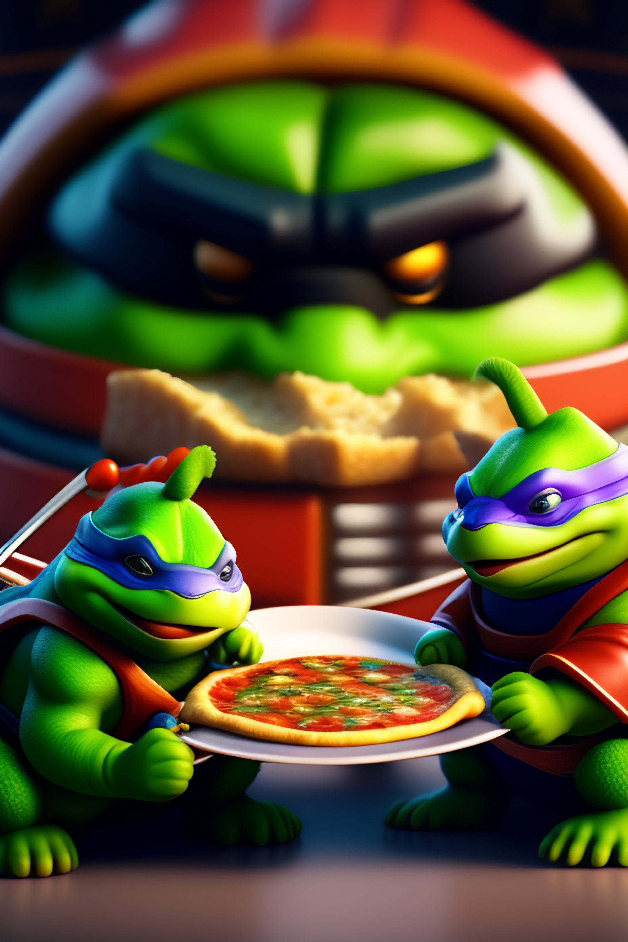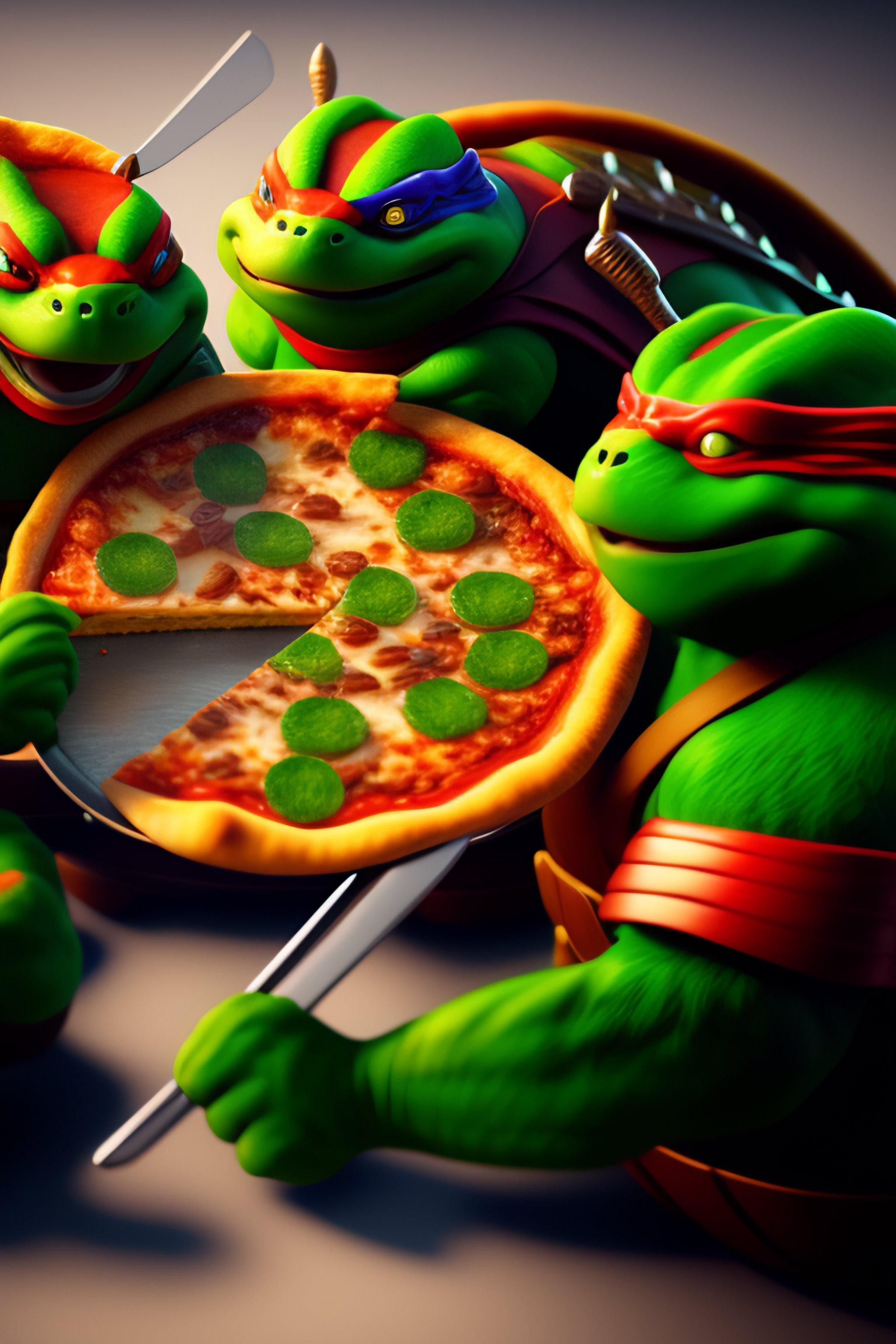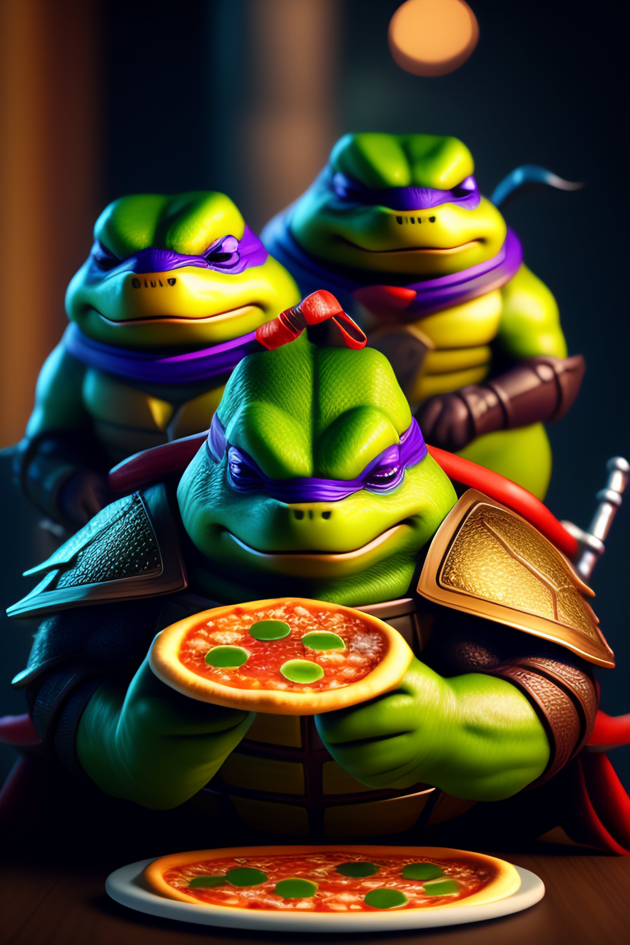 Ninja turtles eating pizza