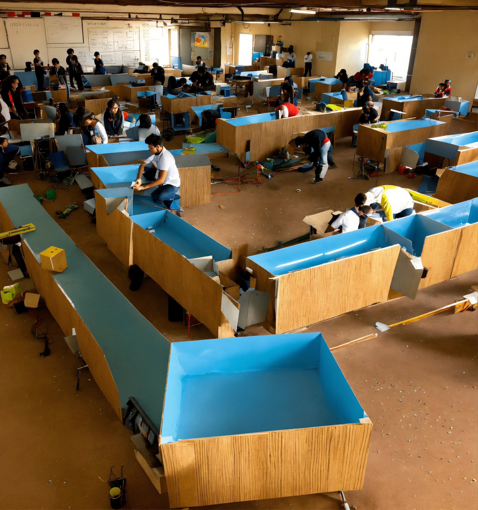 Un proyecto de ingenieria en un aula donde los estudiantes discuten