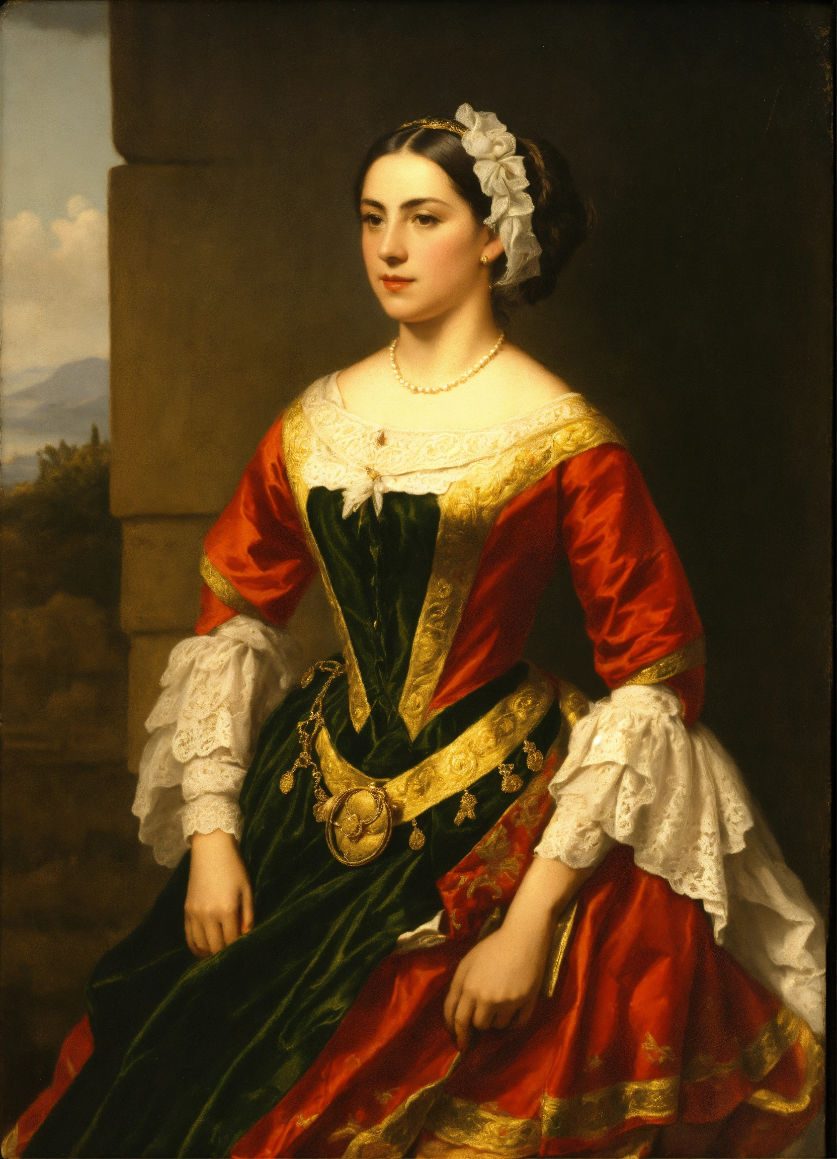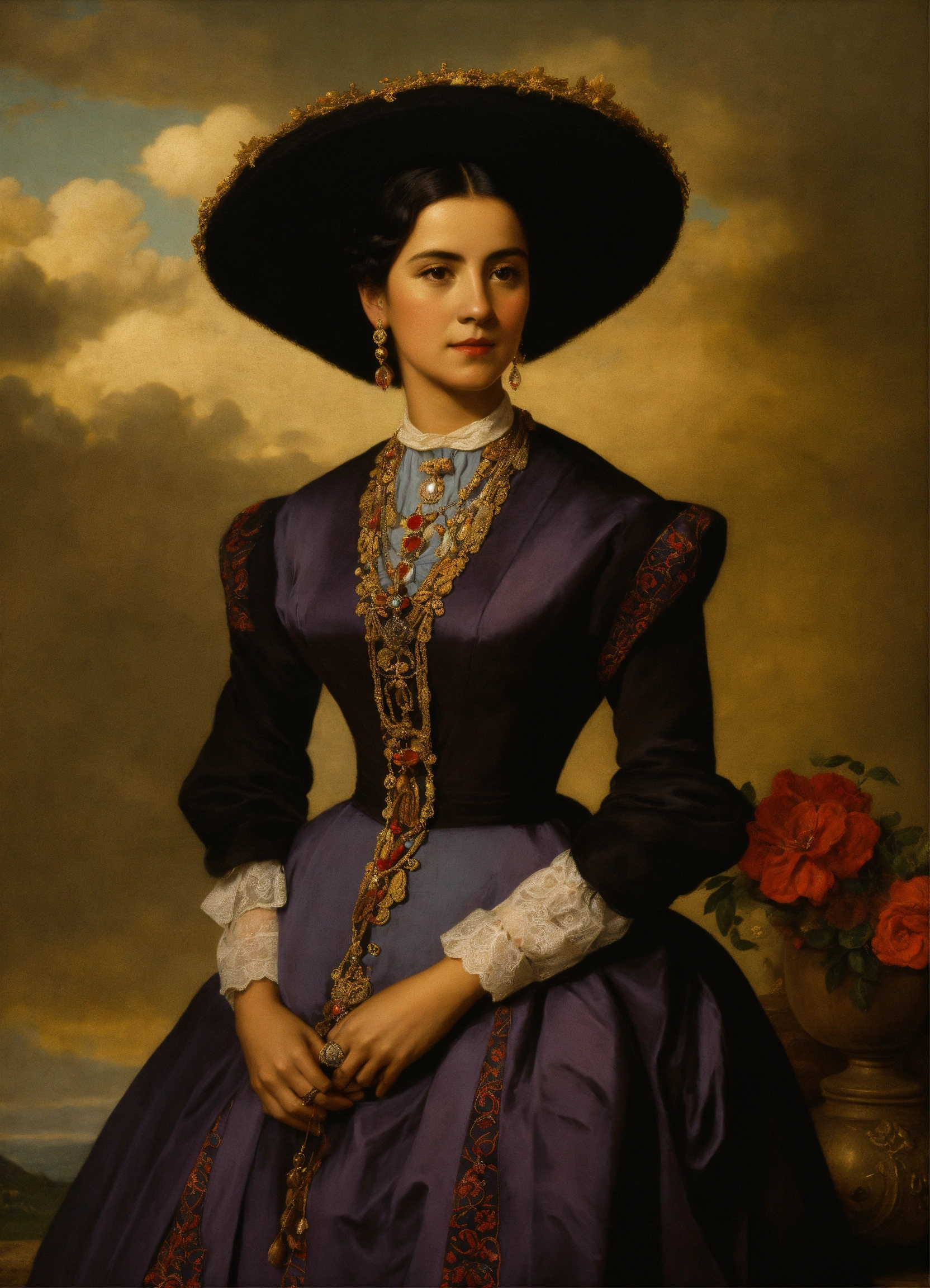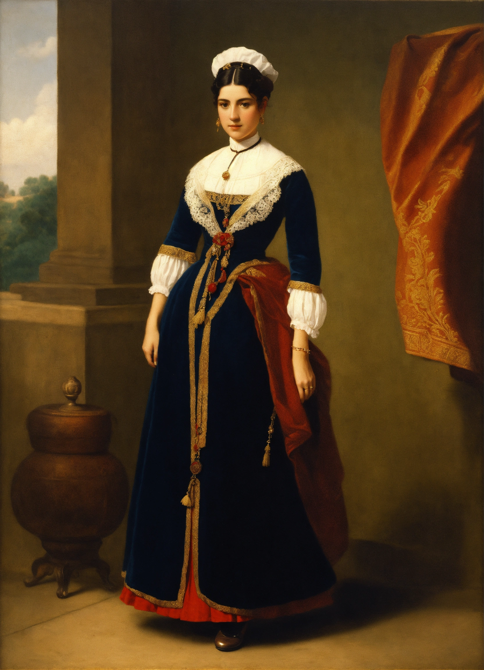 Una mujer con vestimenta antigua del siglo xix y ropa sencilla