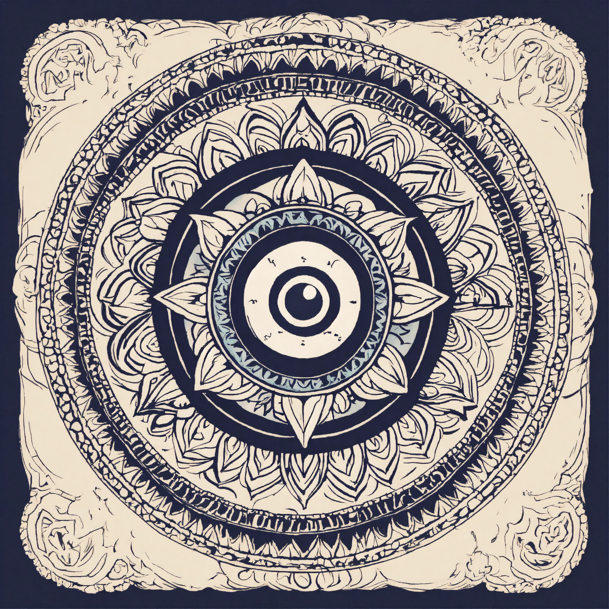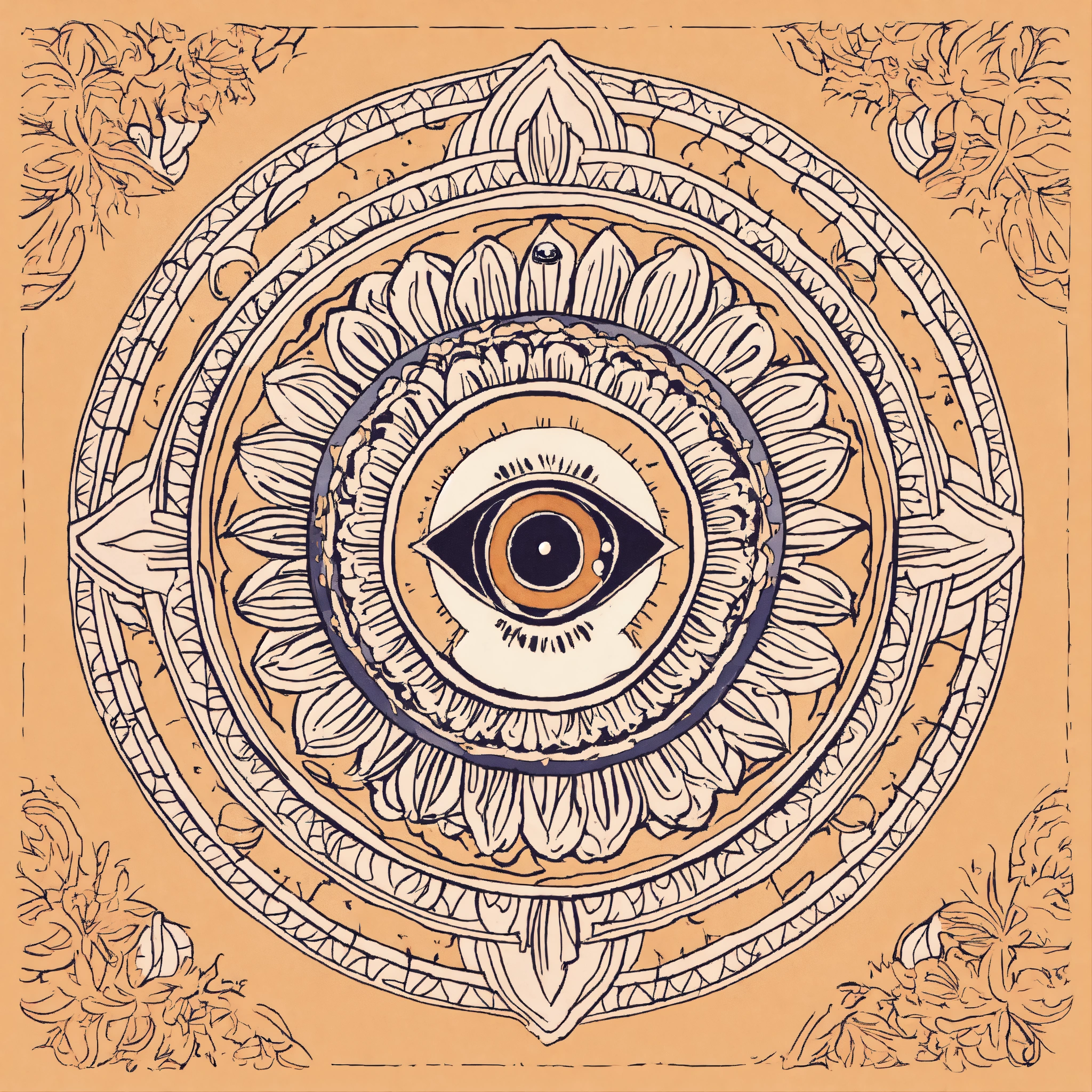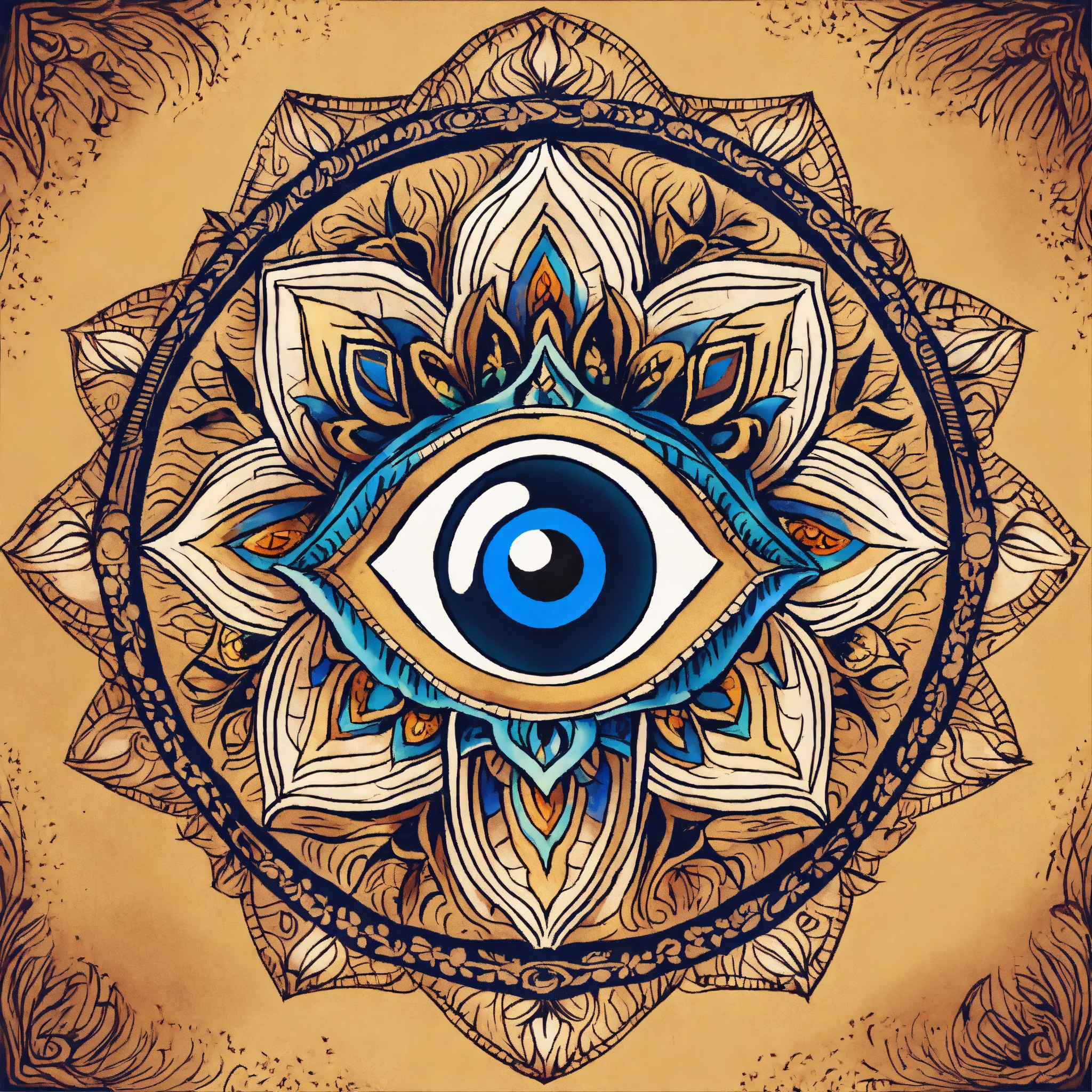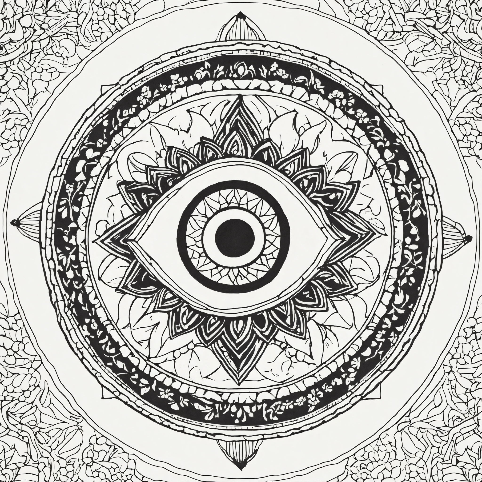 Simple mandala with an evil eye in the middle in a hand drawn style