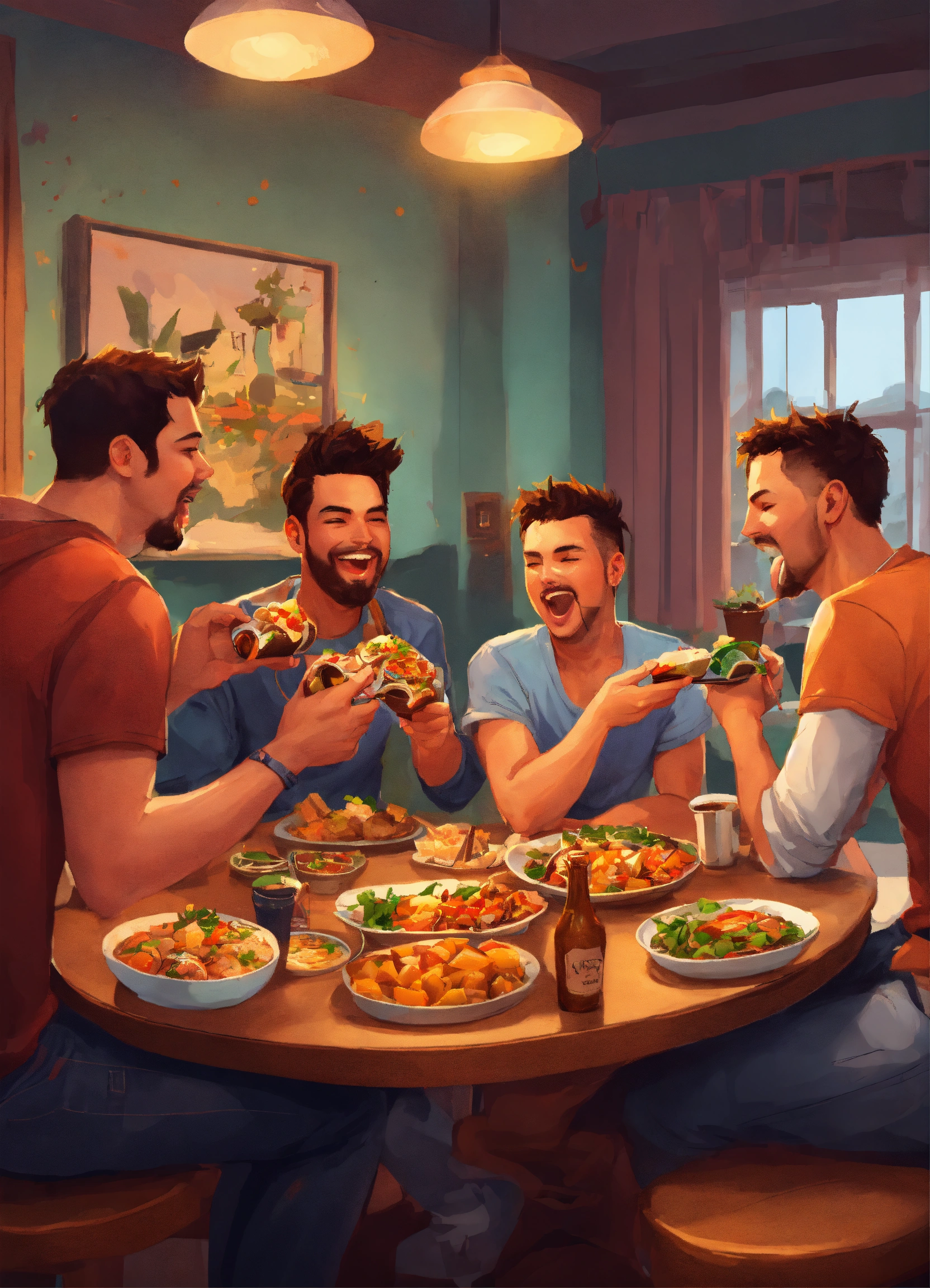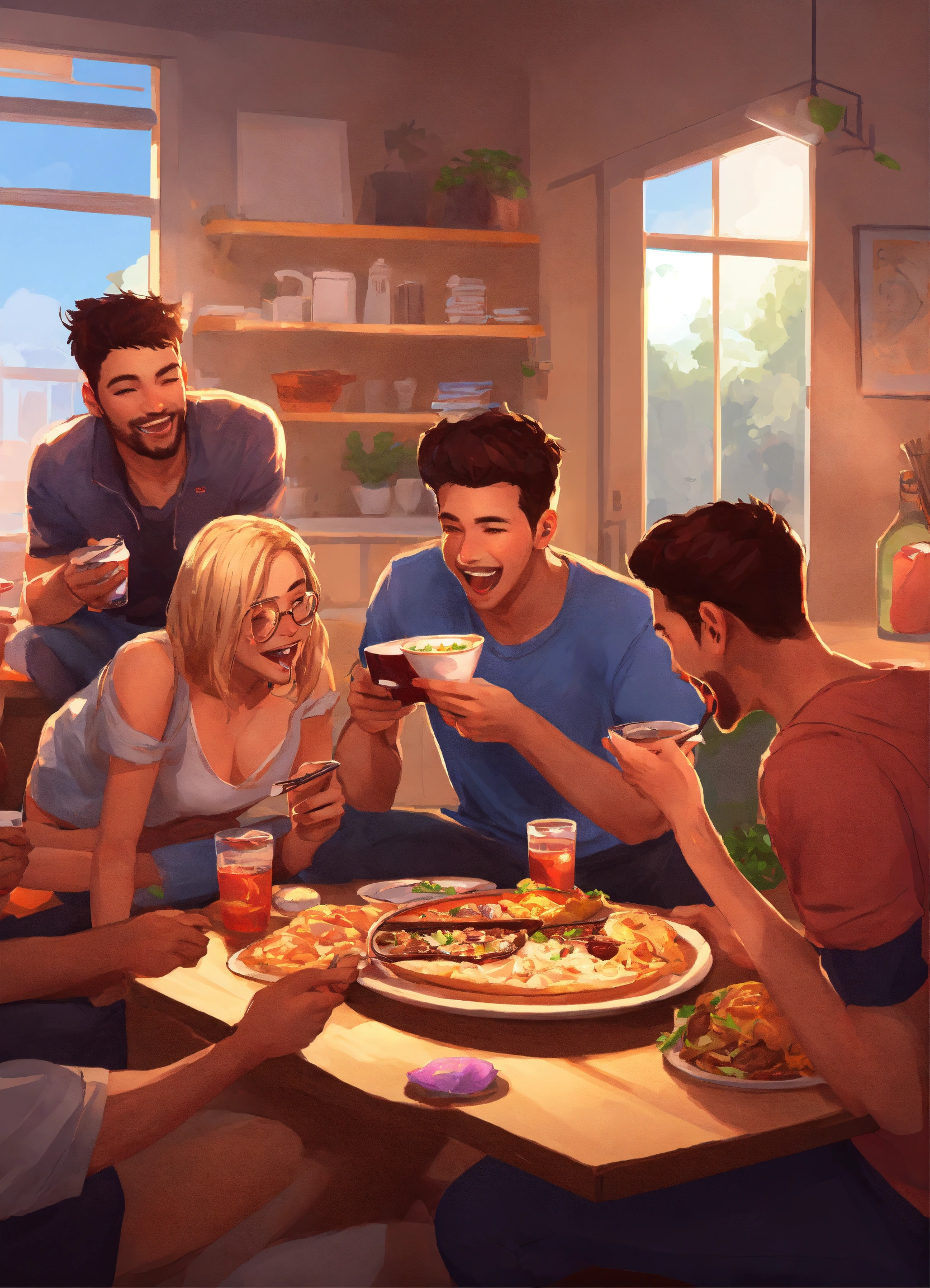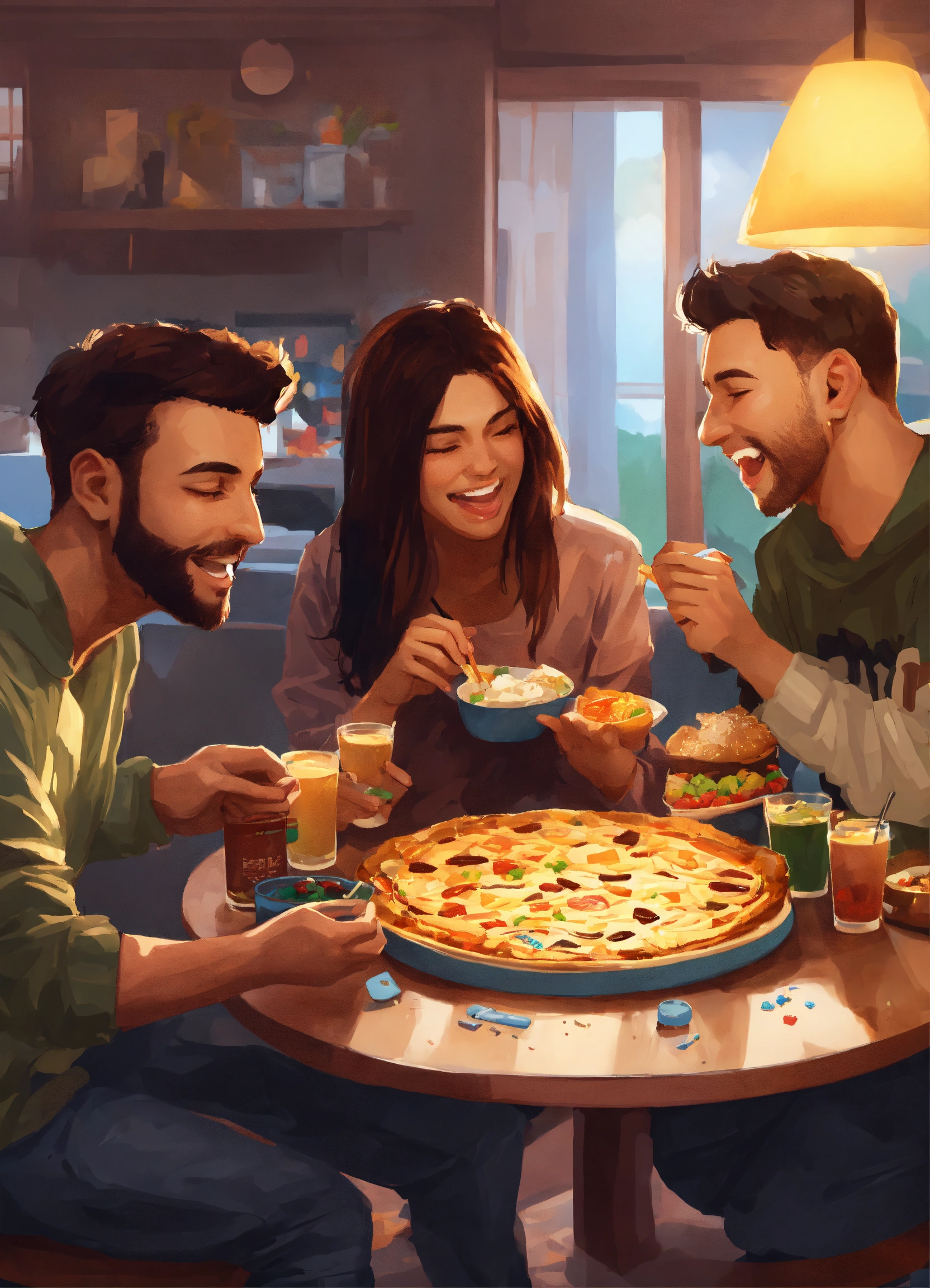 Friends playing games together realistic style