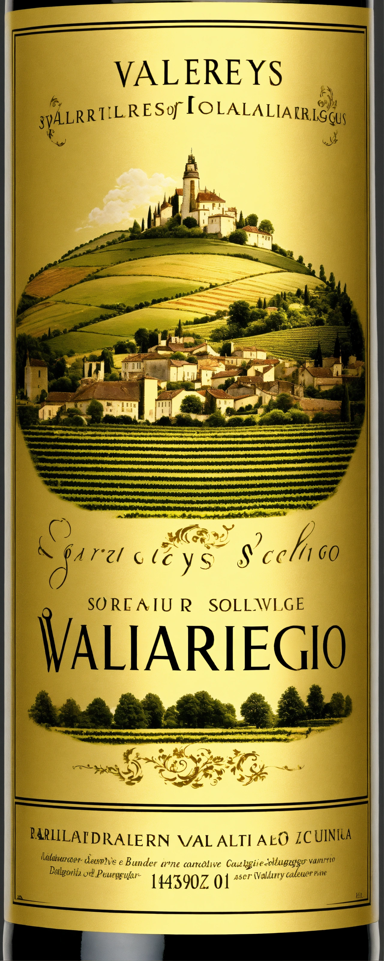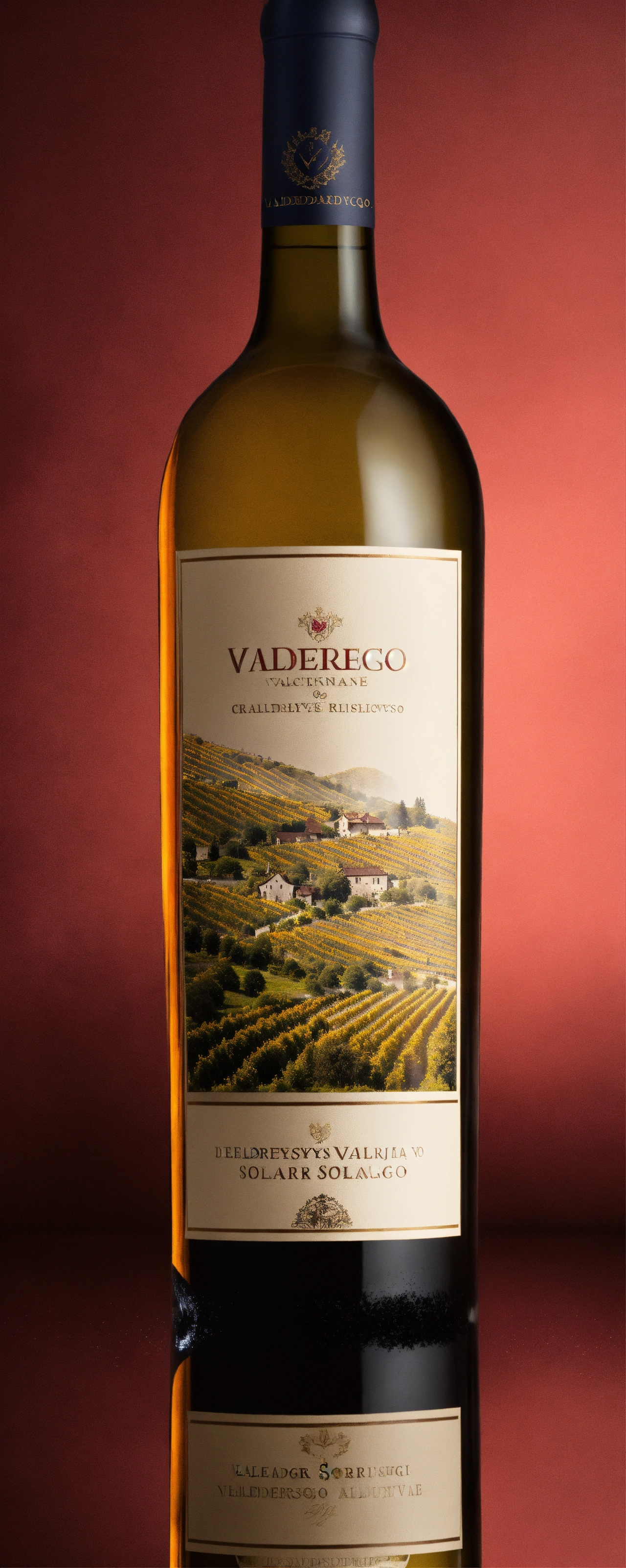 Create a bottle of a ficticial exclusive brand of burgundy wine called valdereyes solariego