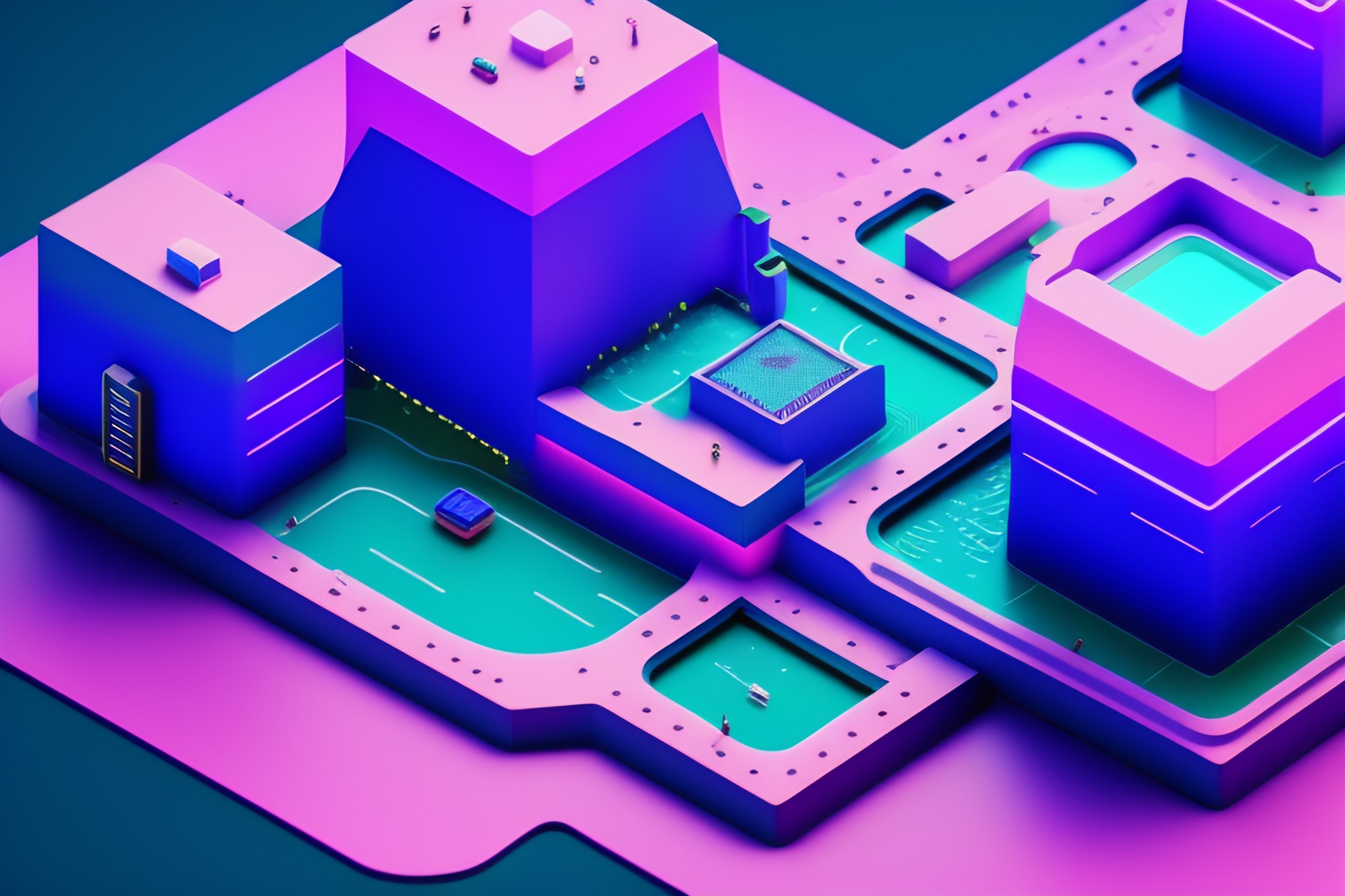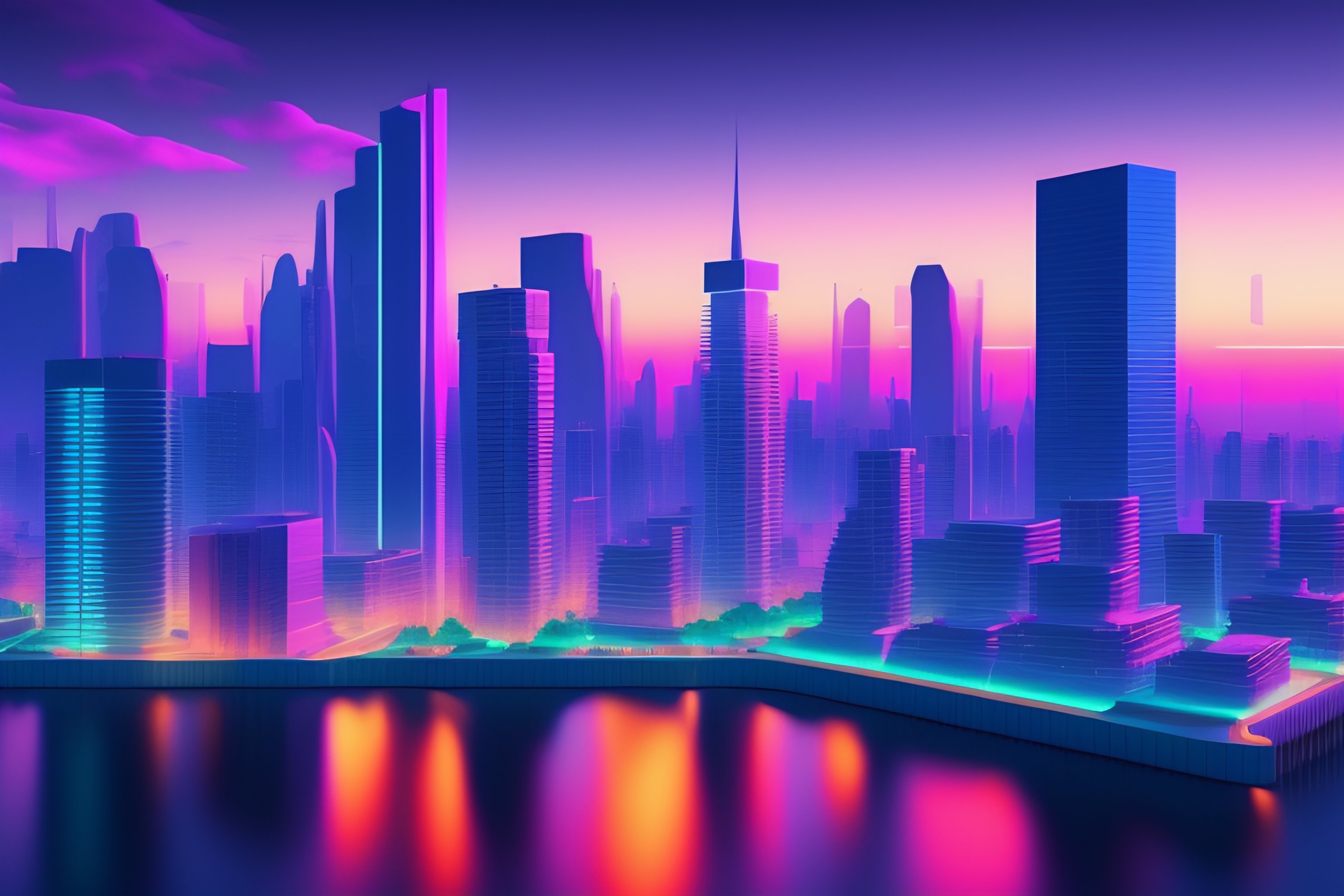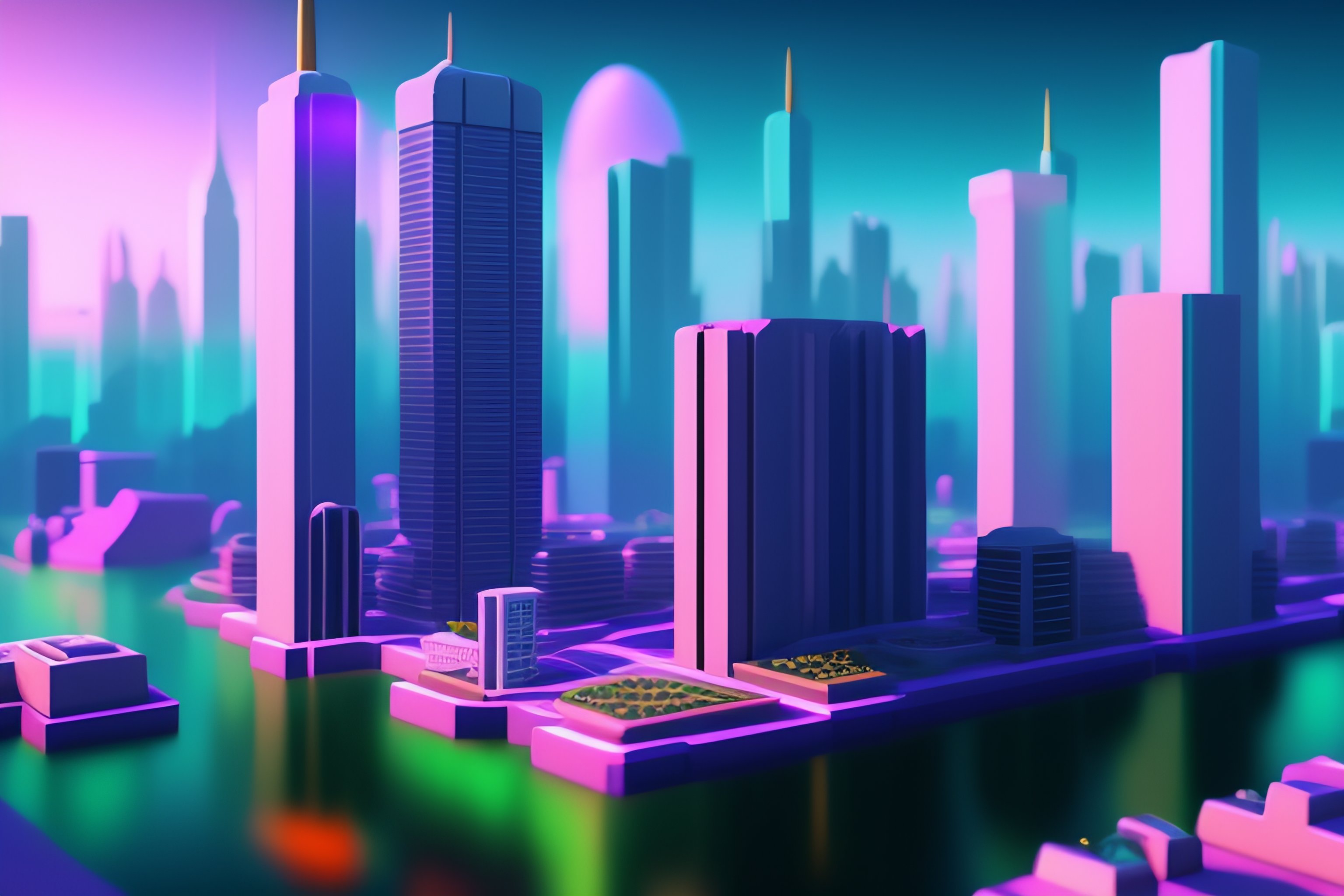 Vaporwave videogame city wallpaper