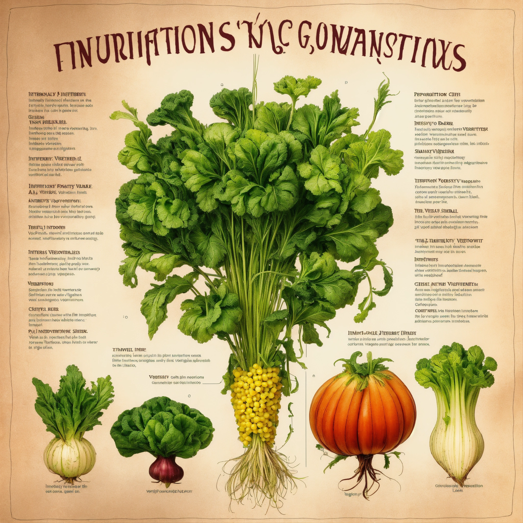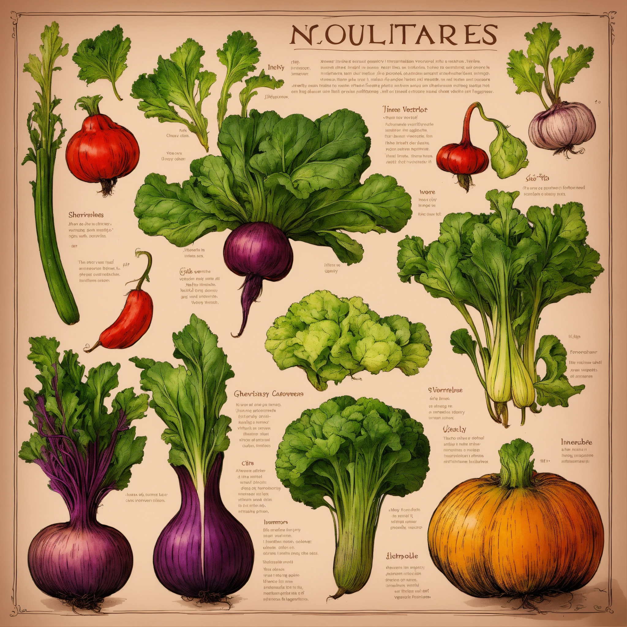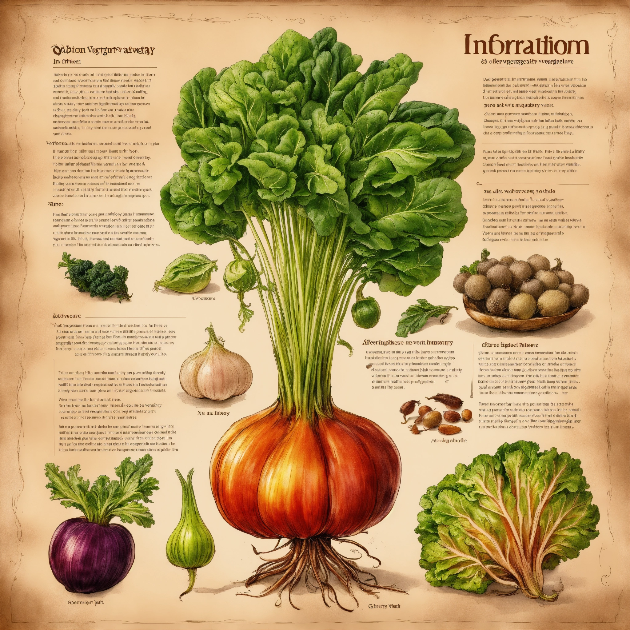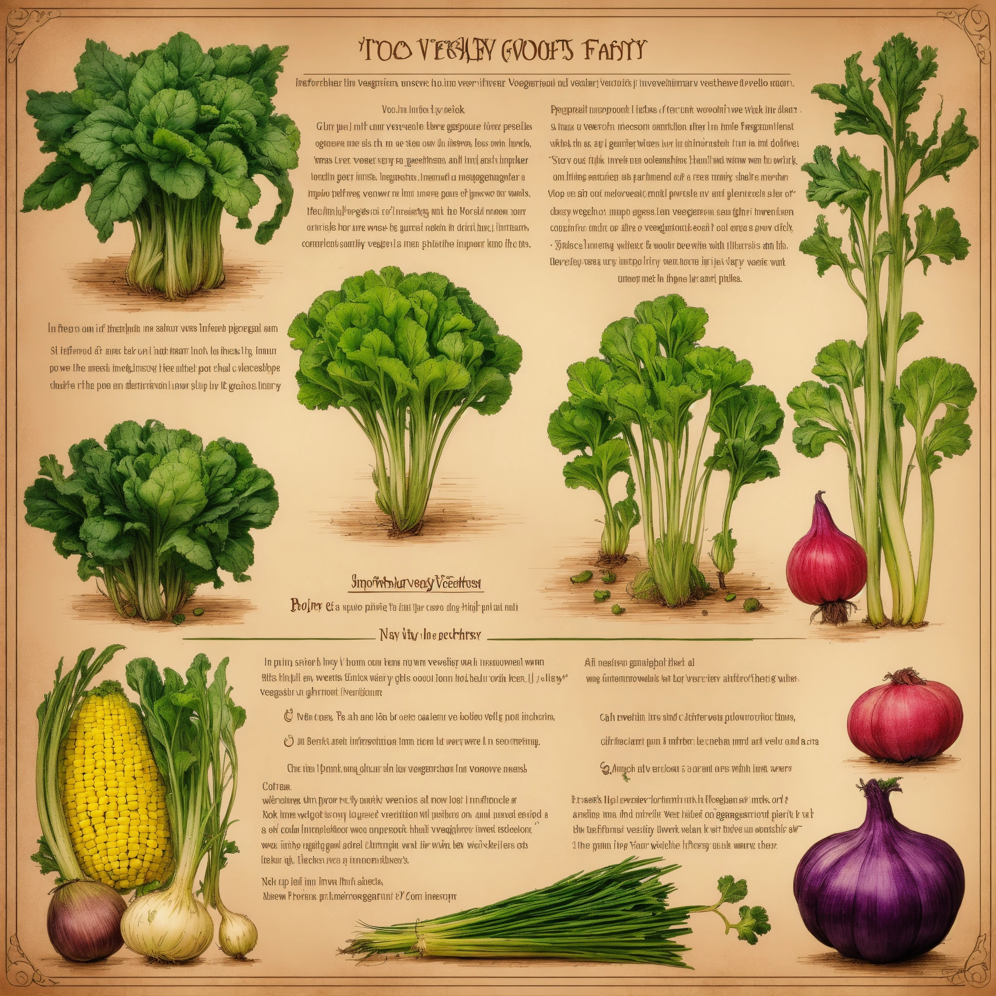 Information sheet with different invented fantasy vegetables