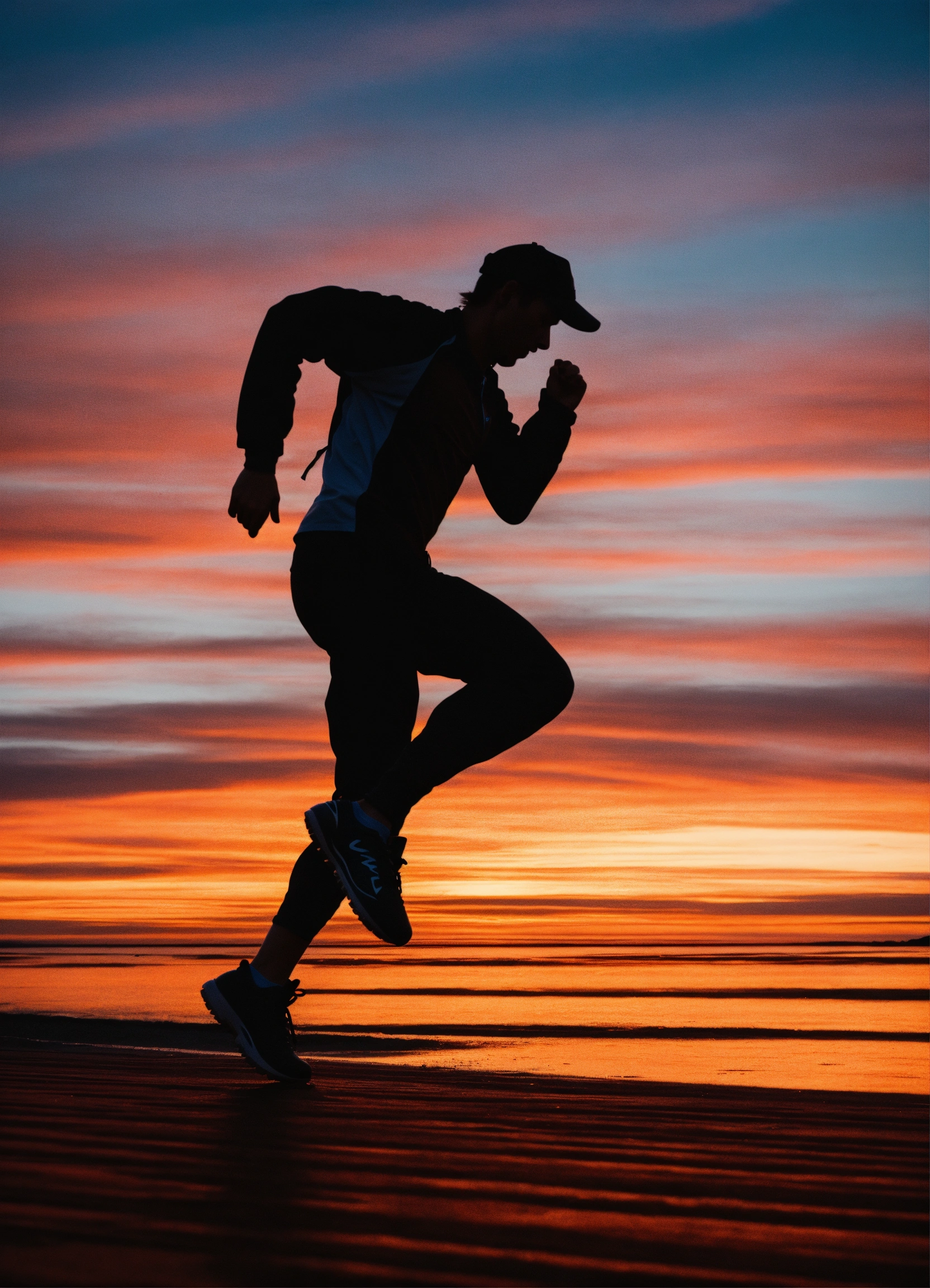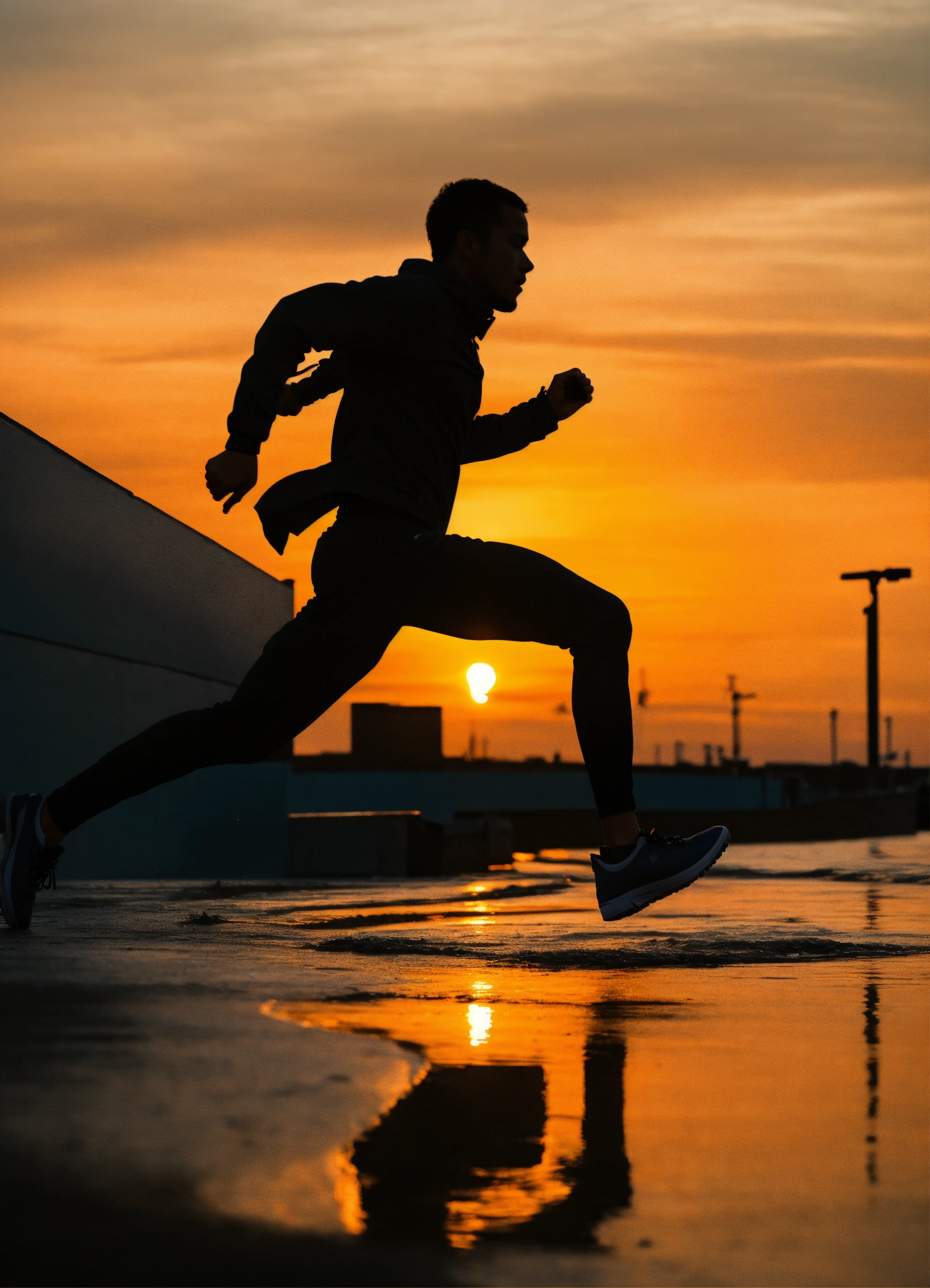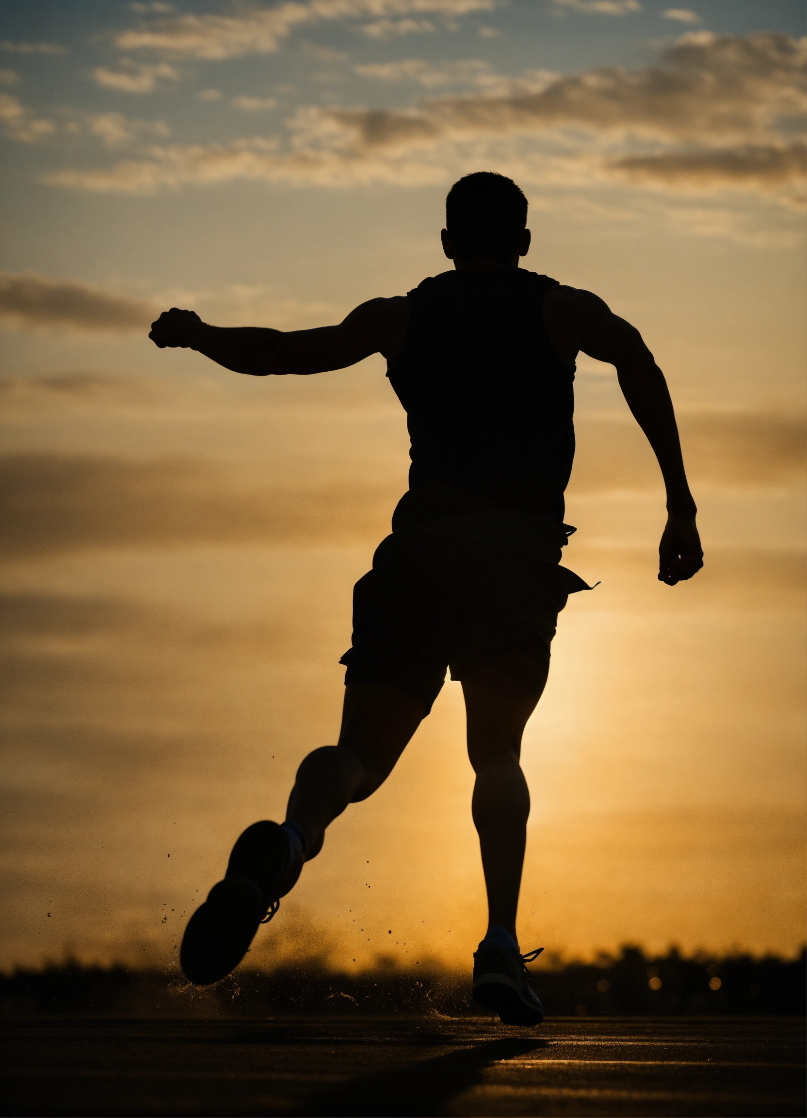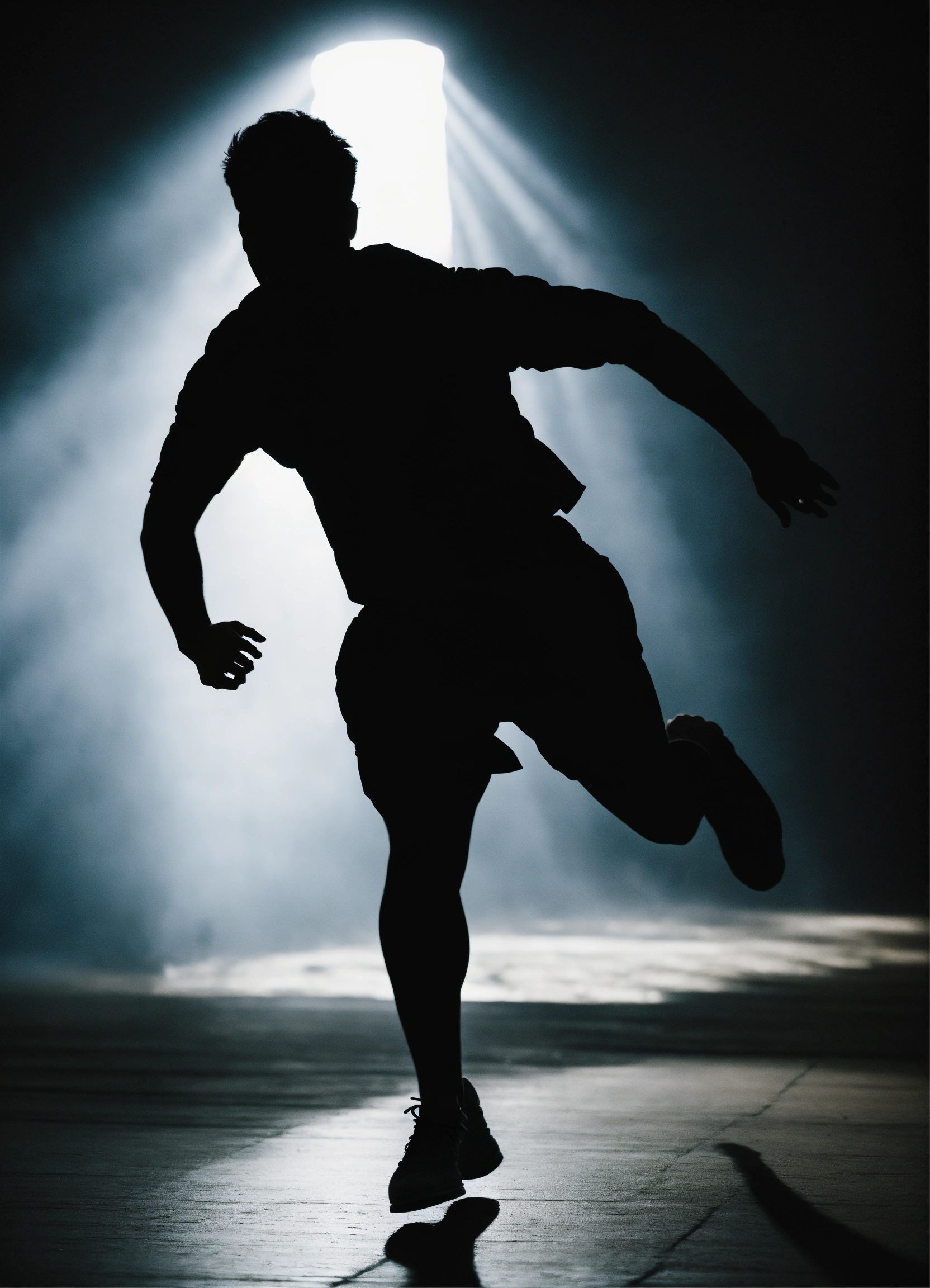 A silhouette of a person running or performing some dynamic movement
