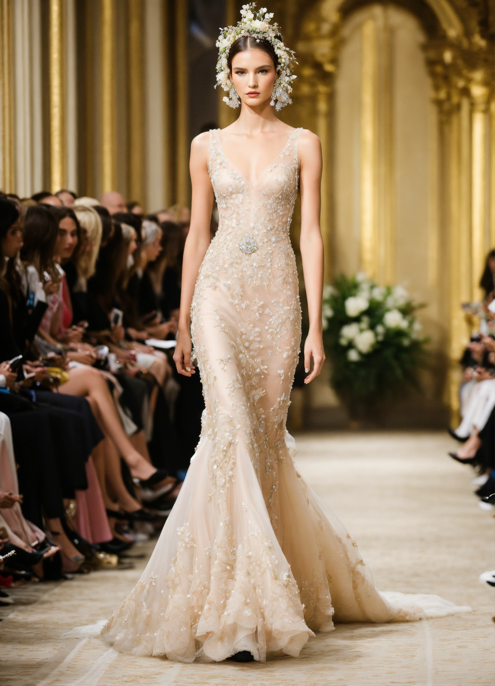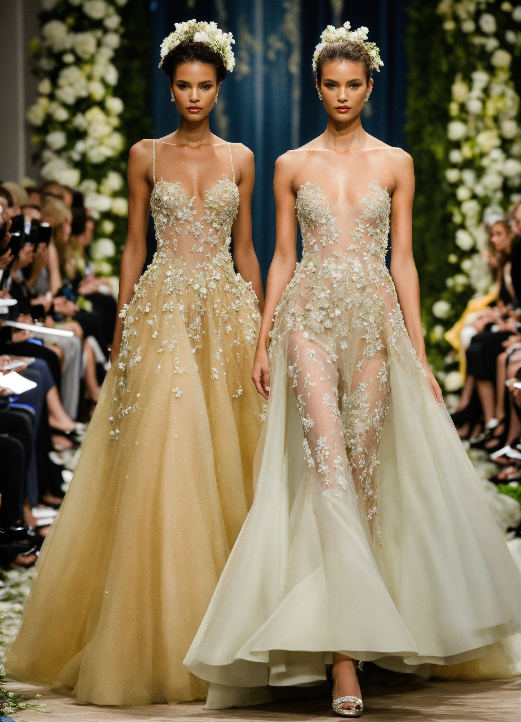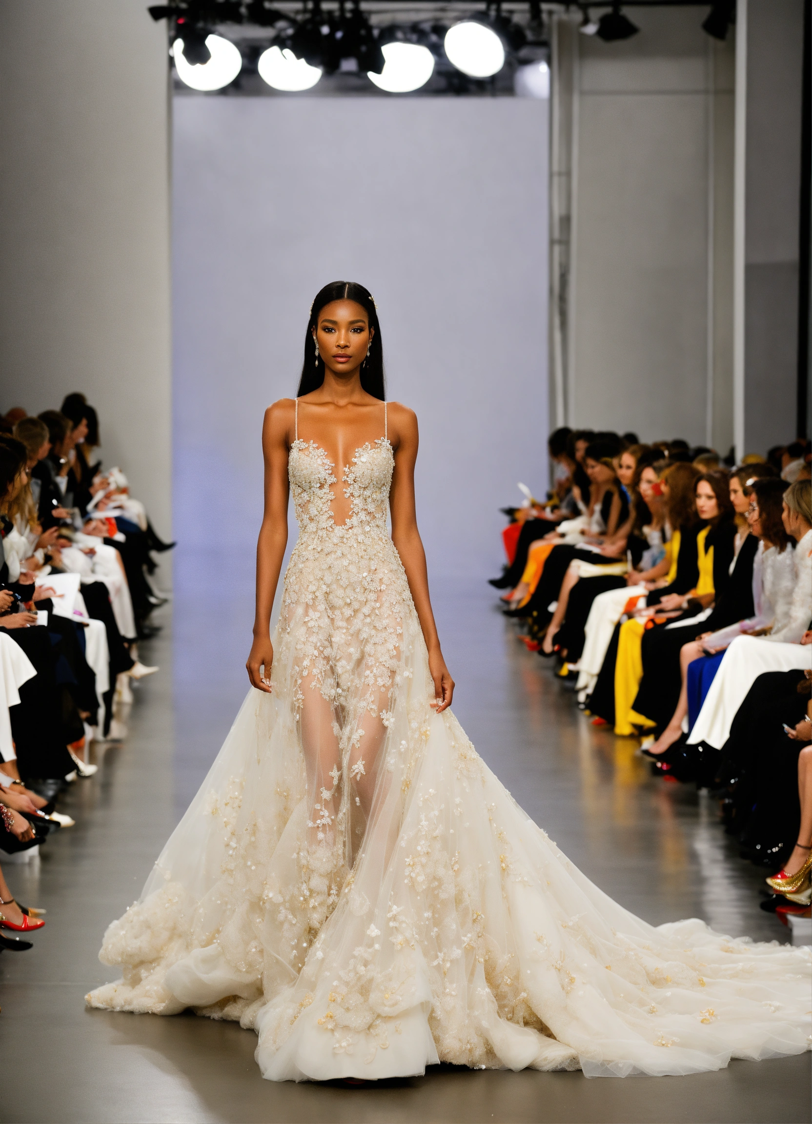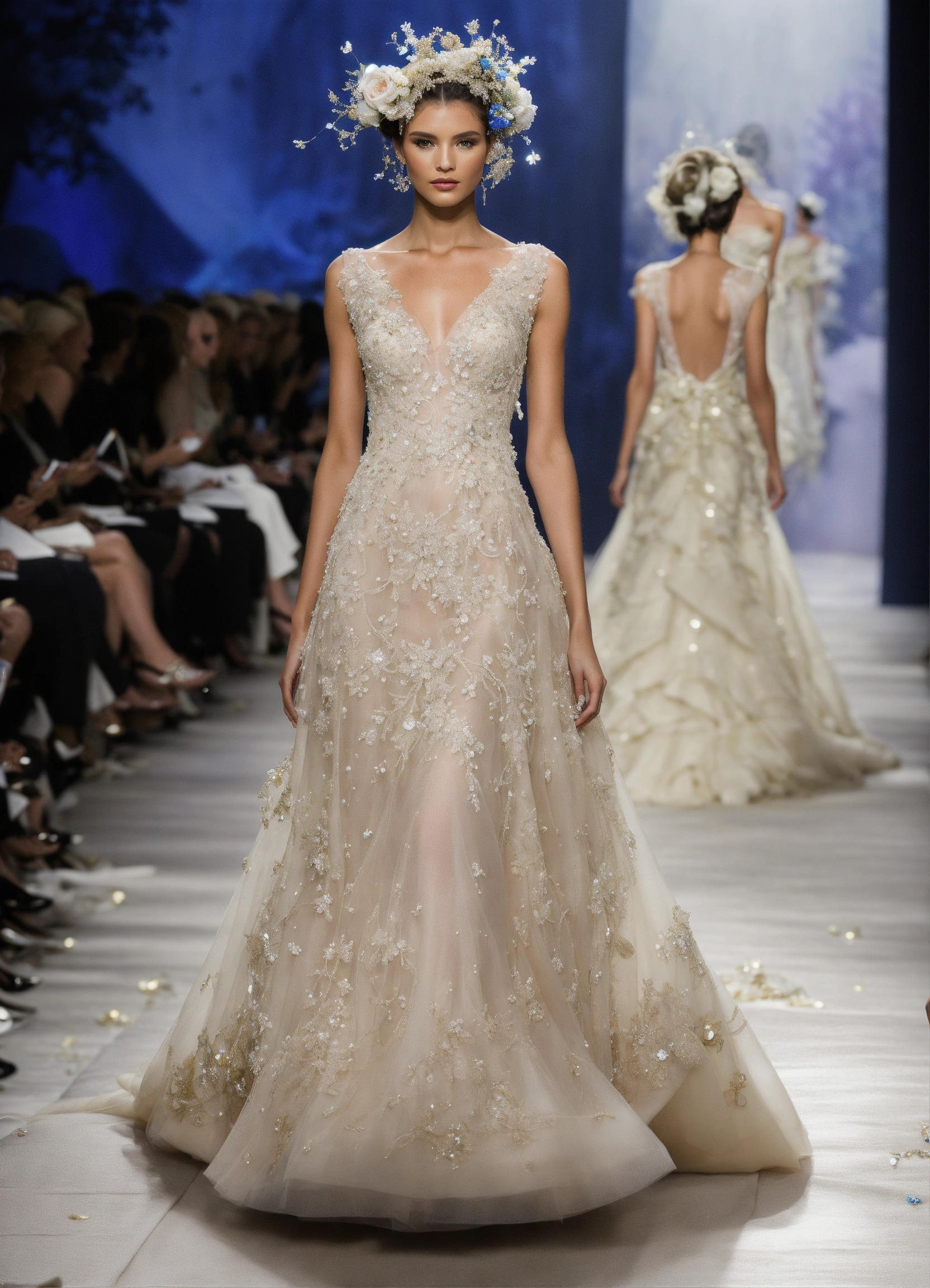 Models walking in a couture bridal expo, for monique lhuillier, year is 2050, history and fashion entwine, we are on the brink of collapse and aliens have joined earth. these designs need to incorporate and become a sign of the times, yet dont make the garments too wildly out there, they need to be wearable couture. finest embellishments, silks, laces, beadworks, crystals, etc. expensive