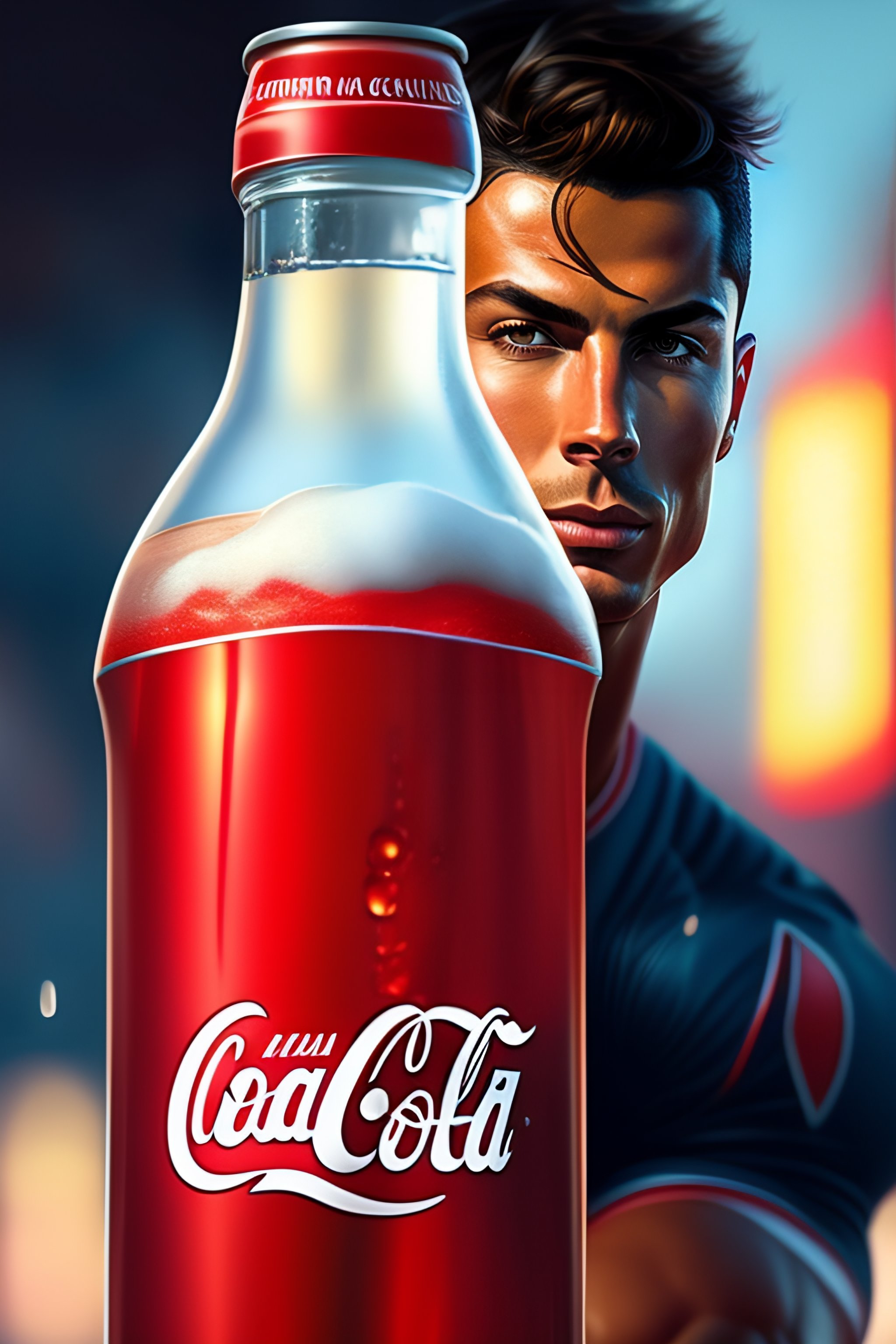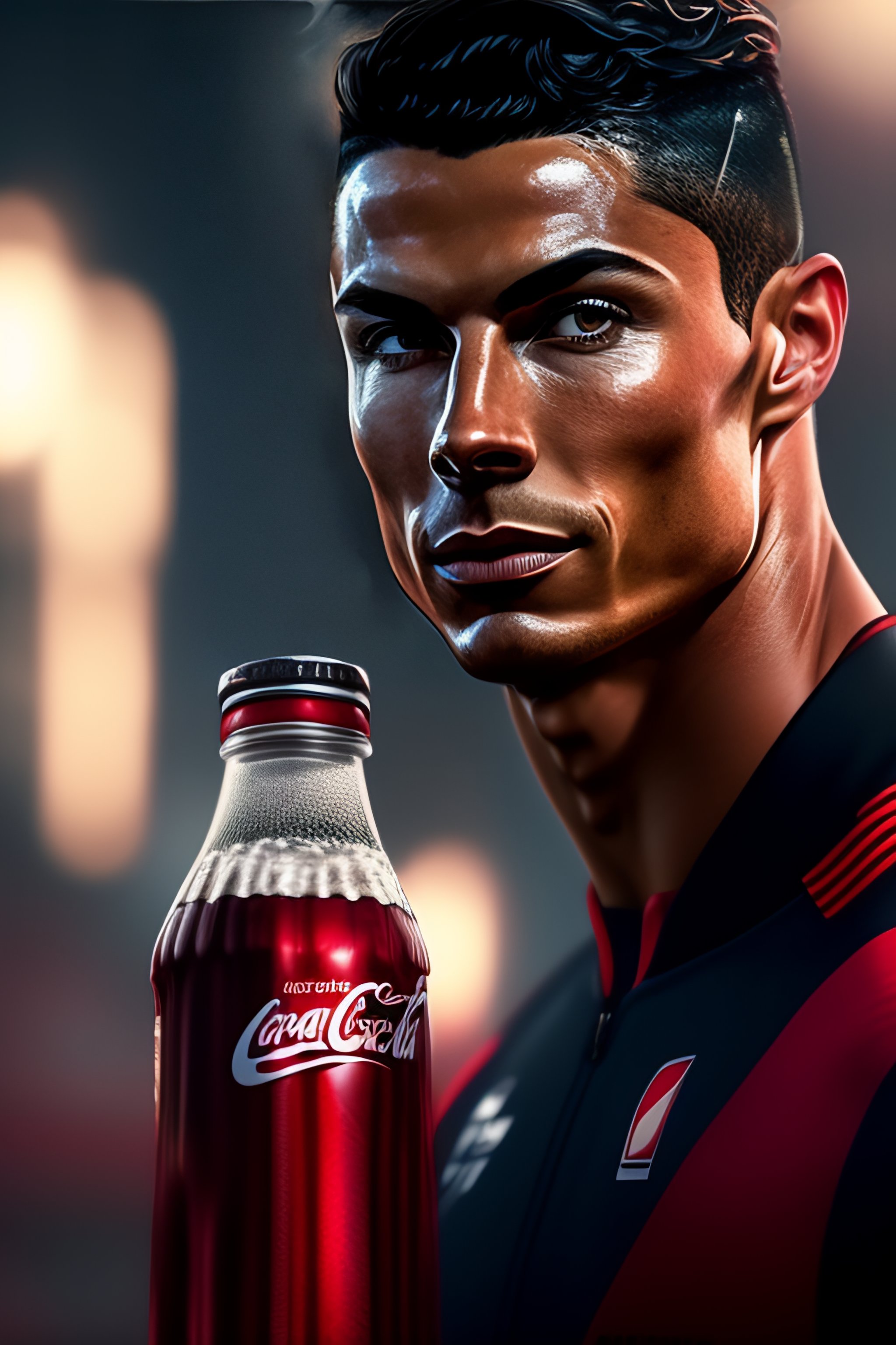 Cristiano ronaldo showing coca-cola in hand, 4k, coca-cola, water bottle, highly detailed, digital painting, artstation, concept art, smooth, sharp focus, illustration, unreal engine 5, 8 k, art by and greg rutkowski and alphonse mucha