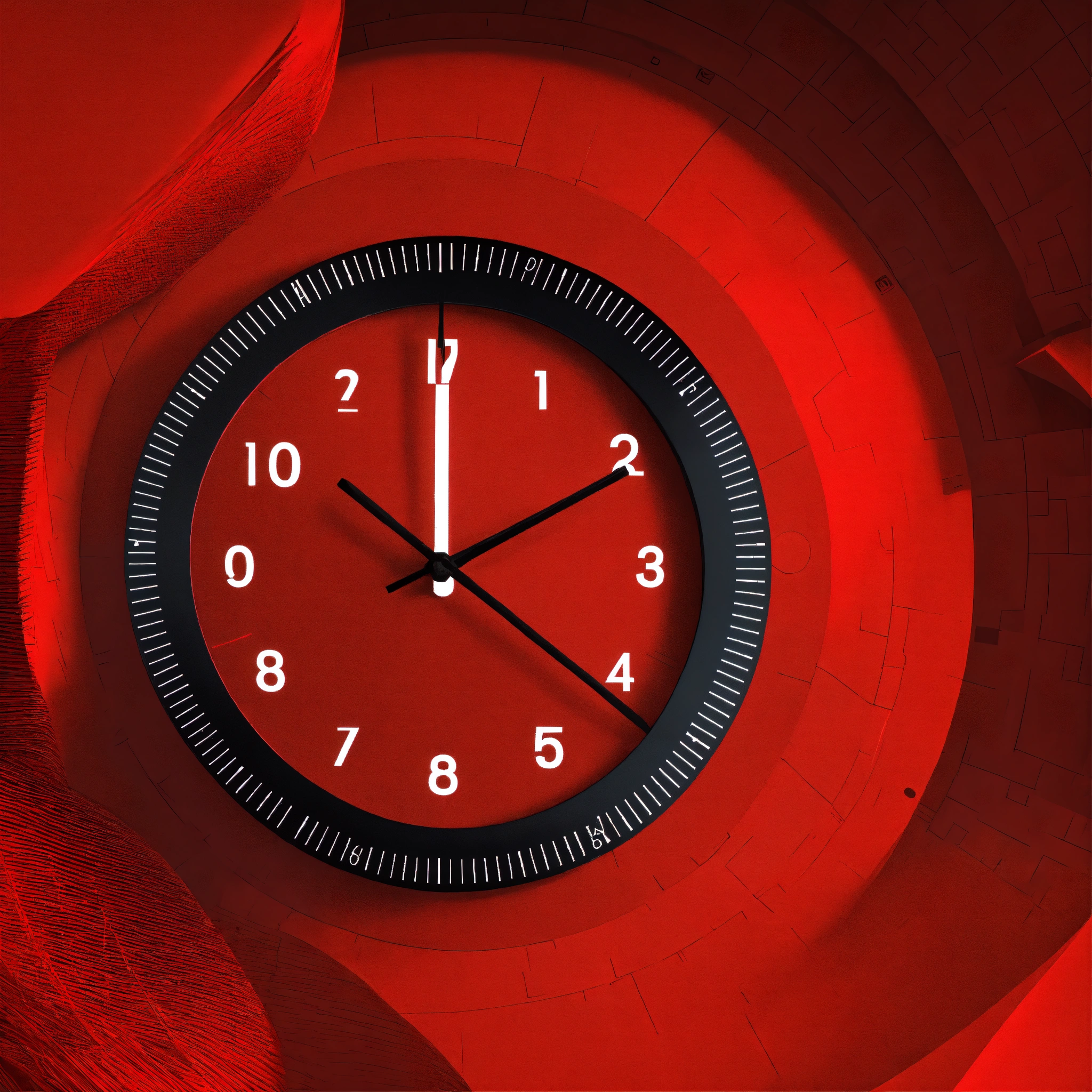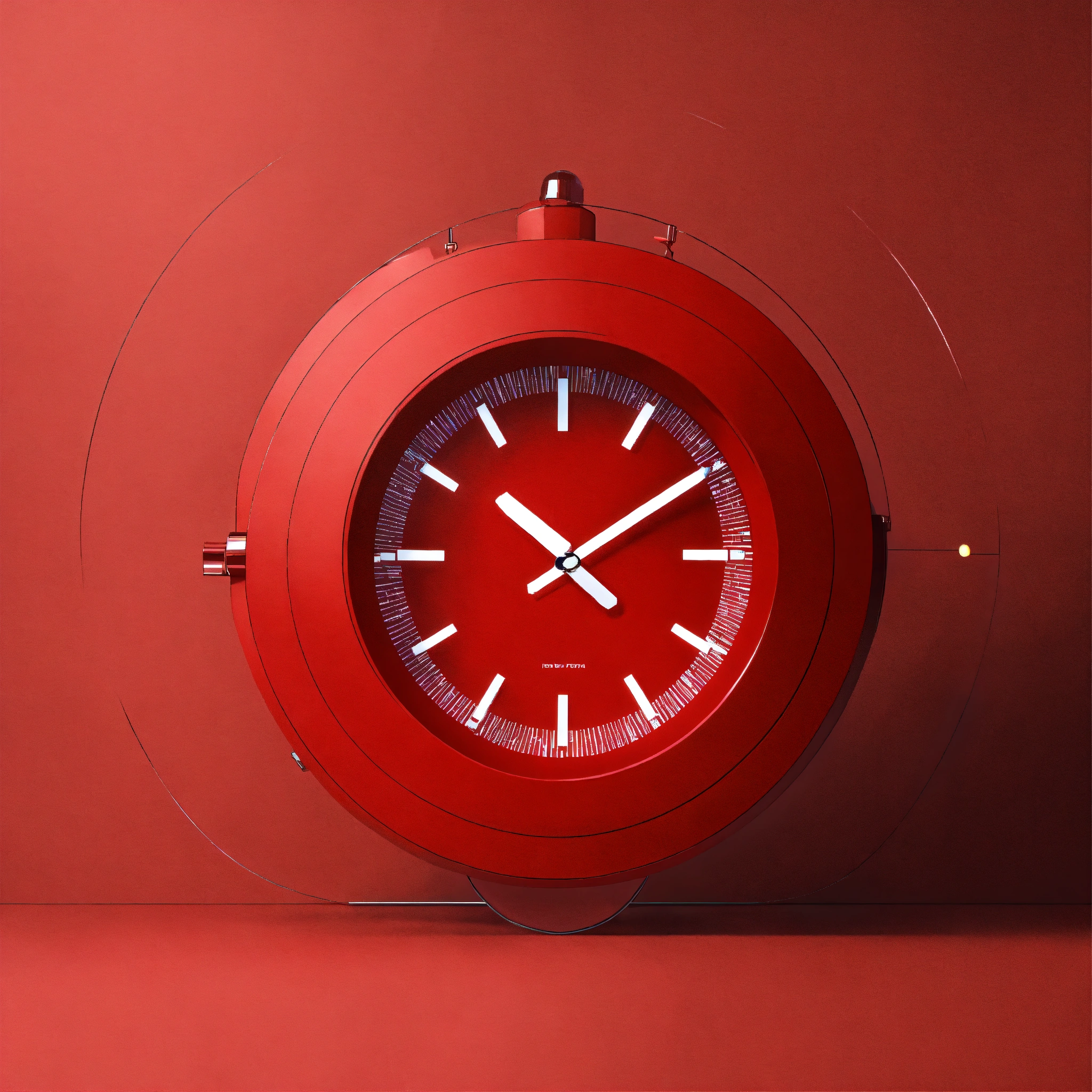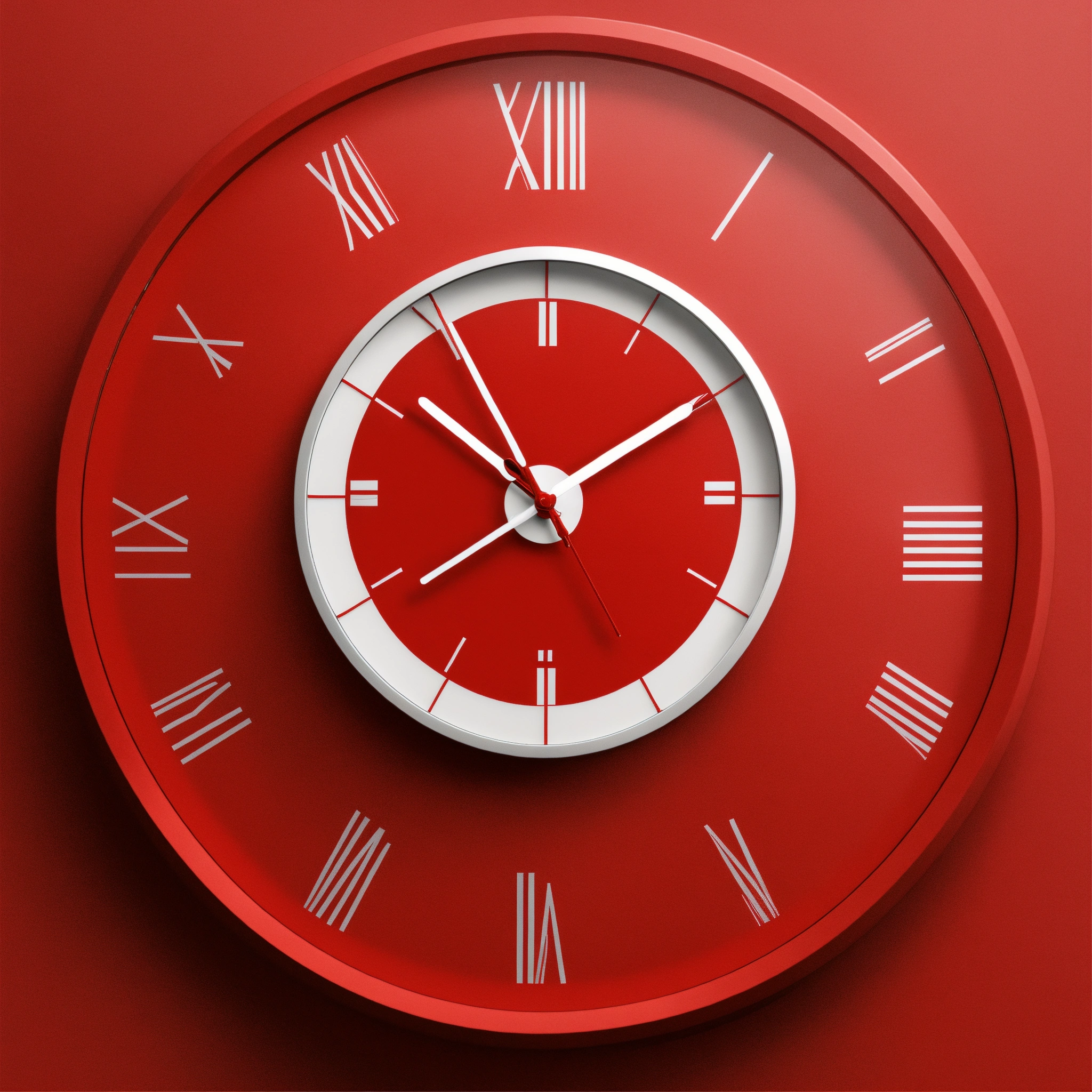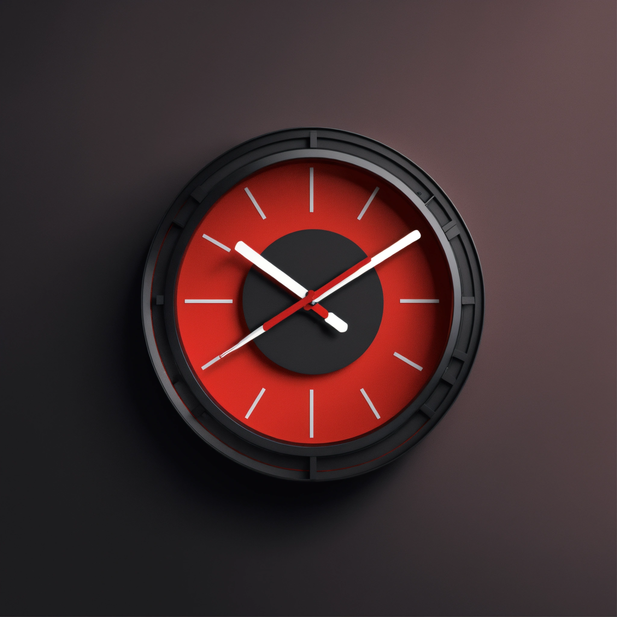 Clock that moves, logo, minimalist design, design for a logistics company, red color, simulation of clock movement.