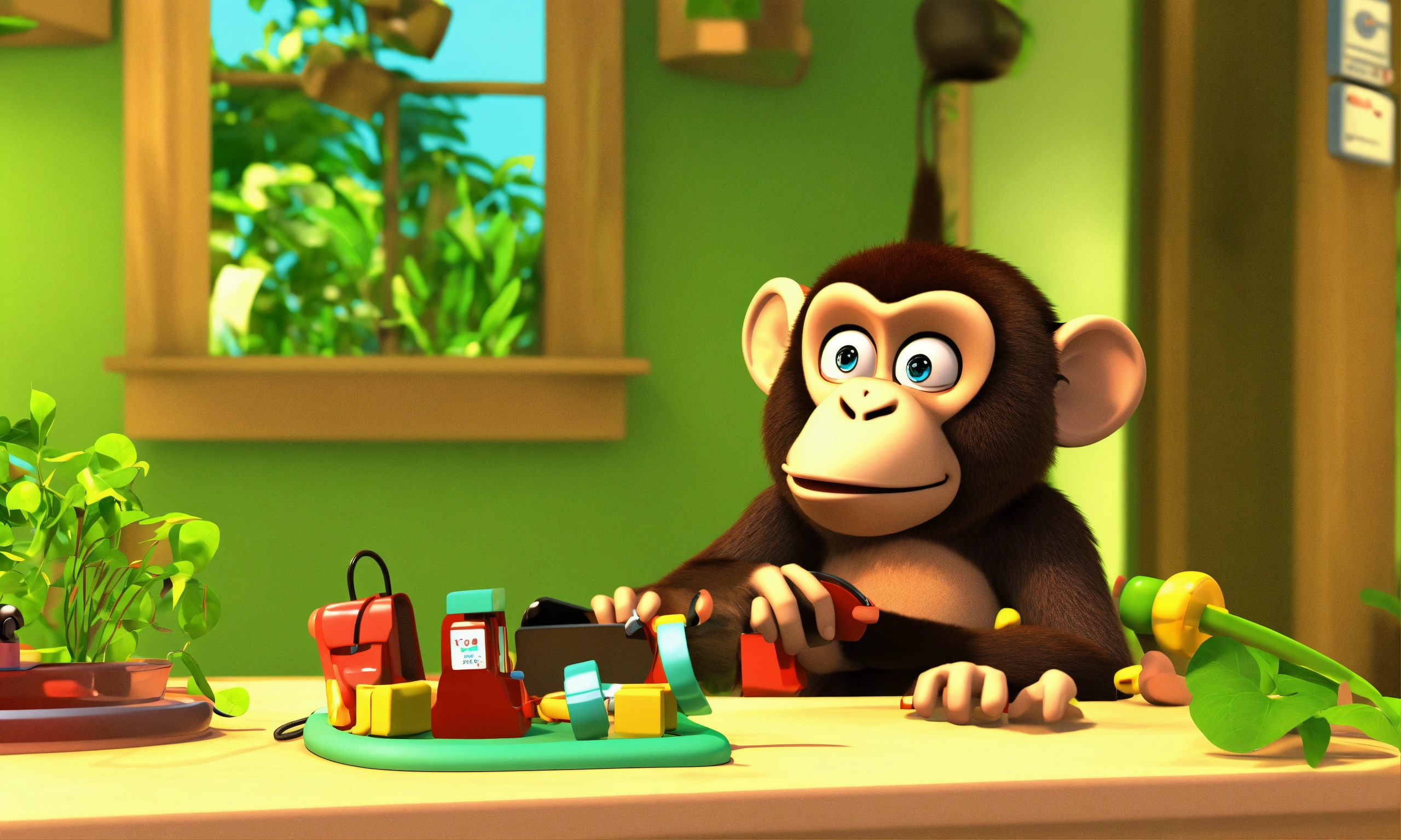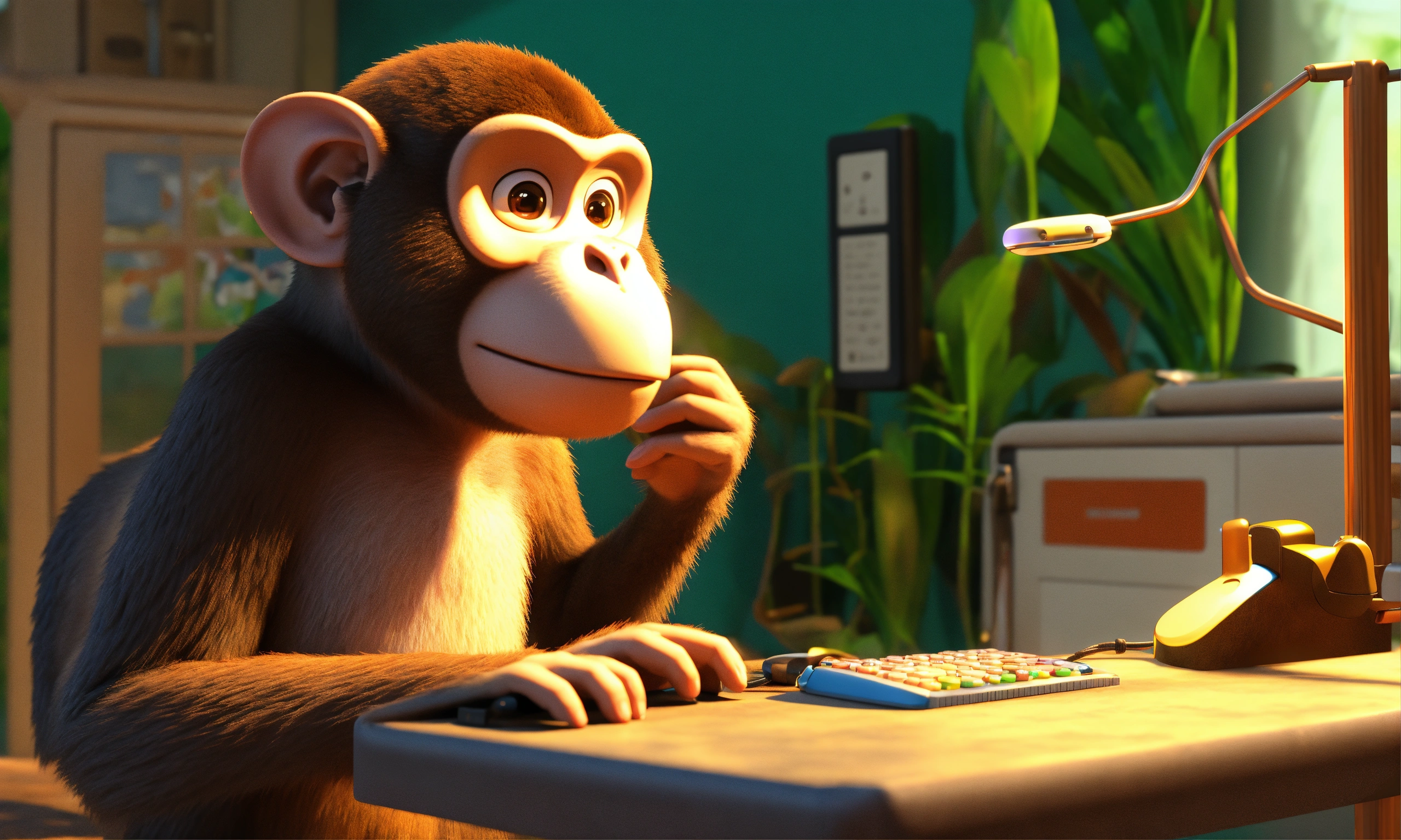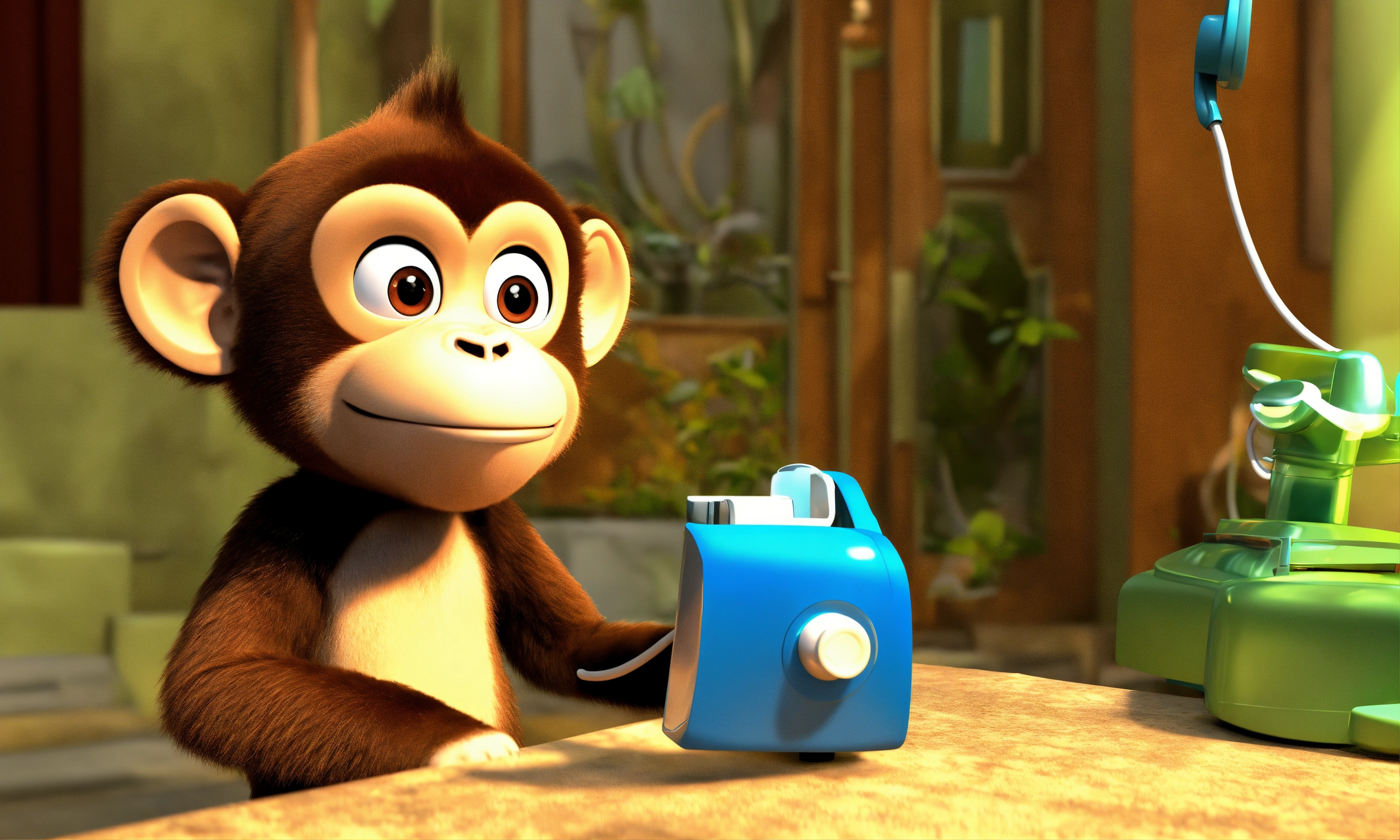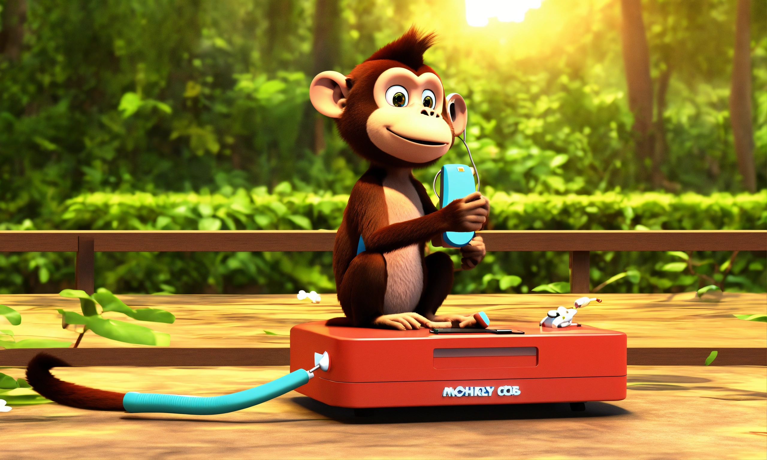Mother monkey calls the doctor monkey on the phone