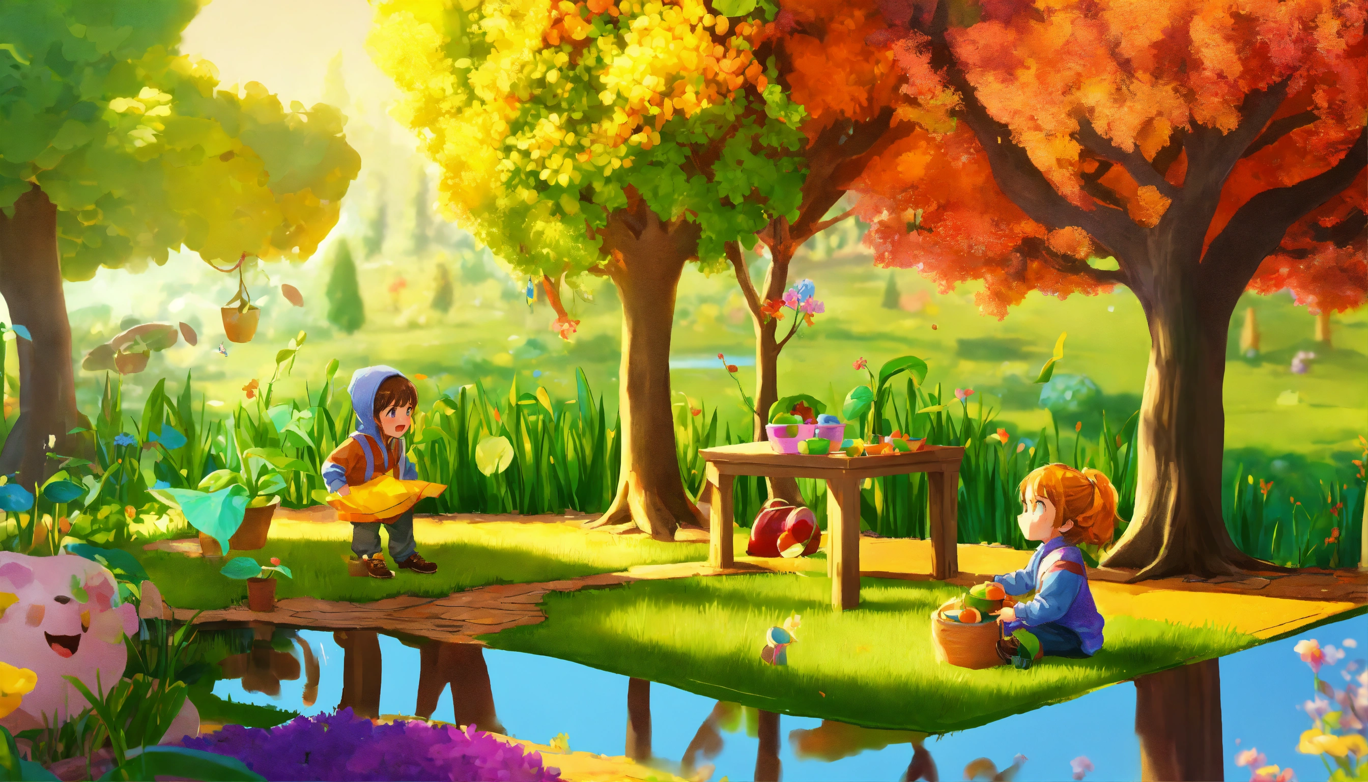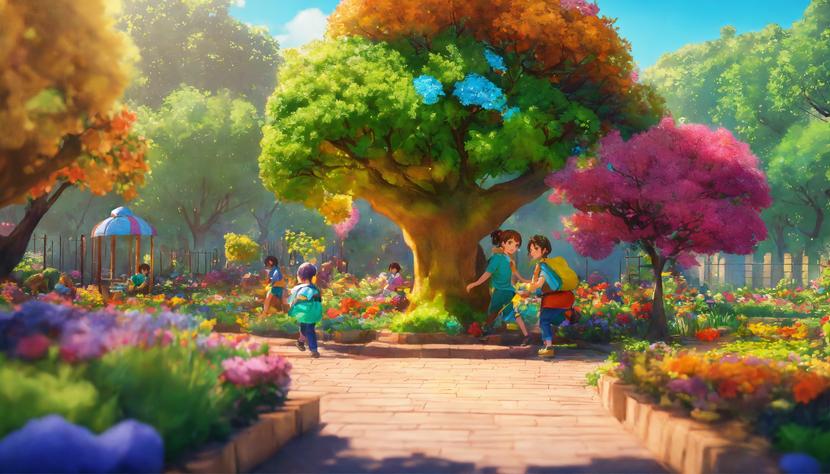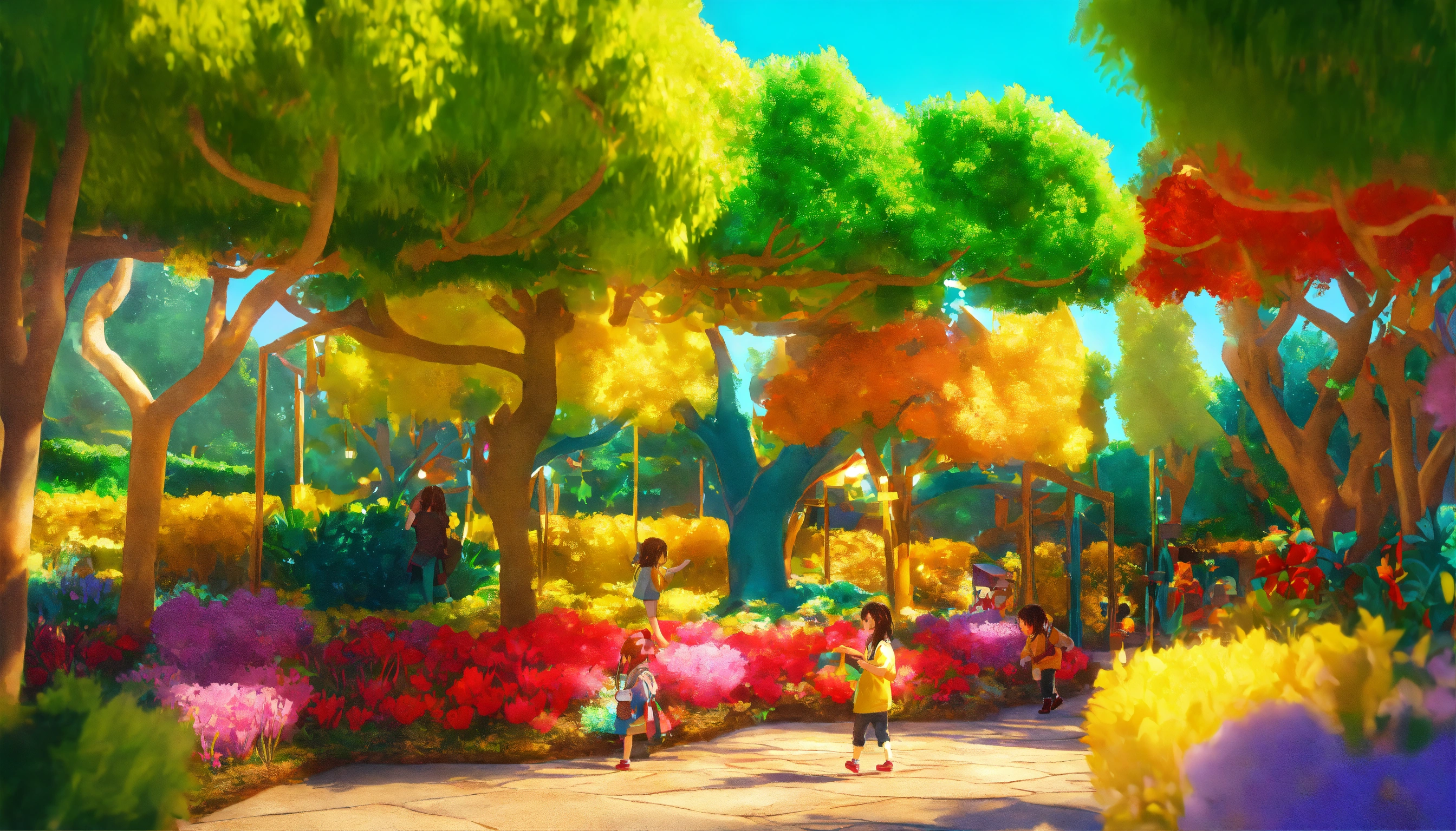 Crea una escena en la que varios niños plantan árboles en un jardín comunitario. sus caras reflejan la alegría y la esperanza mientras cuidan de las plántulas, 8k vibrante de colores, detailed, painted.