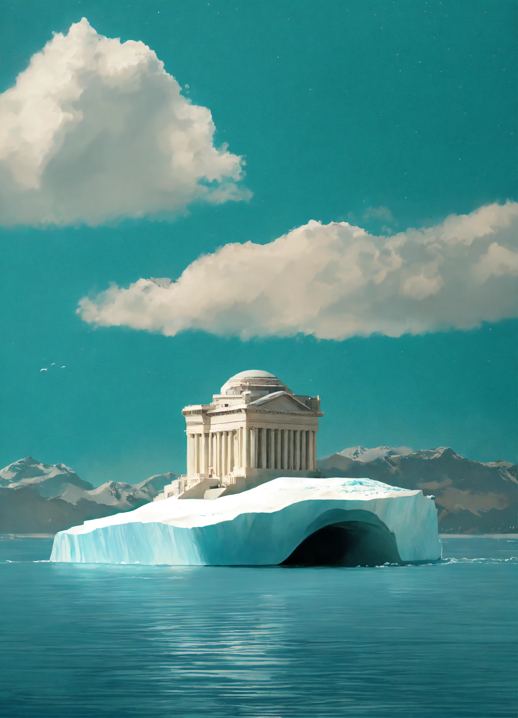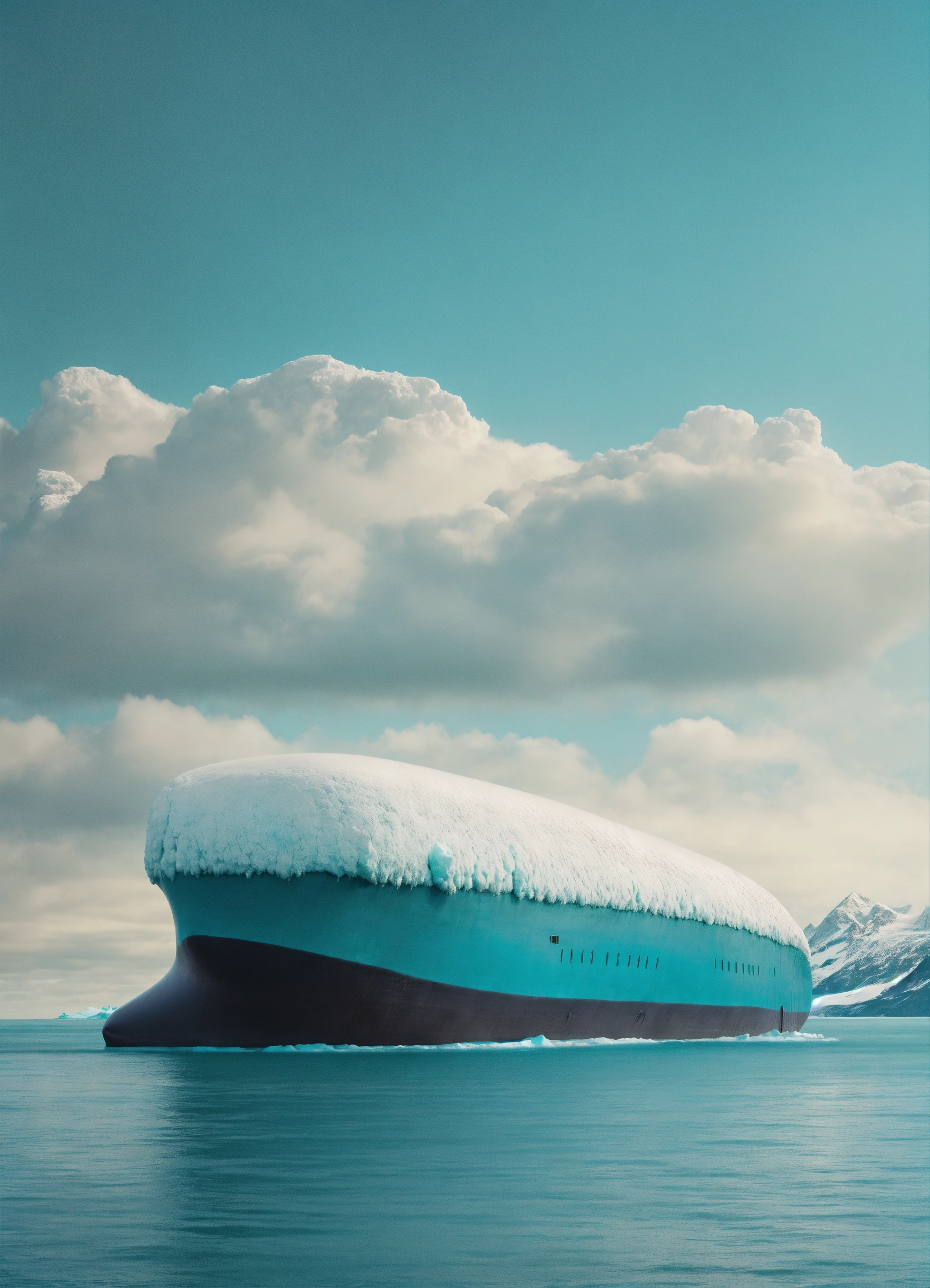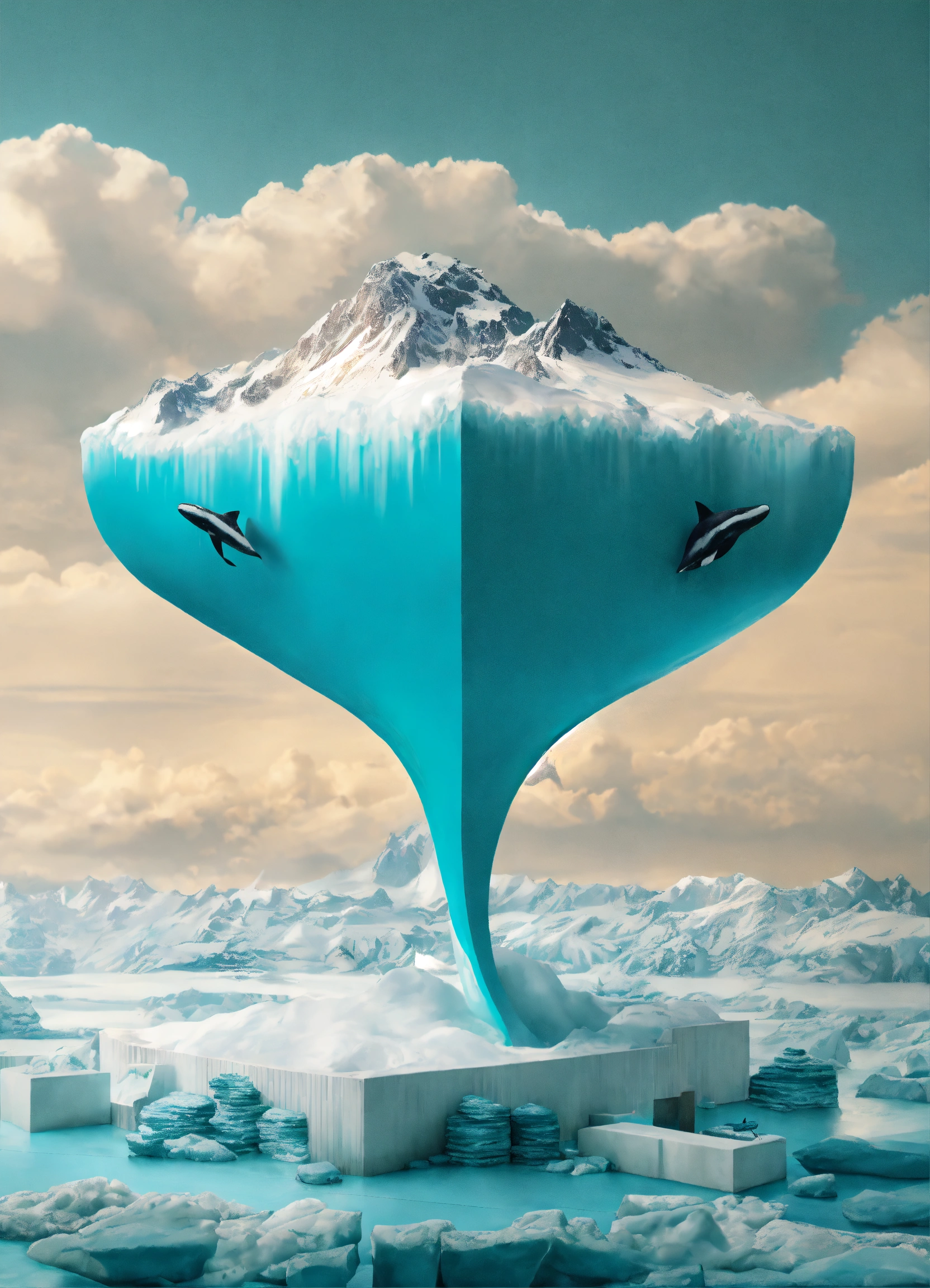 Minimalist the fifth element liminal memphis chic deco arte povera panorama glacier snow ice ocean cloud sky aquarium cotton turquoise blue berg 32k titanic giant whale realistic