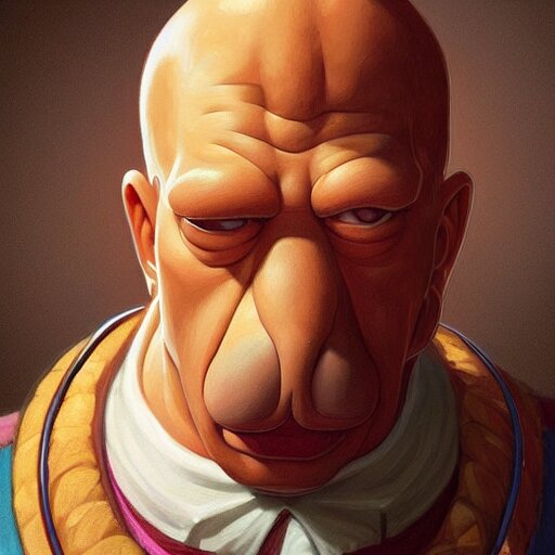 Portrait of homer simpson, d & d, fantasy, intricate, elegant, highly detailed, digital painting, artstation, concept art, smooth, sharp focus, illustration, art by artgerm and greg rutkowski and alphonse mucha