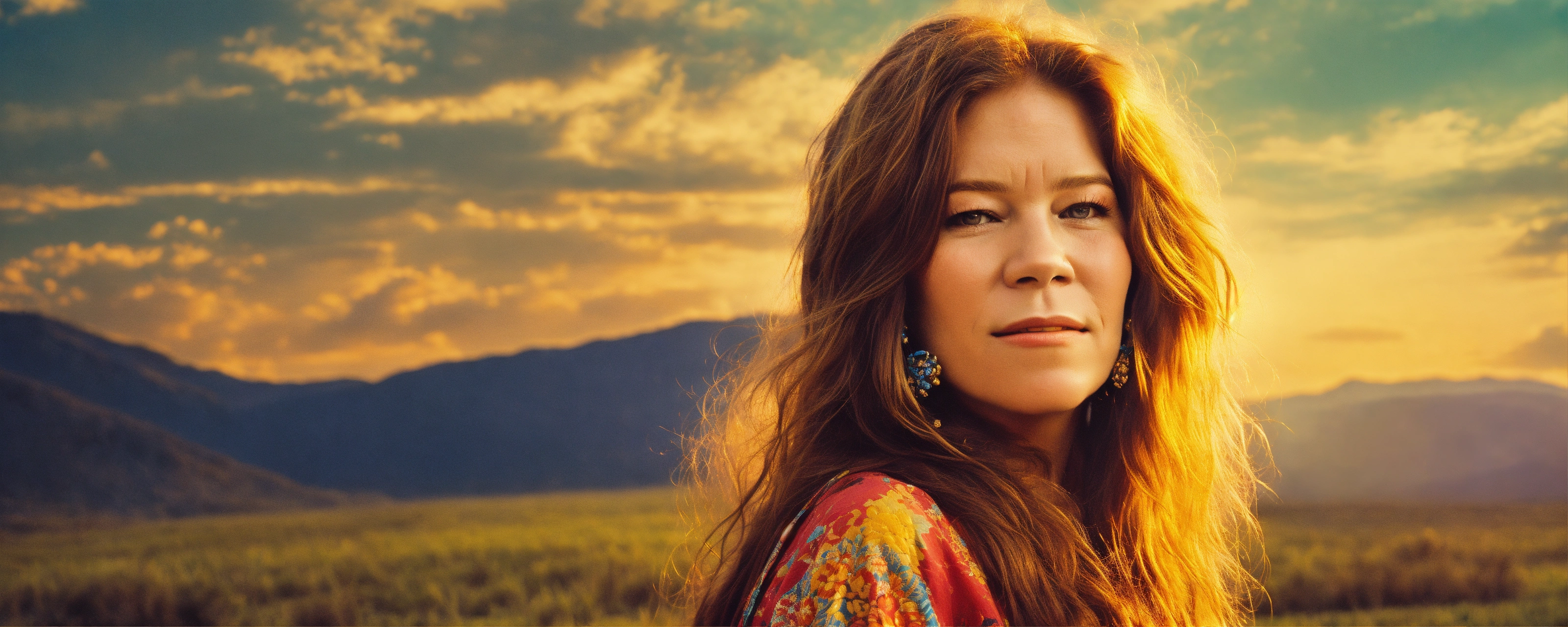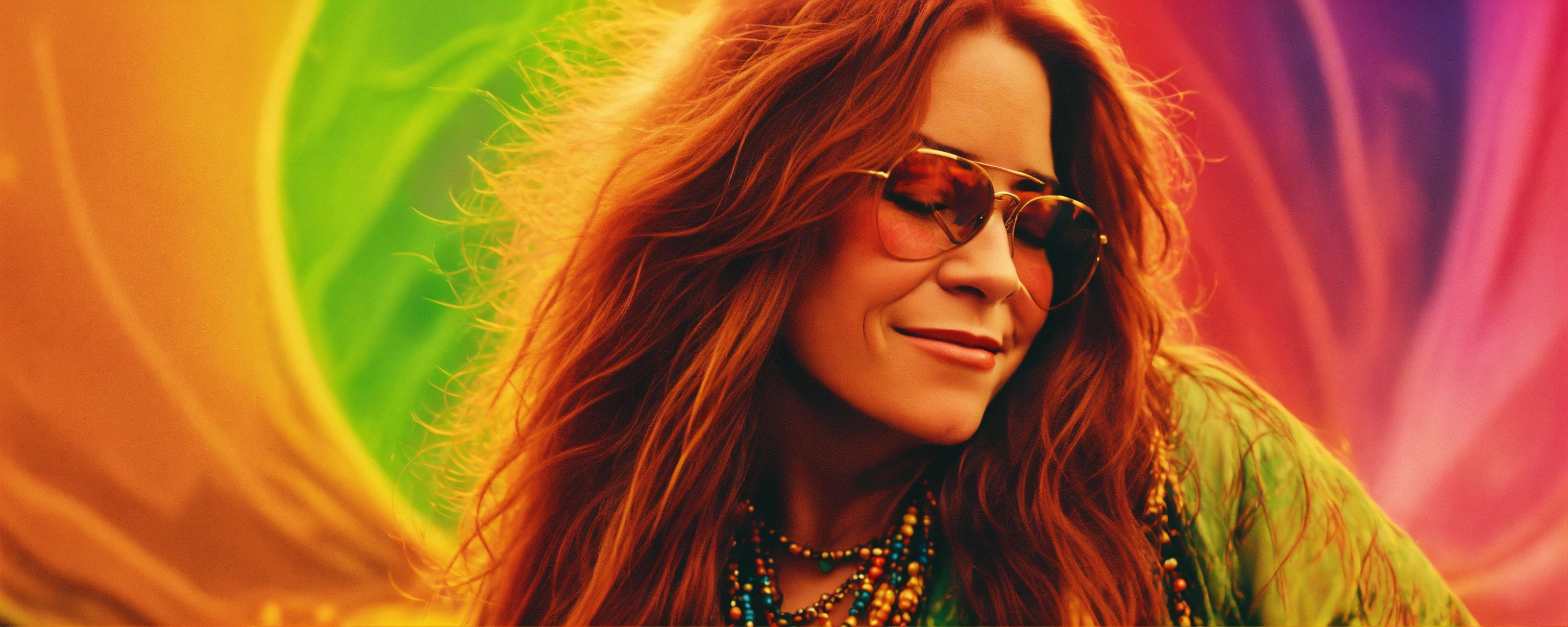 Blissful, calming aura brand symbol, unmatched clarity, janis joplin, vintage picture, best chill music mix