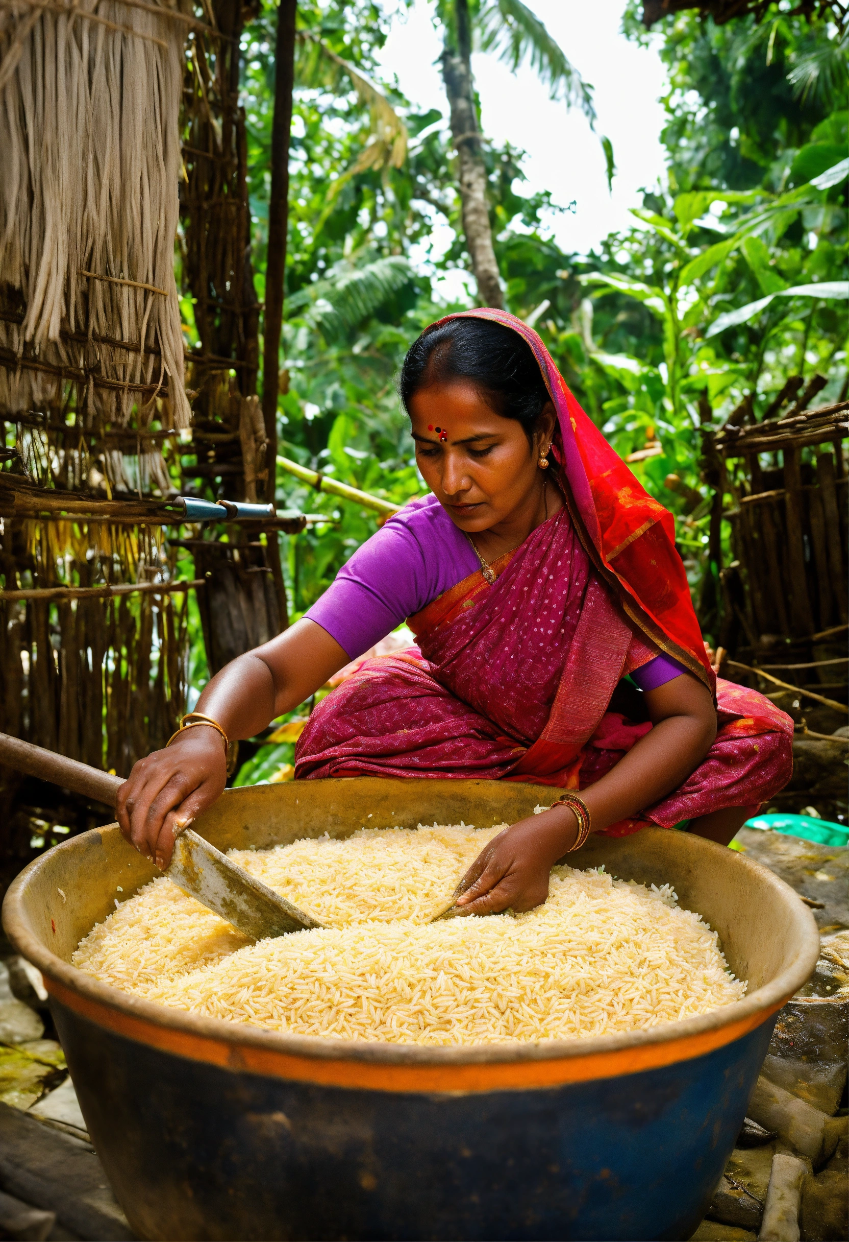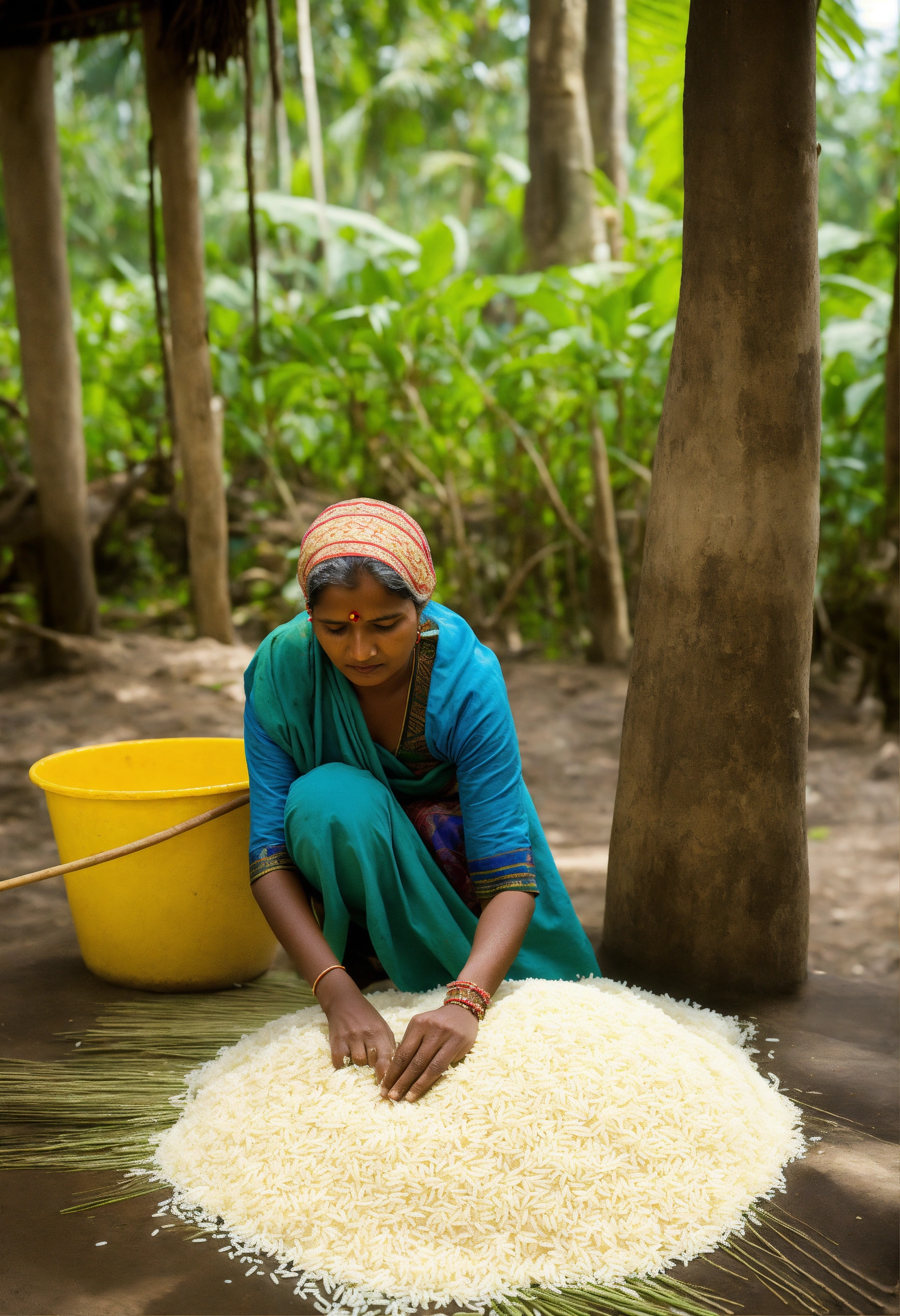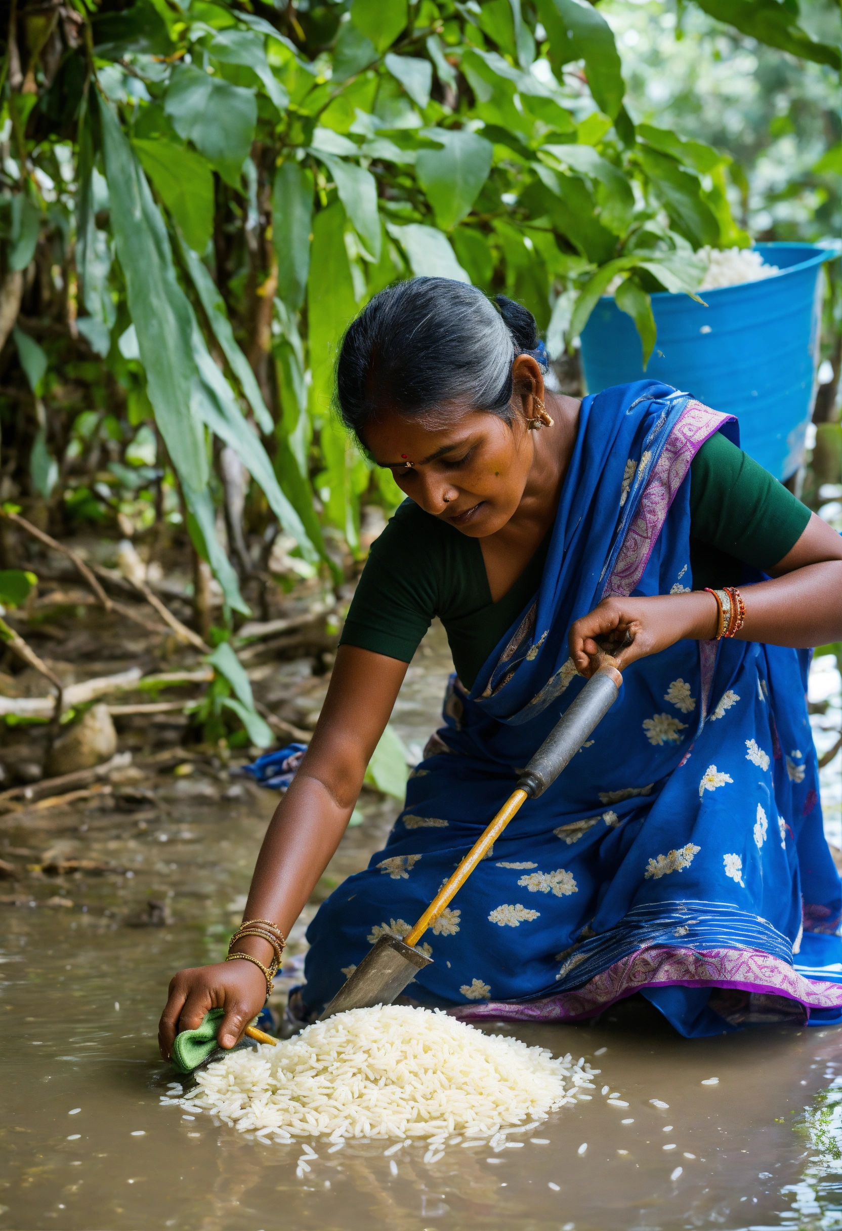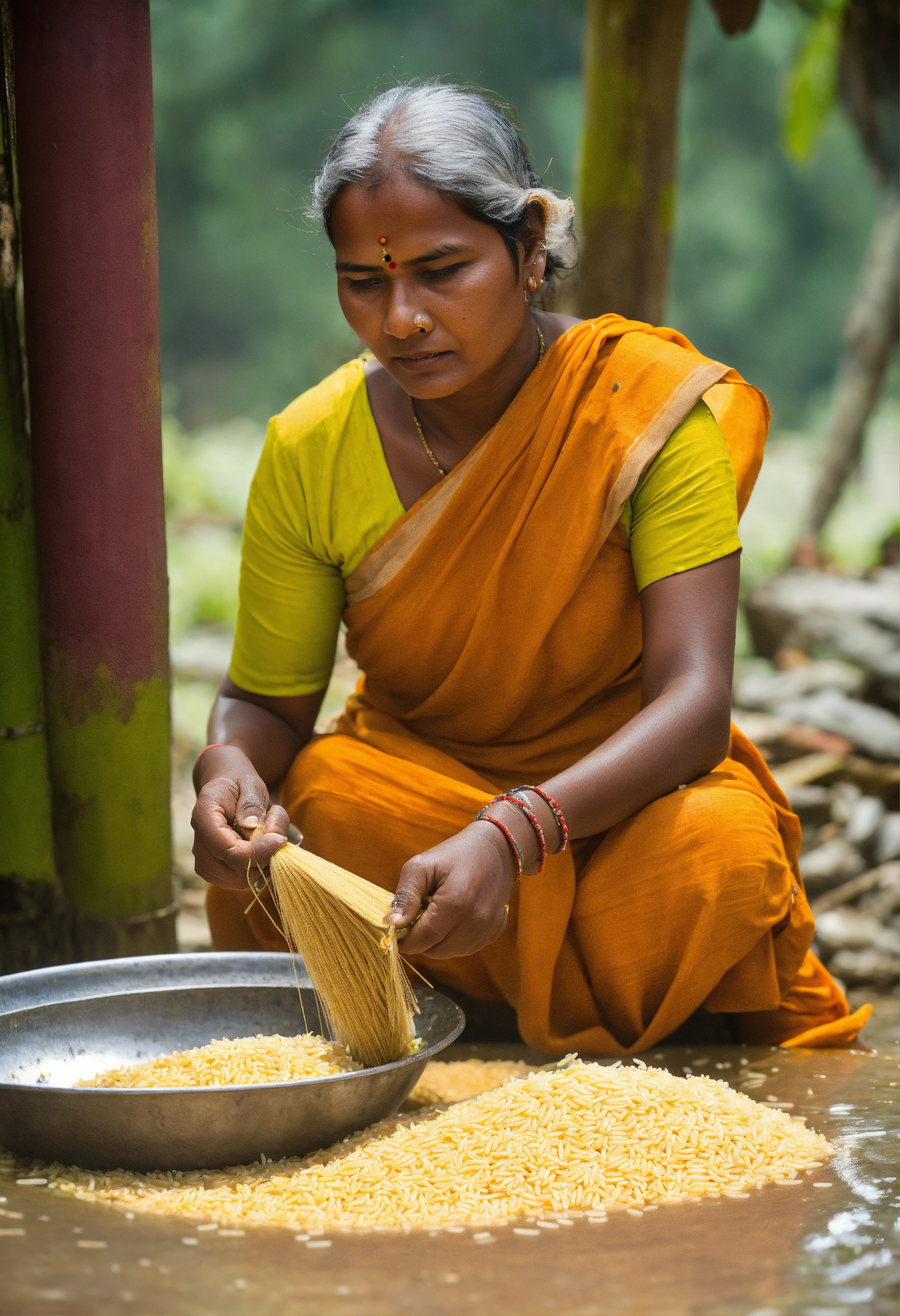 Indian woman cleaning rice