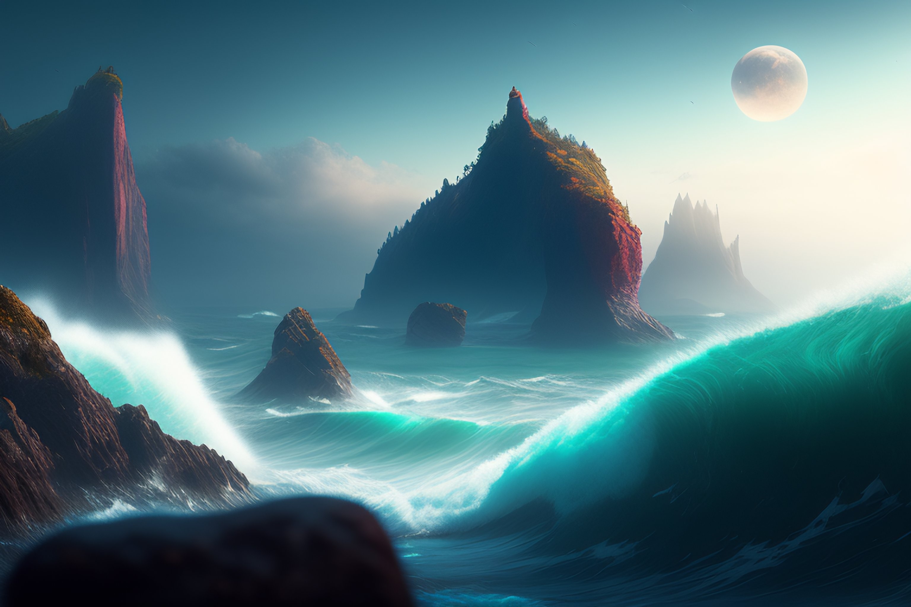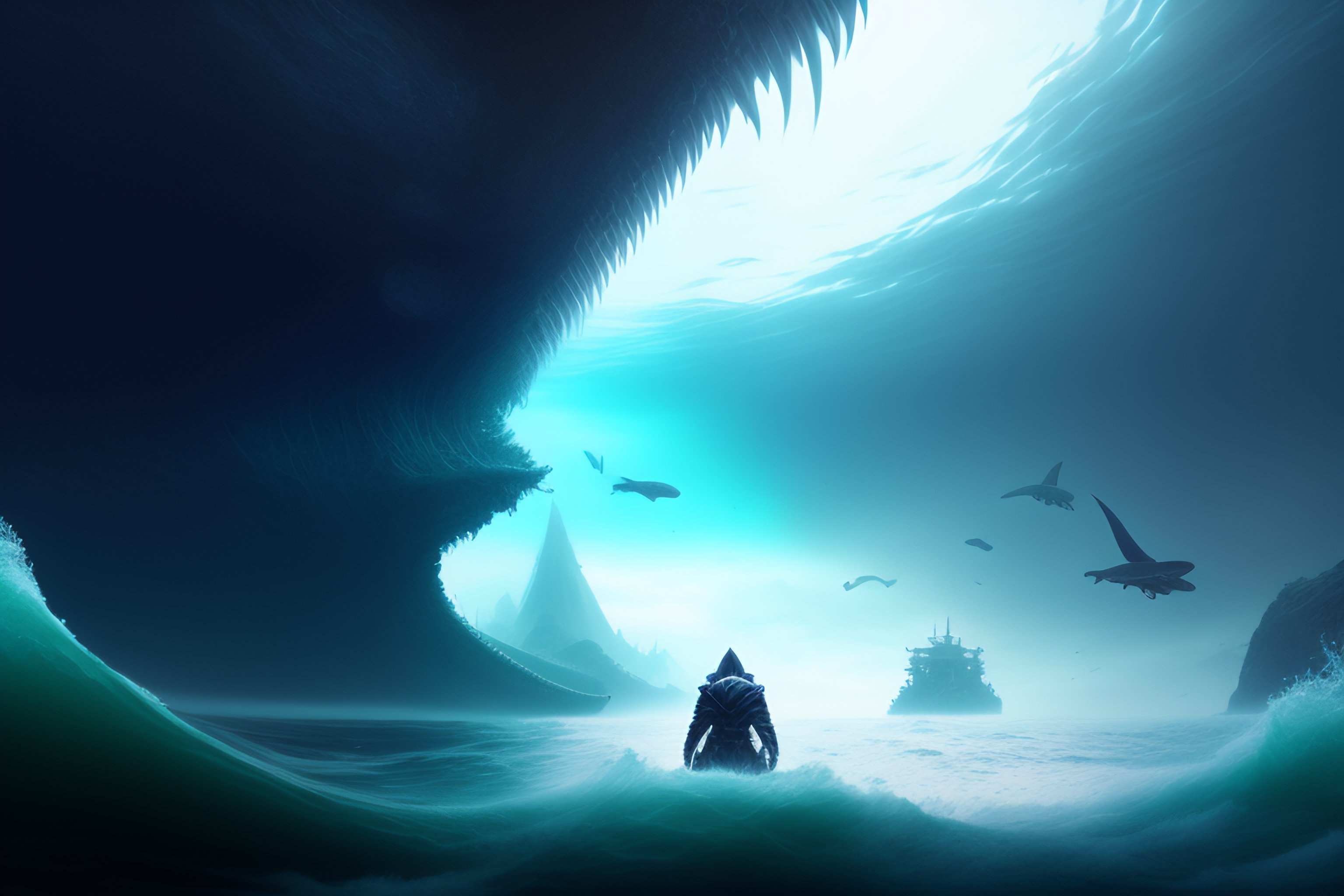 Huge vampire giants emerge from the ocean, fantasy art, johan grenier, hyperrealism, greg rutkowski, cinema 4d, cinema 4d, national geographic photo, digital painting, matte painting, beautiful, photorealistic, vibrant, eldritch, detailed, complex, colorful, cute