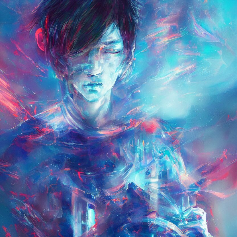 # abstract painting of a # megical # boy, # mist # magic # spell, by yoshitaka amano and alena aenami