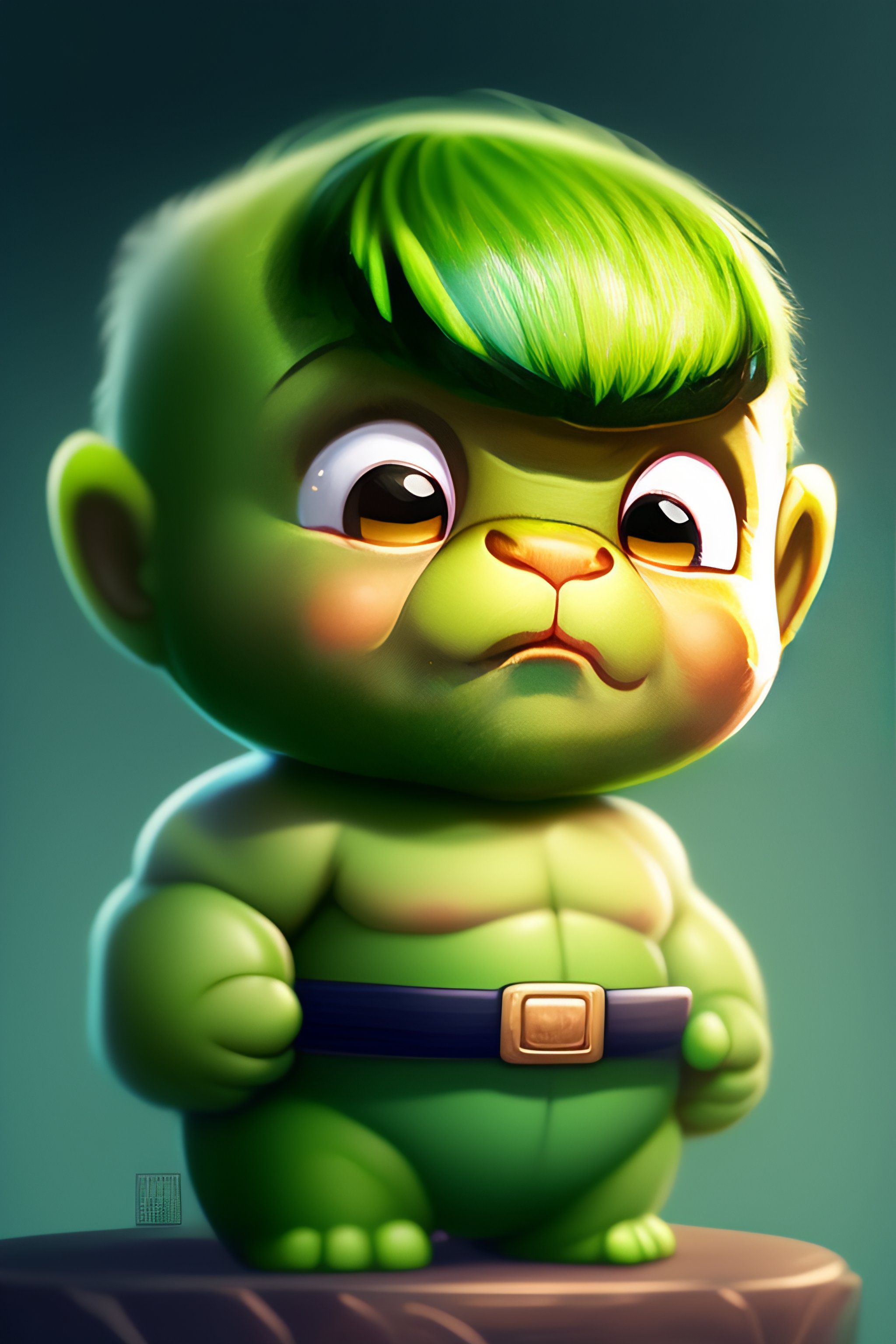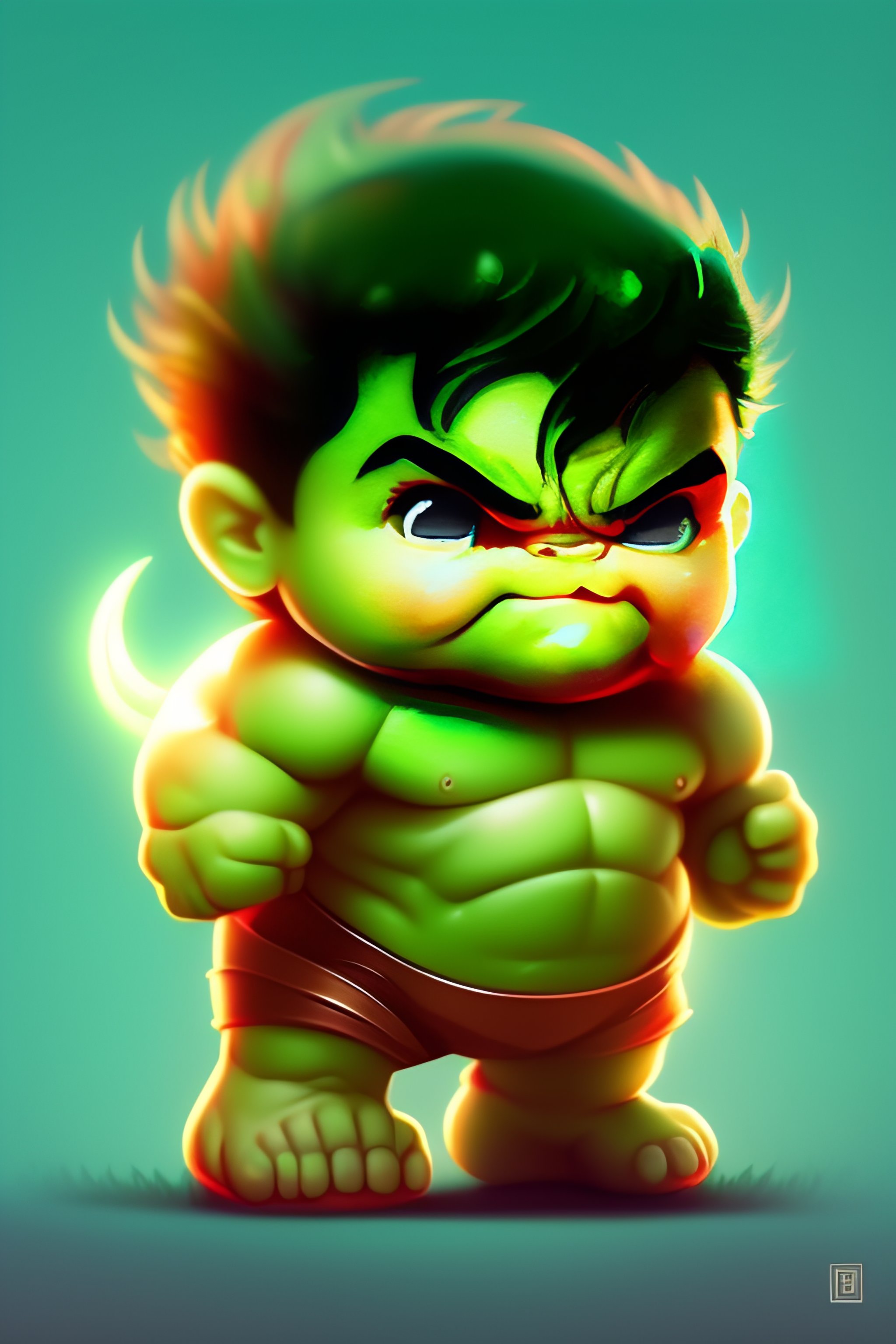 Cute and adorable cartoon hulk baby, fantasy, dreamlike, surrealism, super cute, trending on artstation