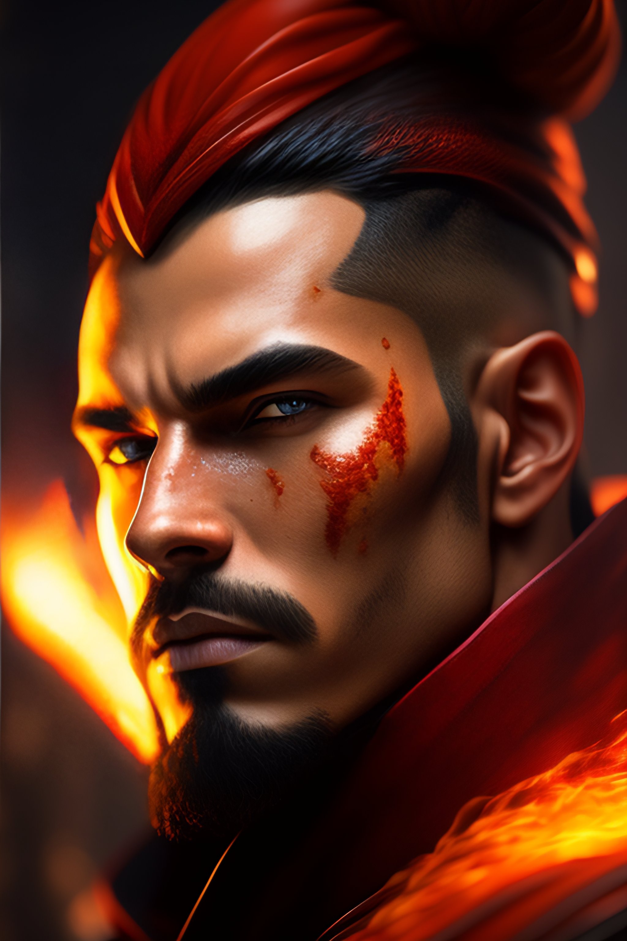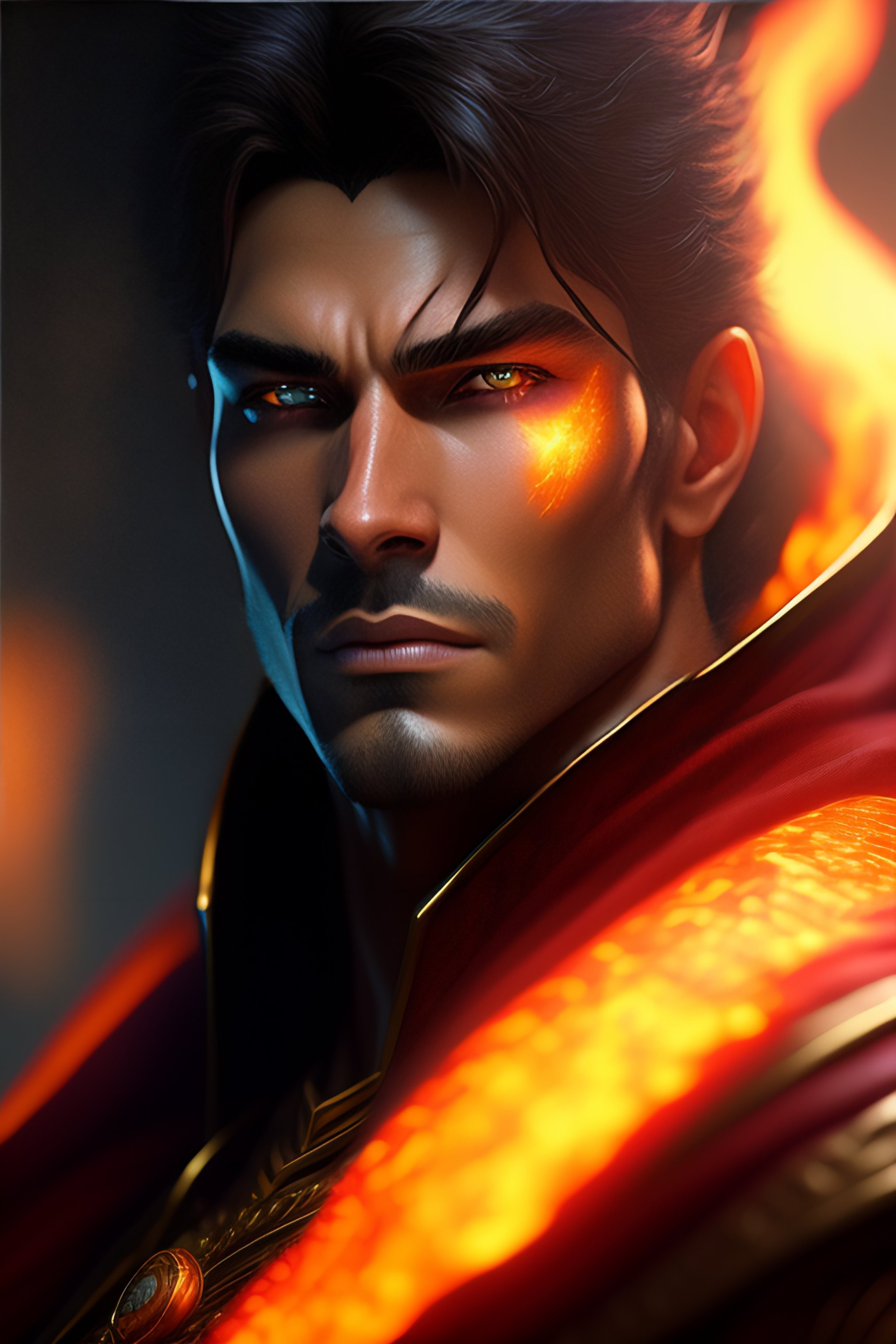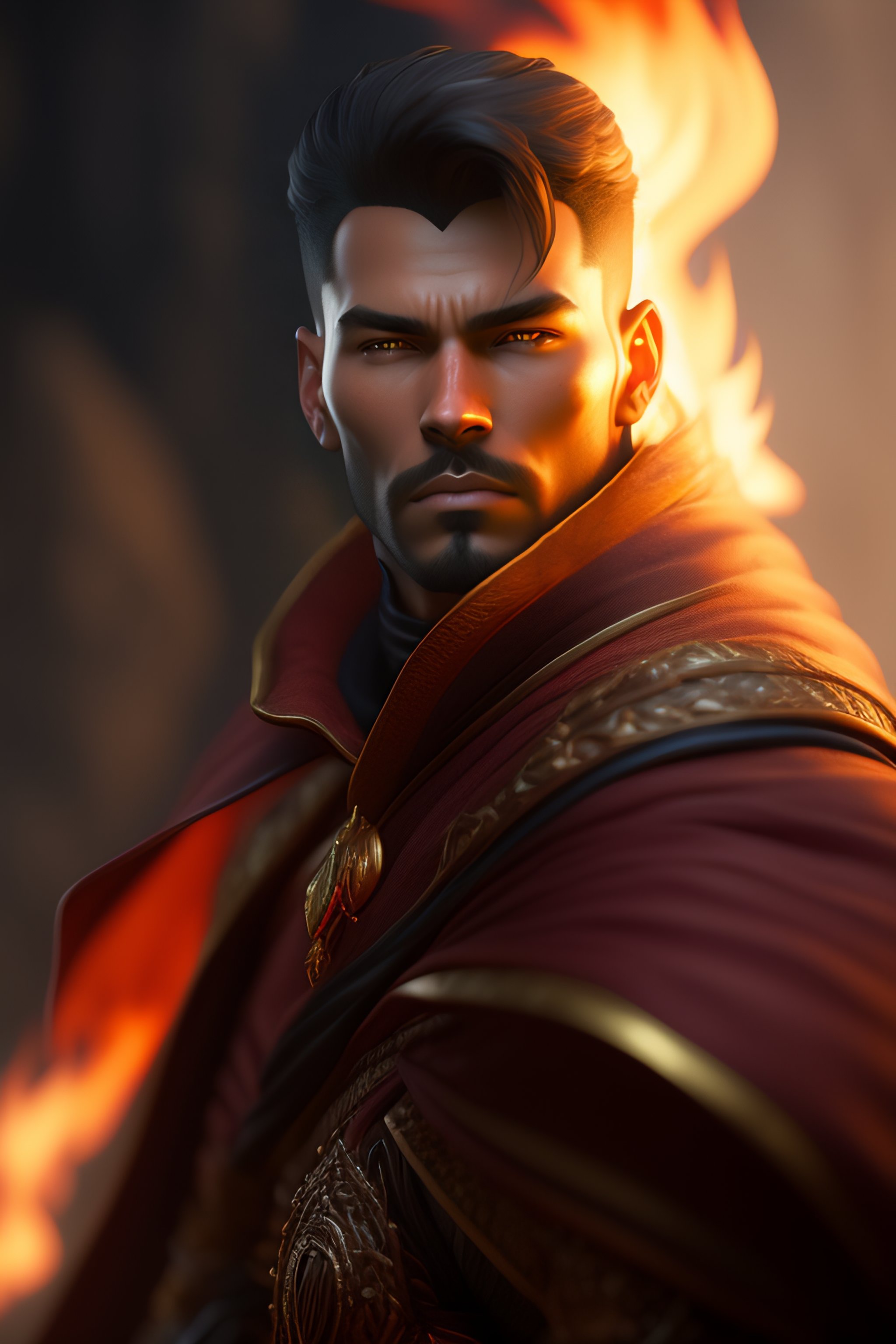Dungeons and dragons male fire mage character closeup portrait, dramatic light, epic background, 2 0 0 mm focal length, painted by stanley lau, painted by greg rutkowski, painted by stanley artgerm, high detail, real life skin, freckles, 8 k, stunning detail, works by artgerm, greg rutkowski and alphonse mucha, unreal engine 5, 4 k uhd, digital art, trending on artstation