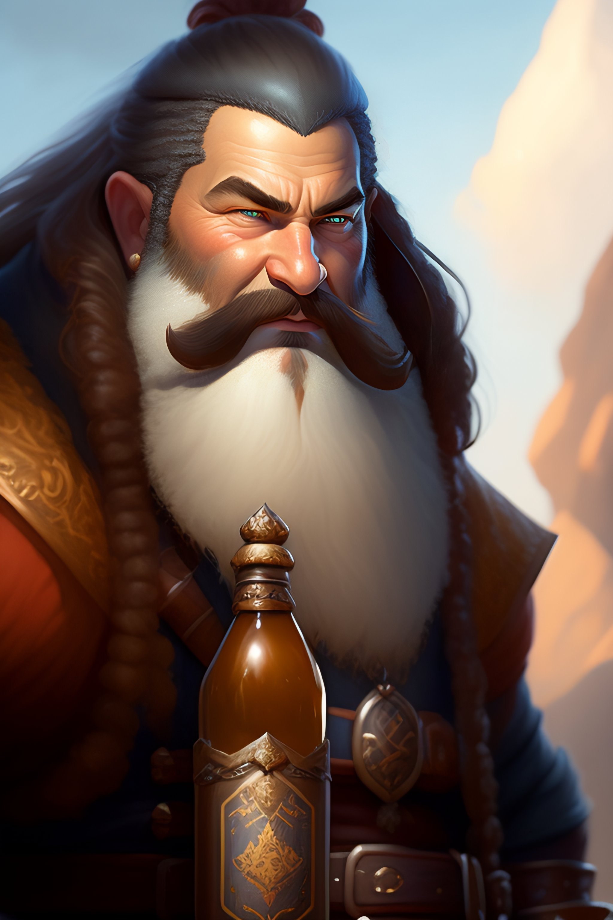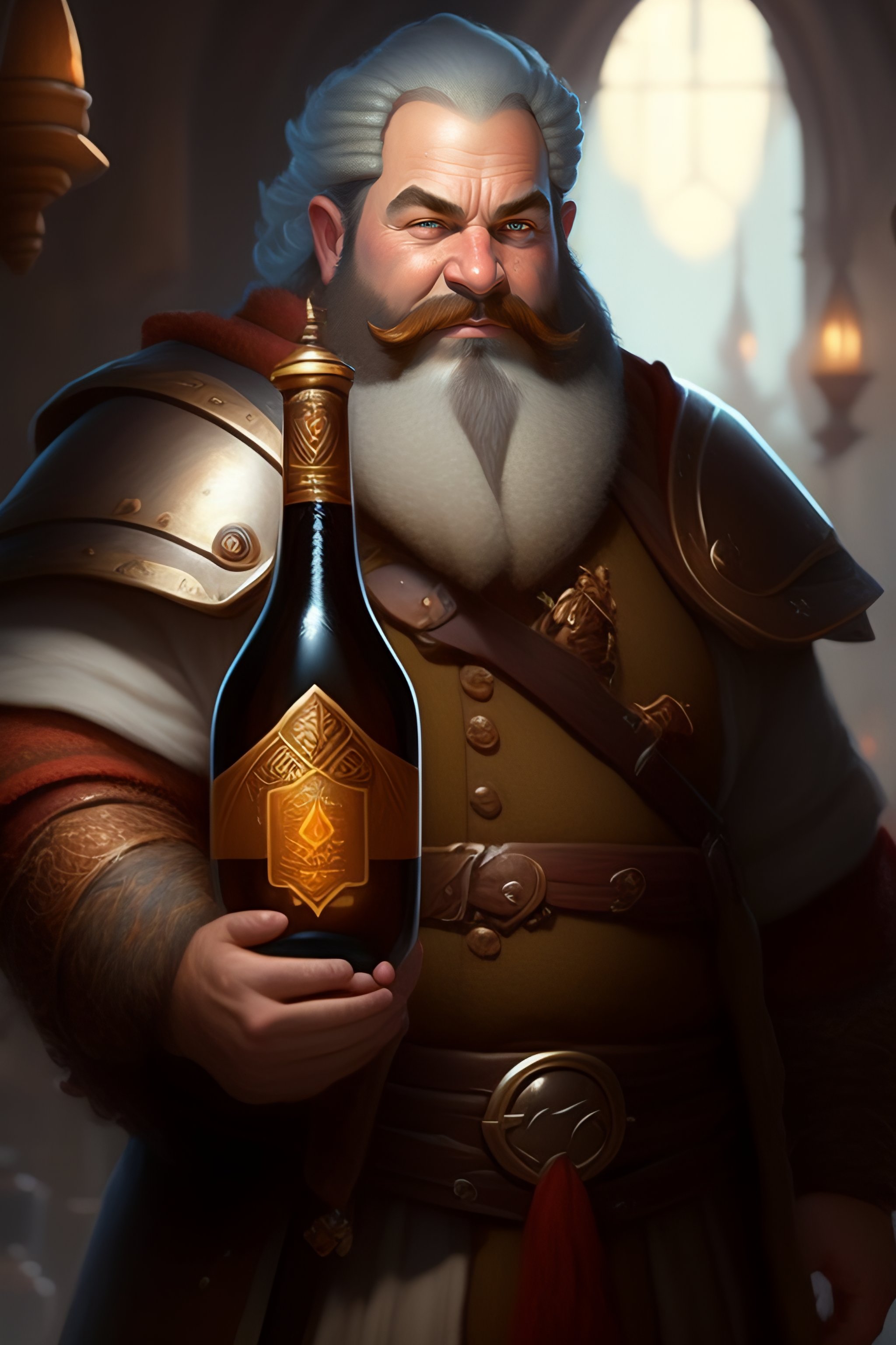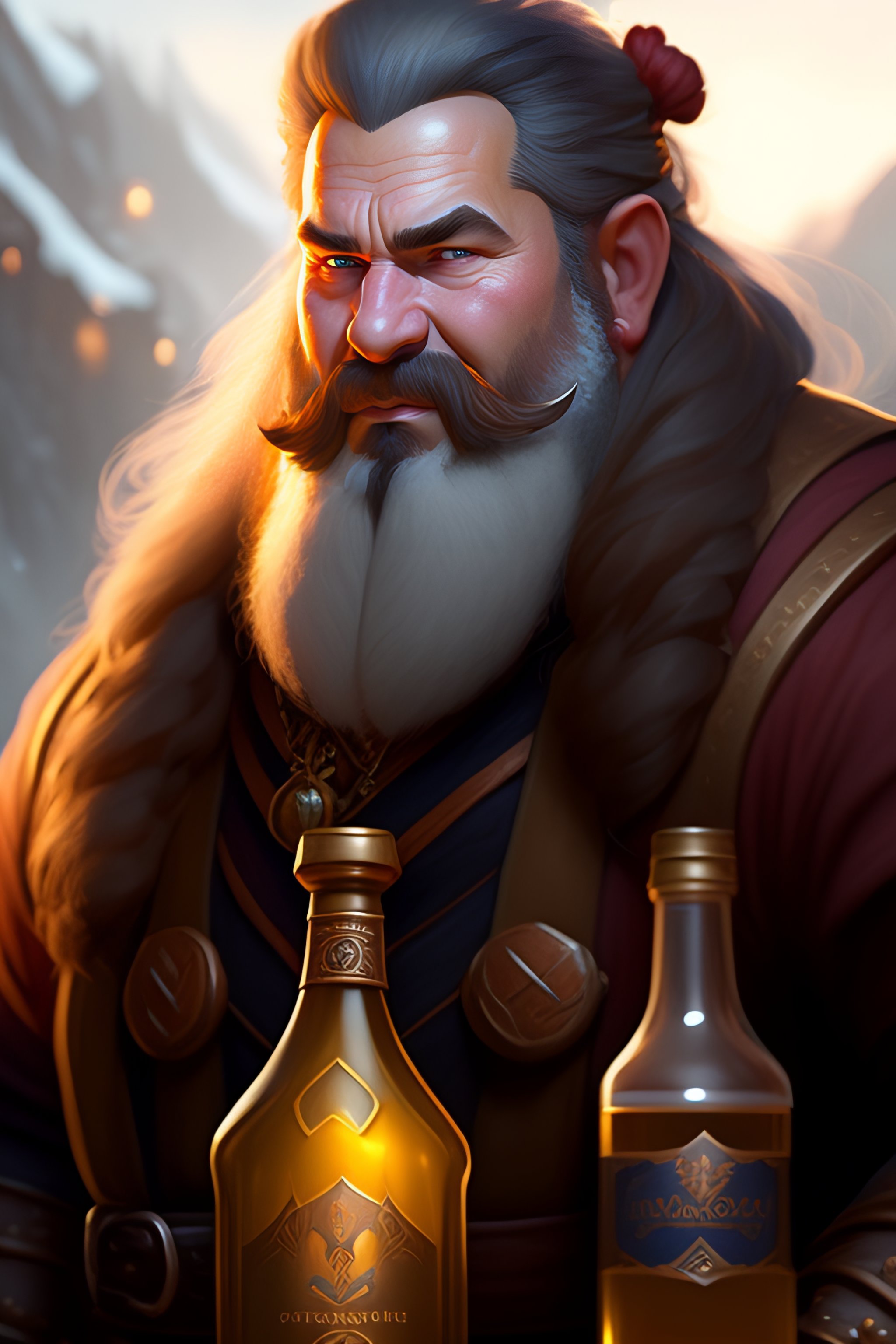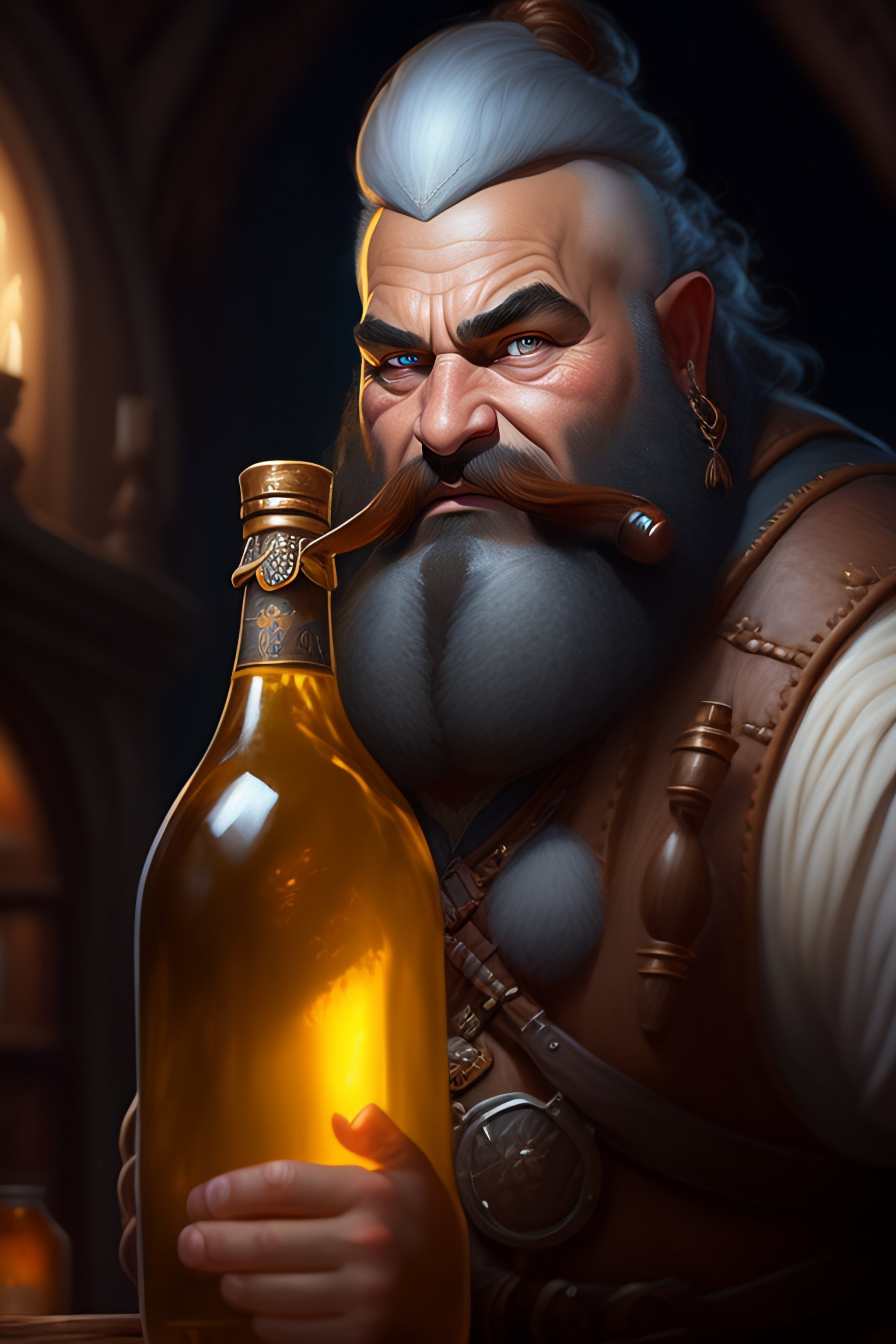 A detailed portrait of a dwarf with a big nose and a bottle of alchol, by justin gerard and greg rutkowski, digital art, realistic painting, dnd, character design, trending on artstation