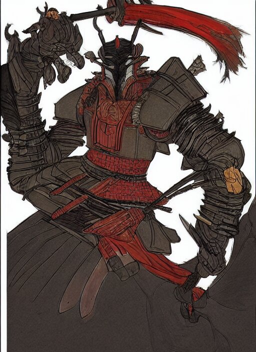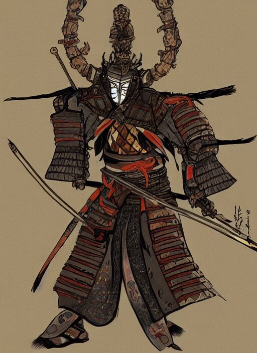 Samurai with an insect armor, in the style of sam guay and fenghua zhong and abigail larson, character art, trending on artstation