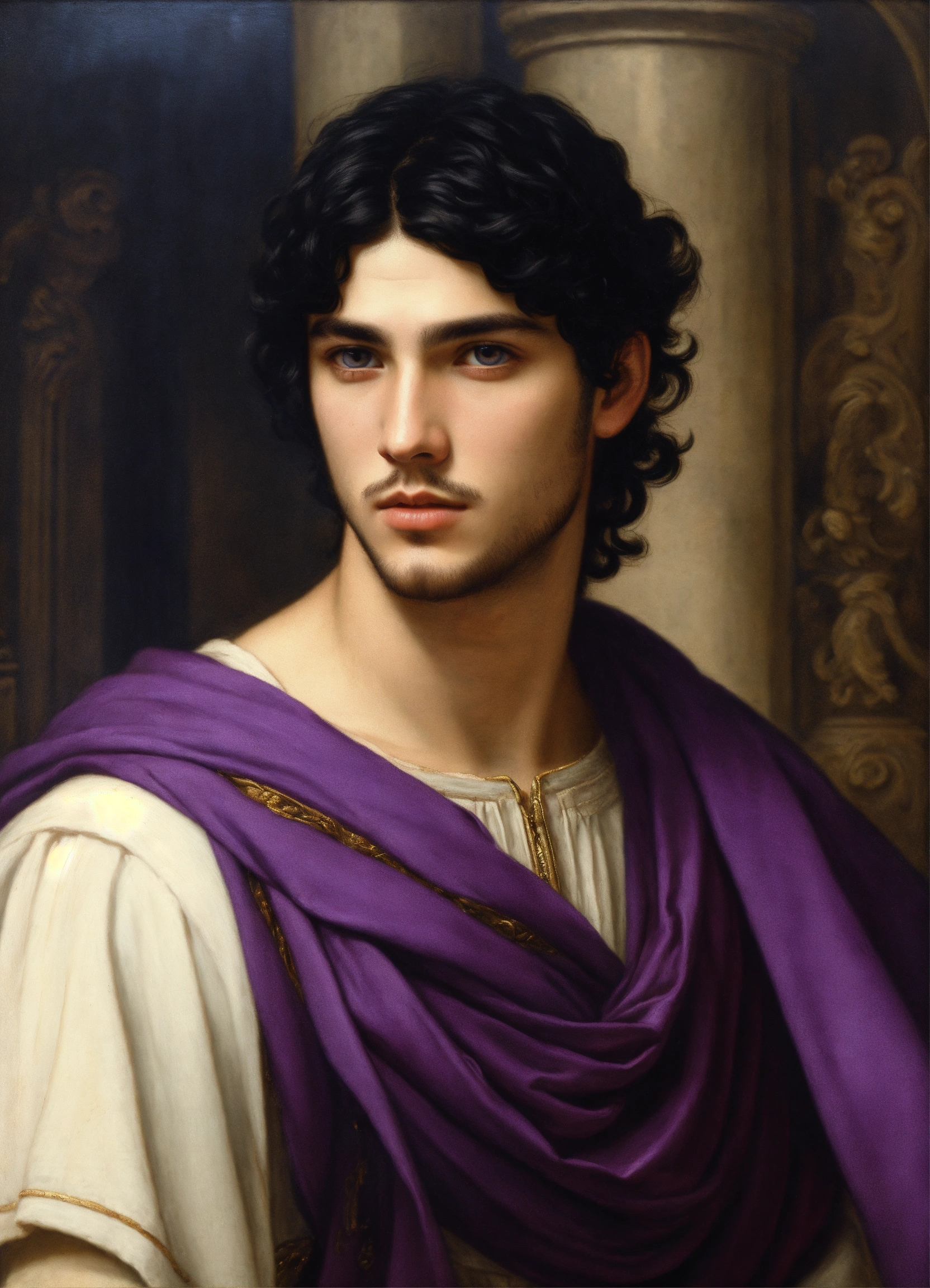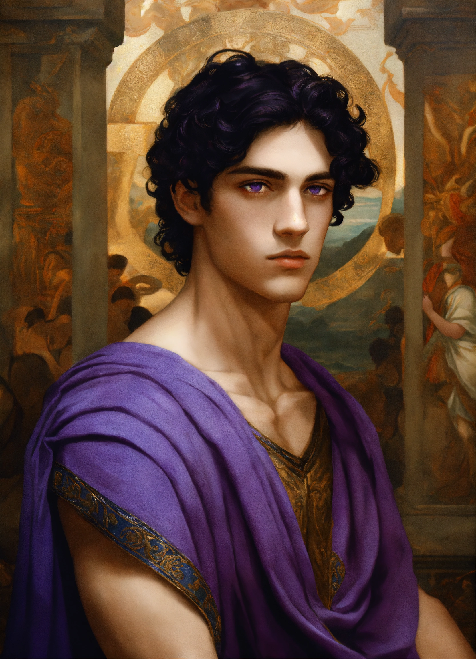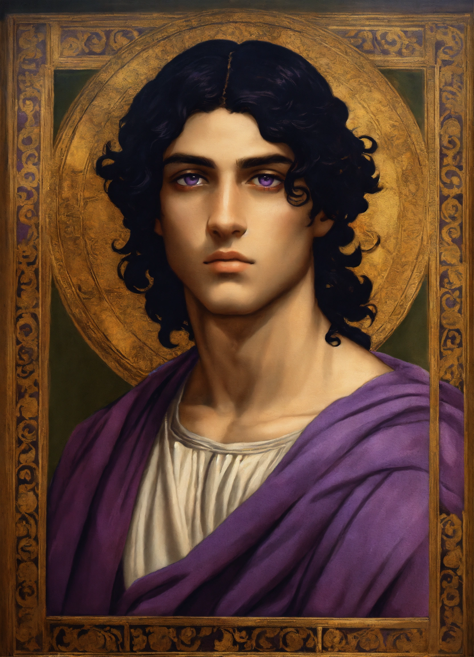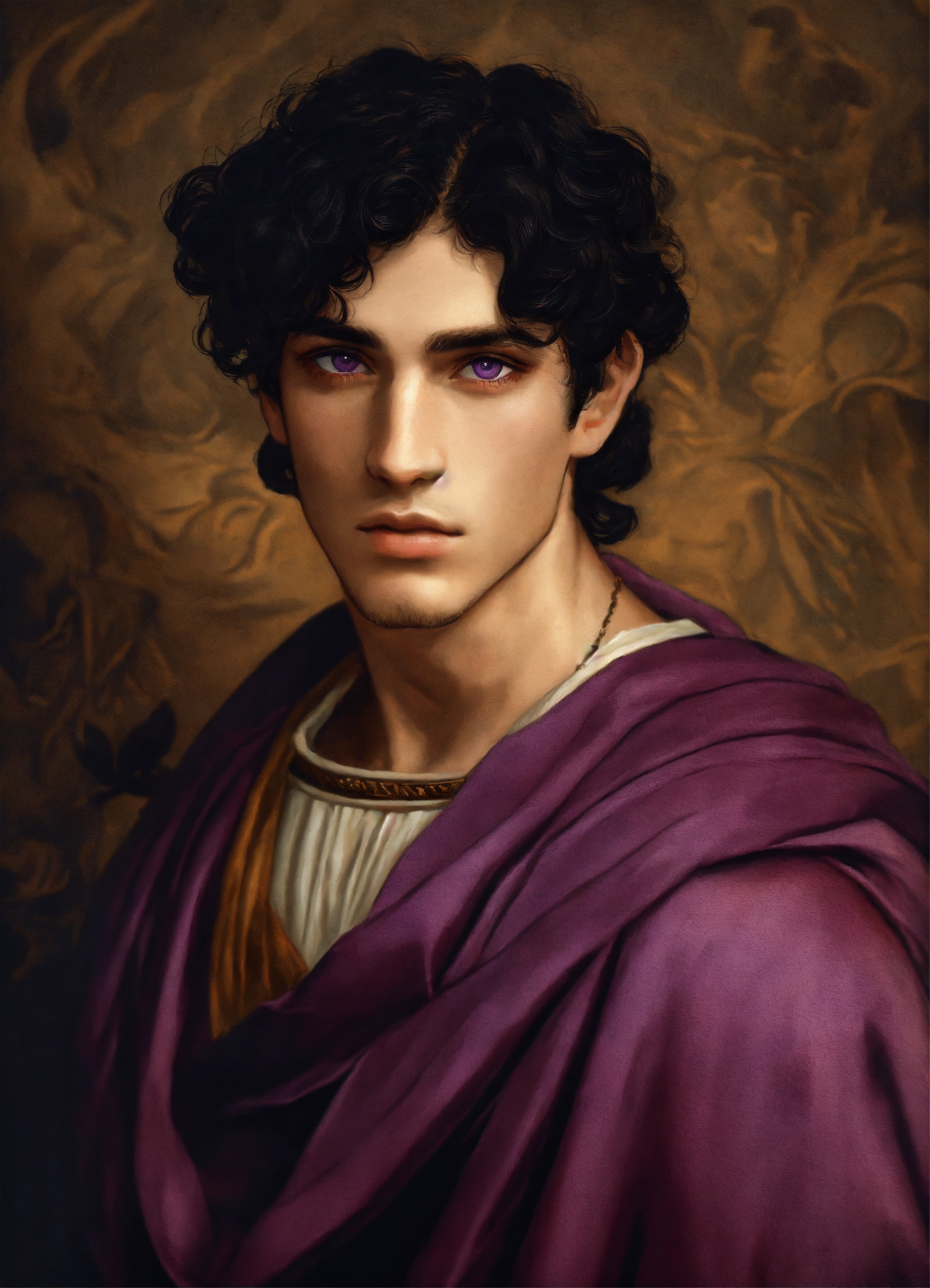 Male young greek with black hair and violet eyes