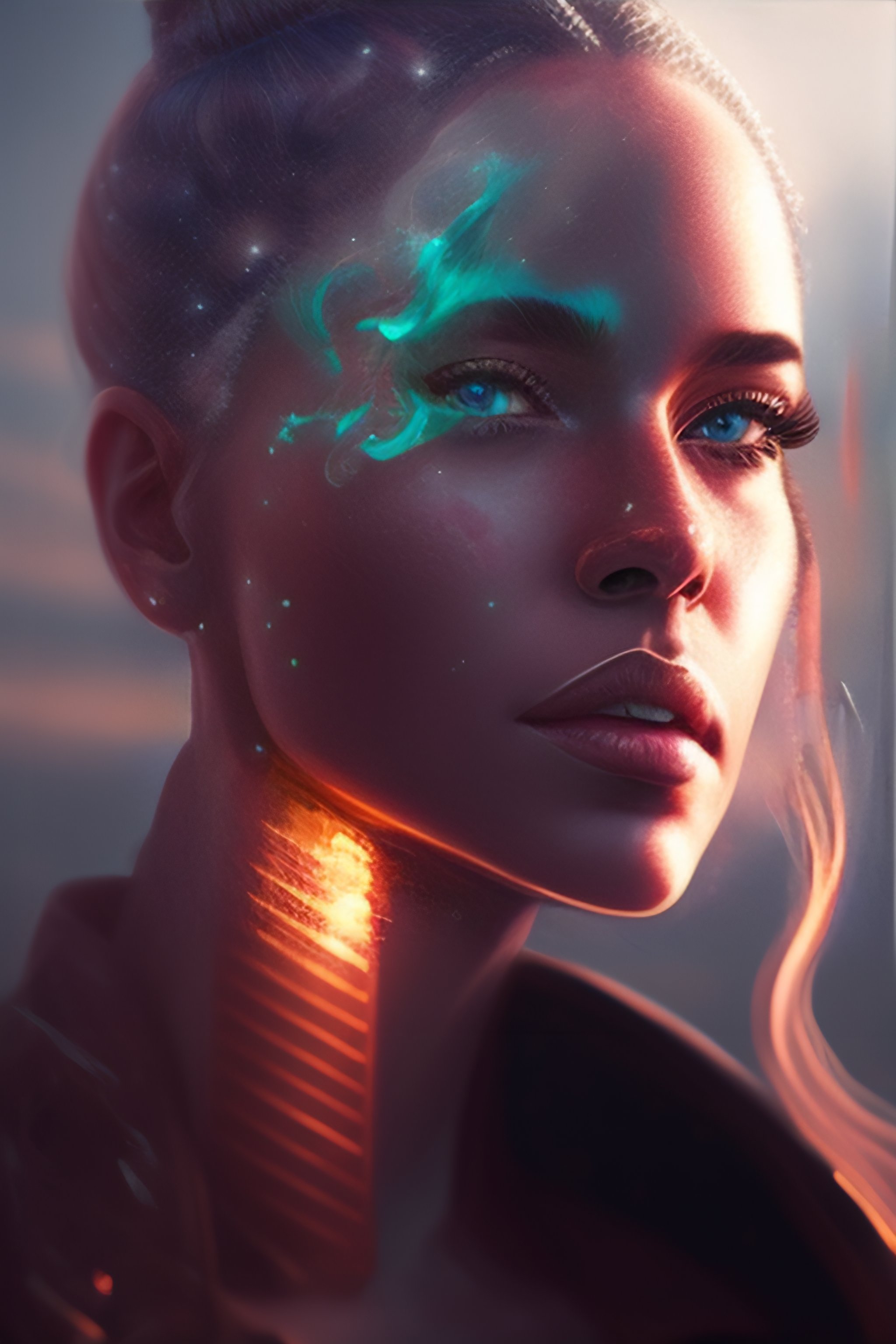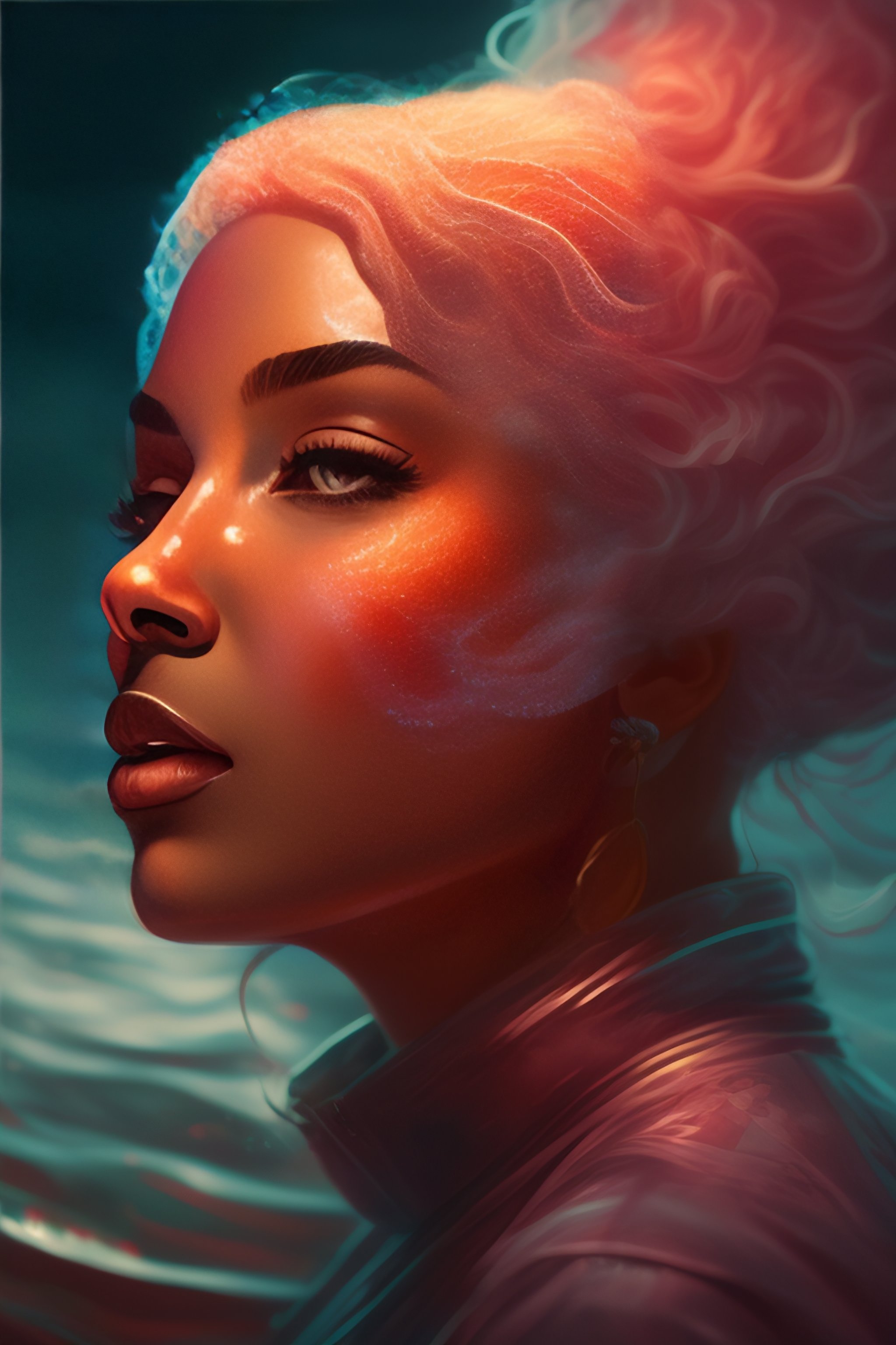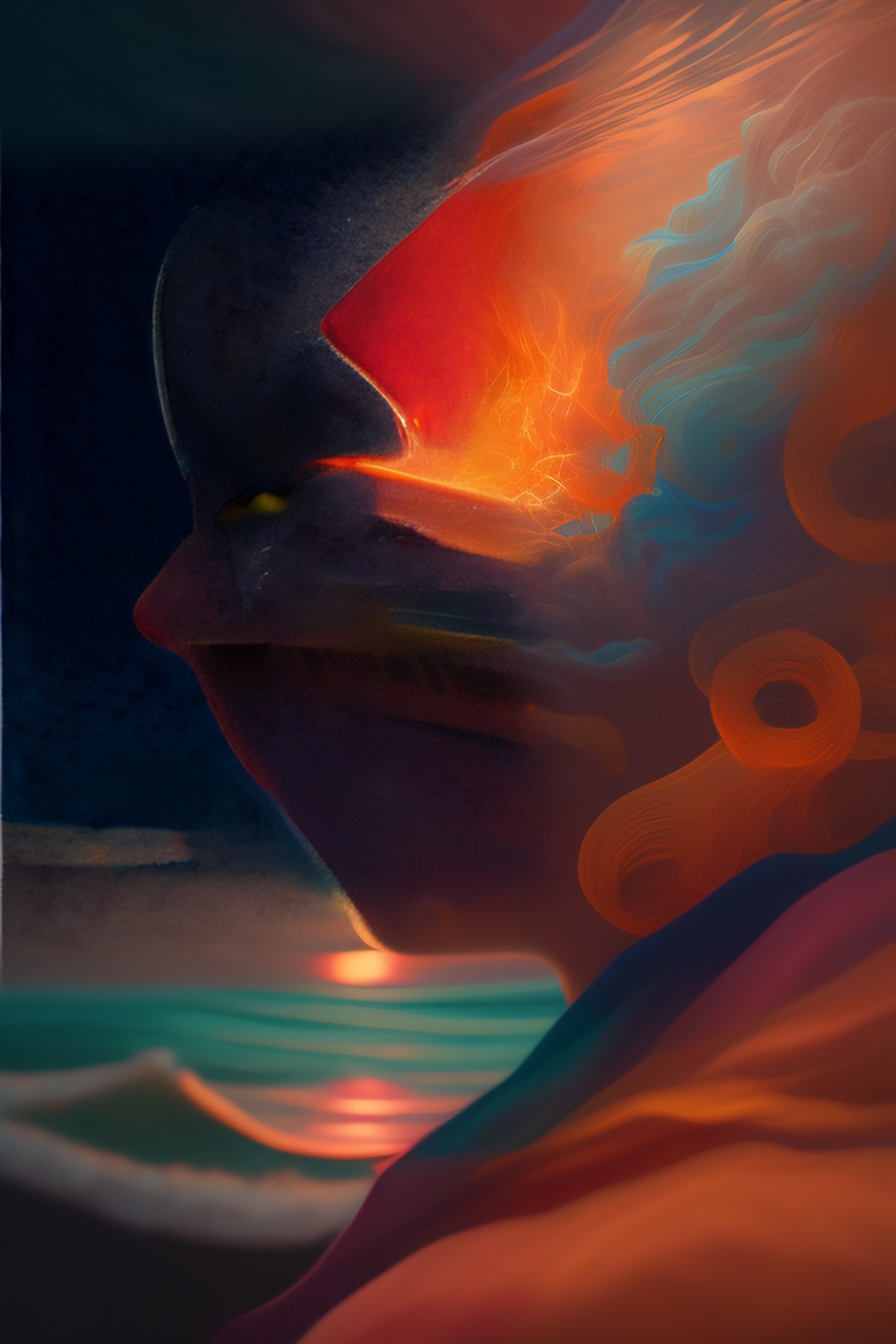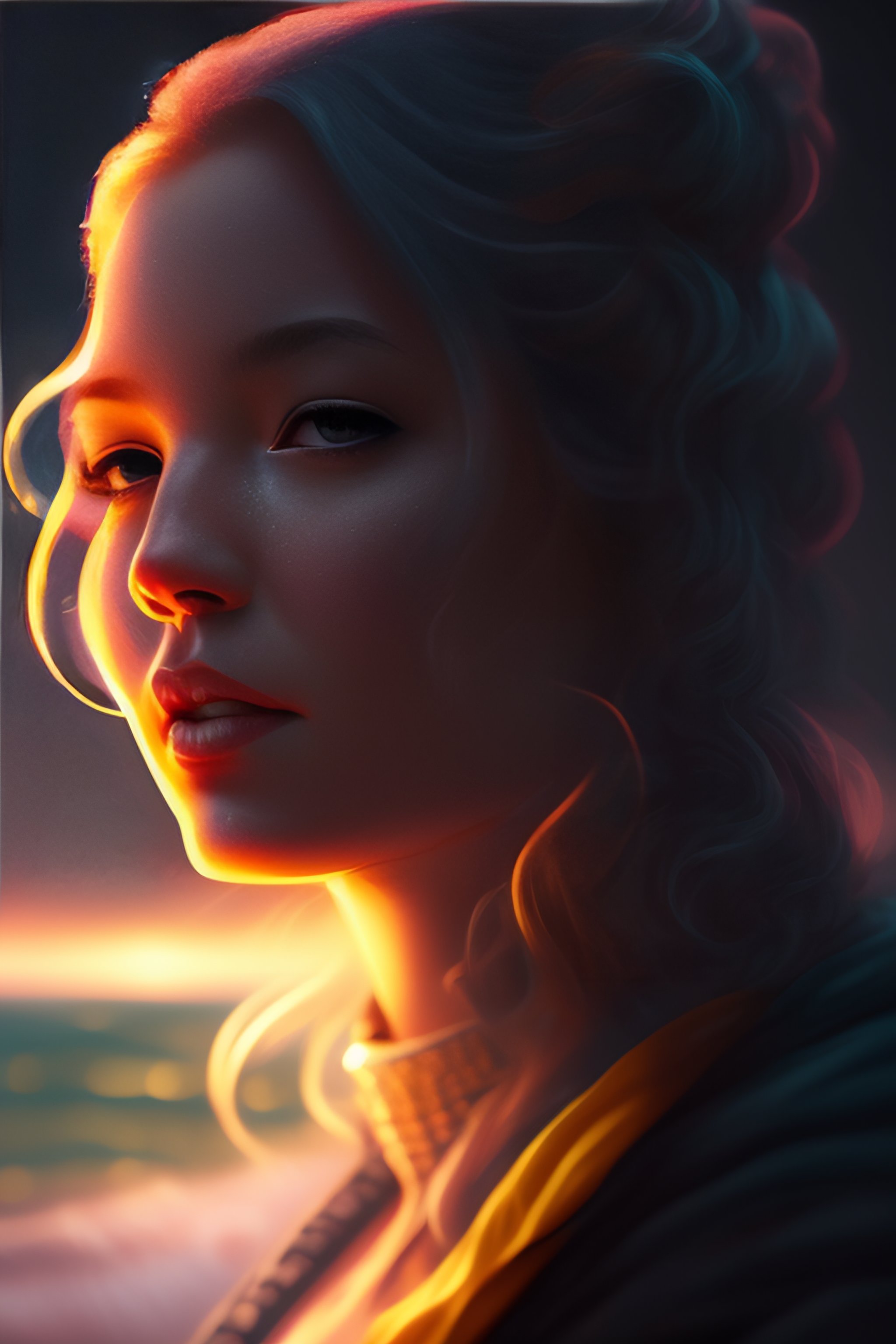 Glowing veins subsurface scattering, deep sea, sunset, portrait by gerald brom, by mikhail wrubel, by peter nelson, muted colors, extreme detail, trending on artstation, 8 k