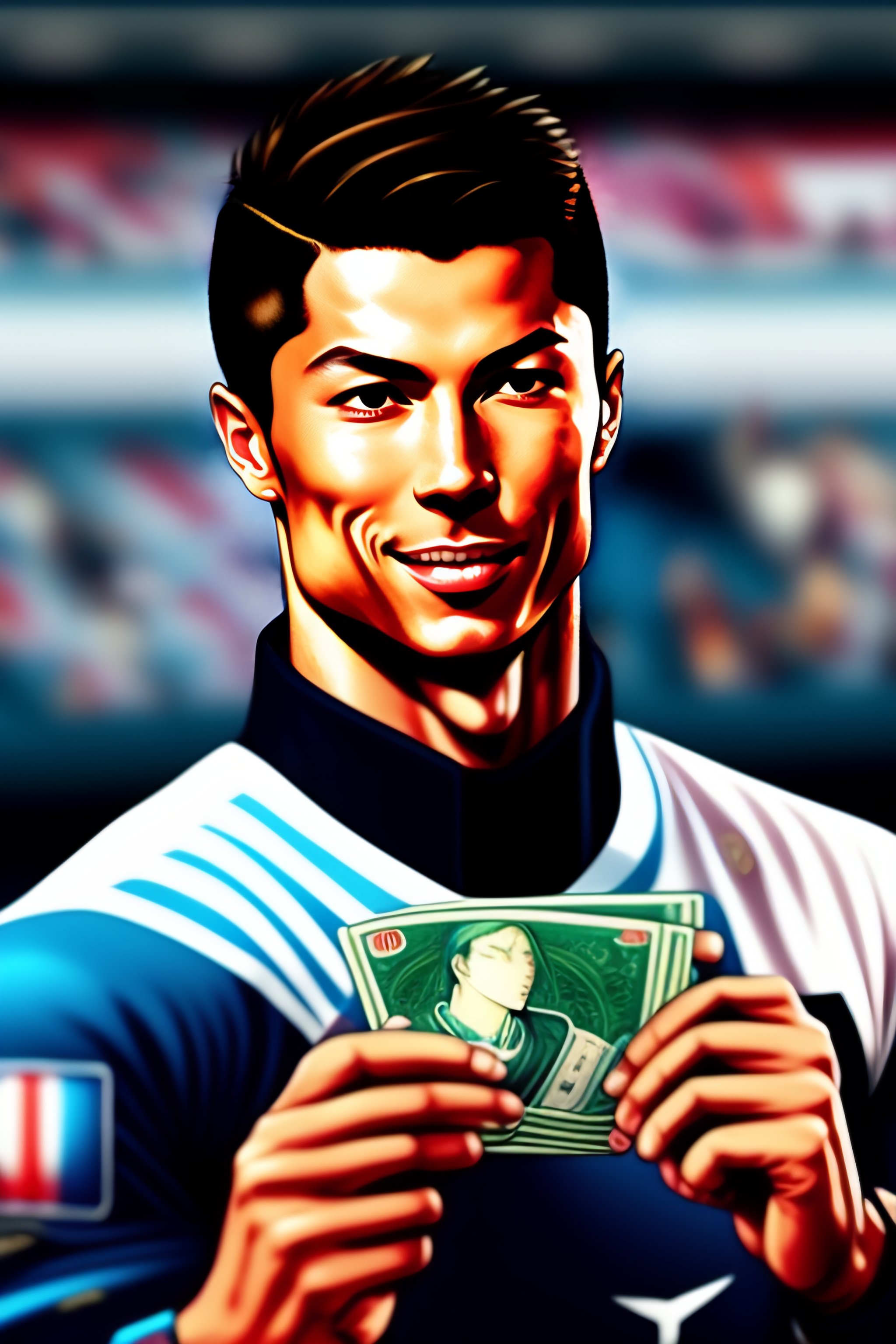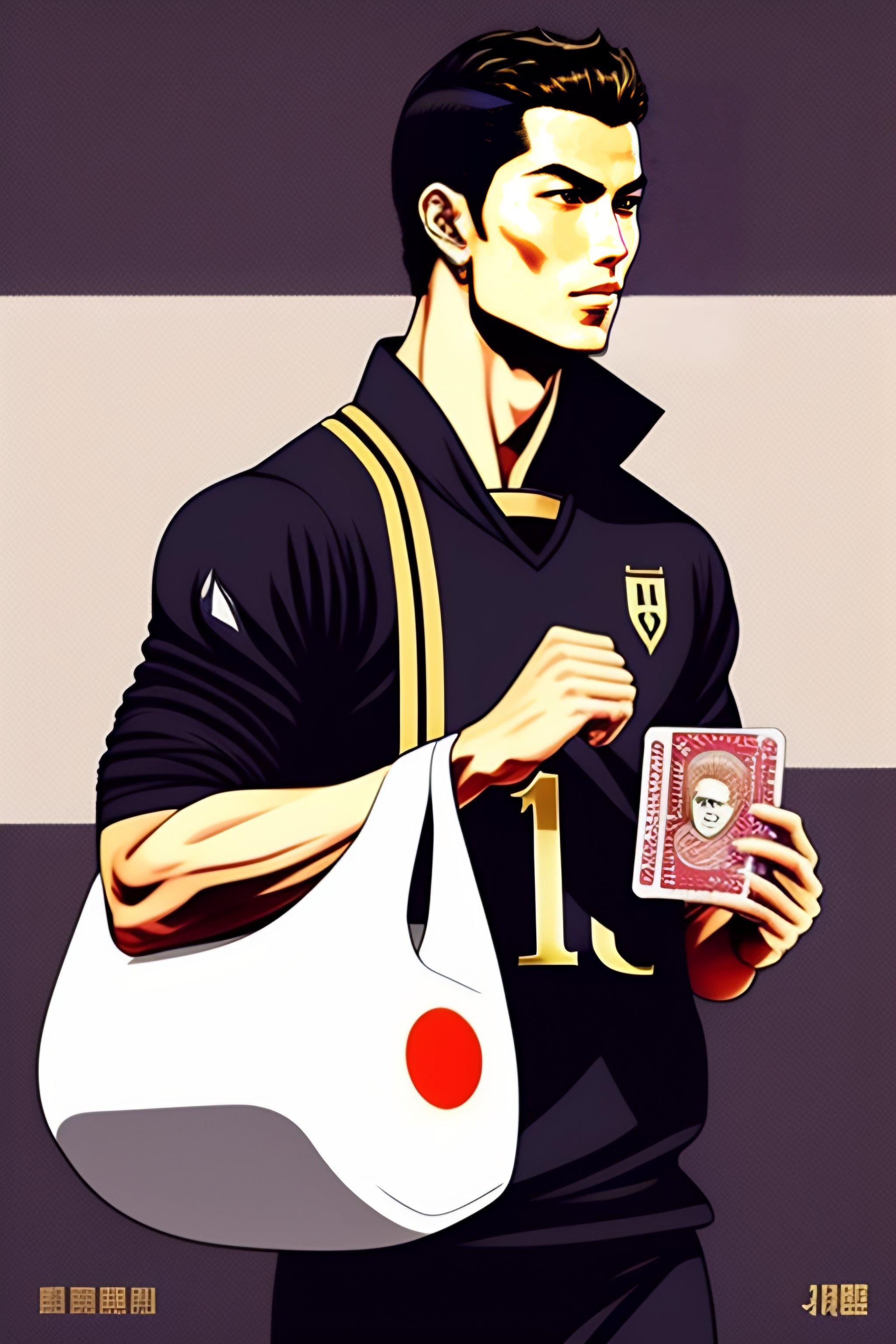 Cristiano ronaldo holding bags with money in japanese manga style